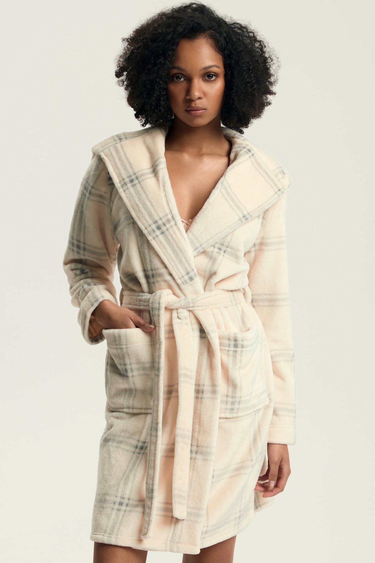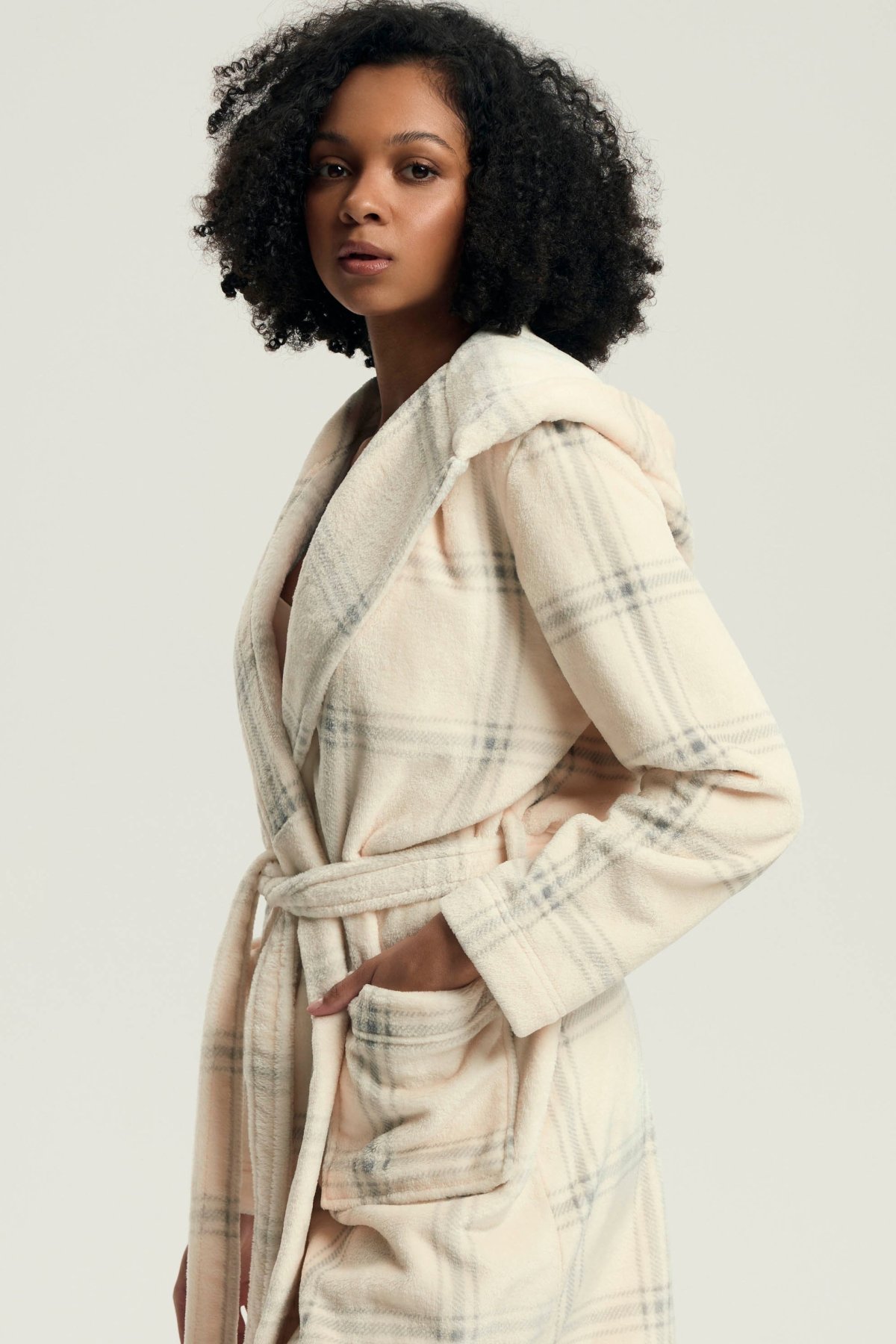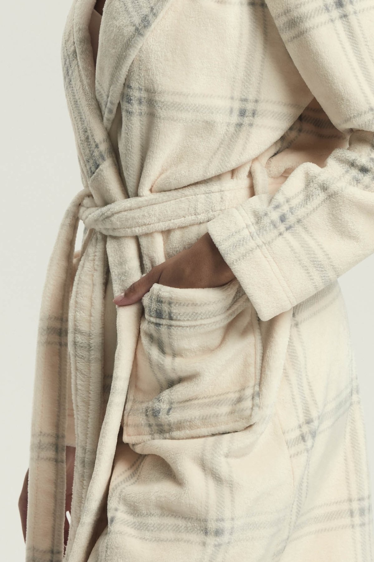 Prostorná kapuce dodává modelu uvolněný charakter a zároveň zvyšuje pocit pohodlí. Zavazování v pase umožňuje snadné přizpůsobení a pomáhá župan pohodlně udržet na místě. Po stranách nechybí praktické kapsy, které zvyšují jeho funkčnost při běžném domácím nošení. Hřejivý materiál z něj dělá příjemnou vrstvu pro chvíle odpočinku i pomalejší rána. Délka zasahuje nepatrně nad kolena.