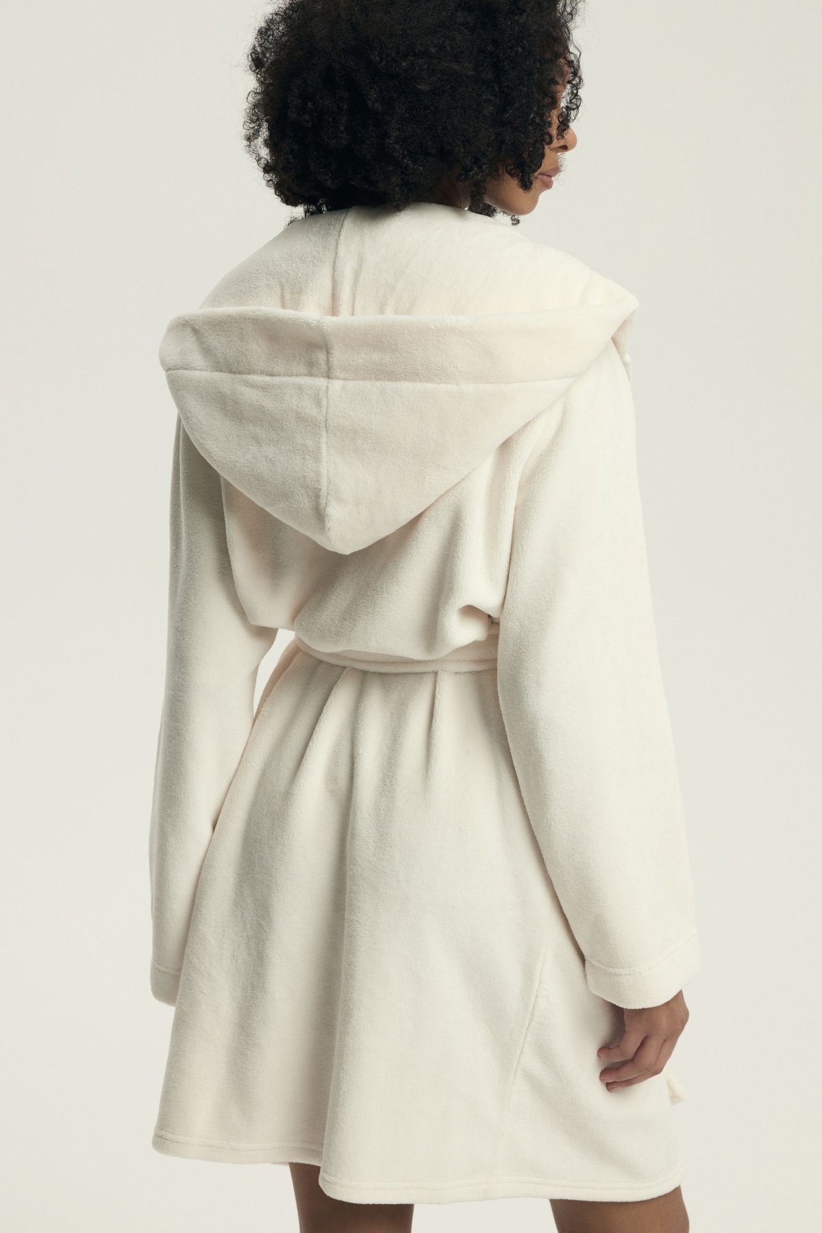 Prostorná kapuce, zavazování v pase a krémový odstín vytvářejí domácí kousek, který je praktický a zároveň elegantně jednoduchý. Na modelu vyniká měkké, hladké provedení, které podporuje útulný dojem při nošení doma i po koupeli. Boční kapsy přidávají na funkčnosti a pásek umožňuje snadné přizpůsobení siluetě. Pokud hledáte župan, který spojuje pohodlí, čistý vzhled a snadné každodenní použití, Darlan je velmi příjemná volba.