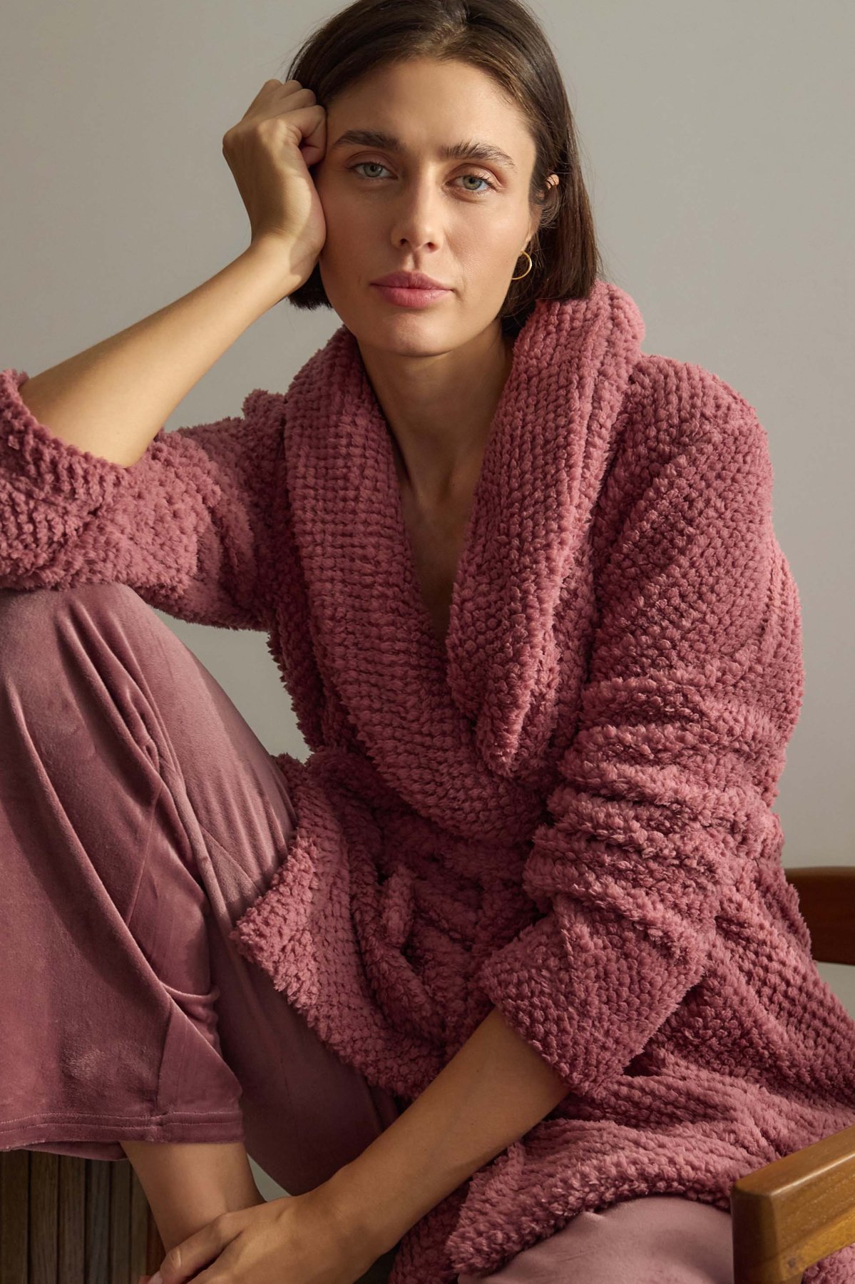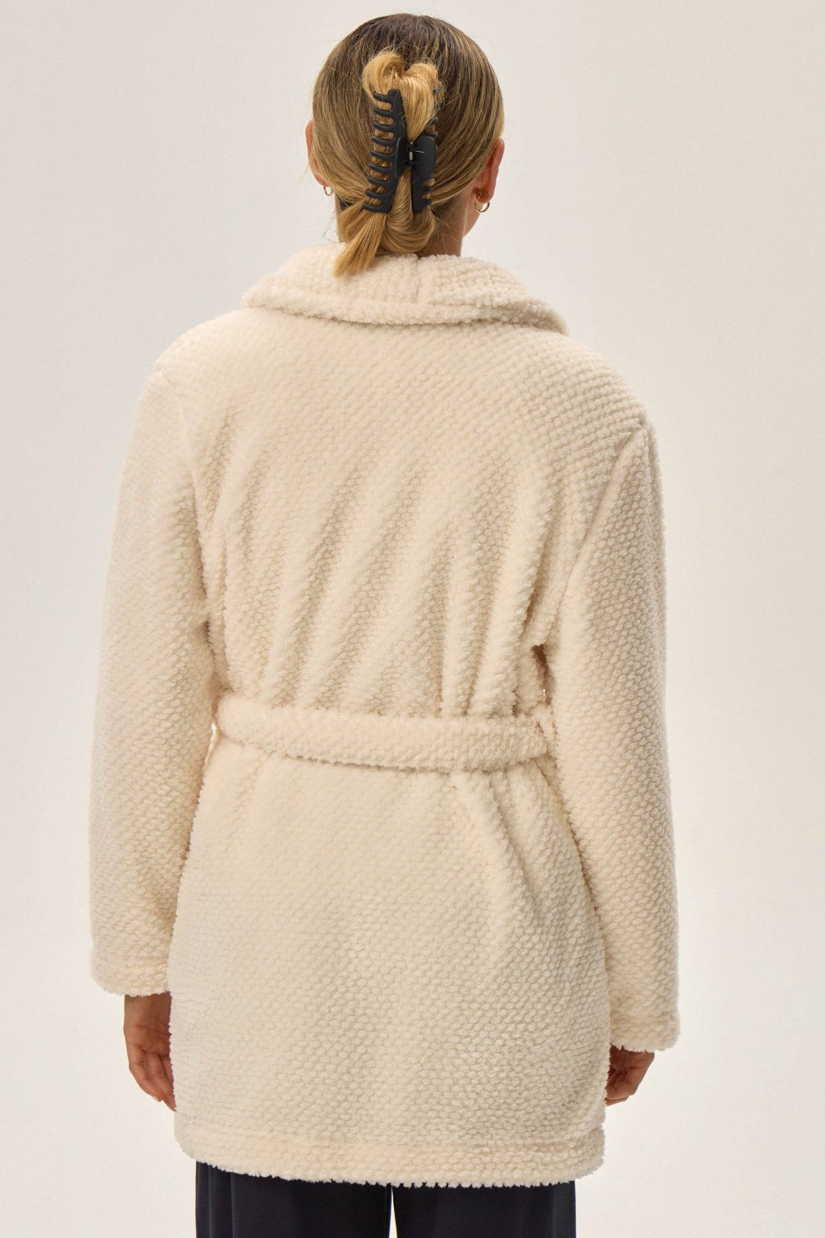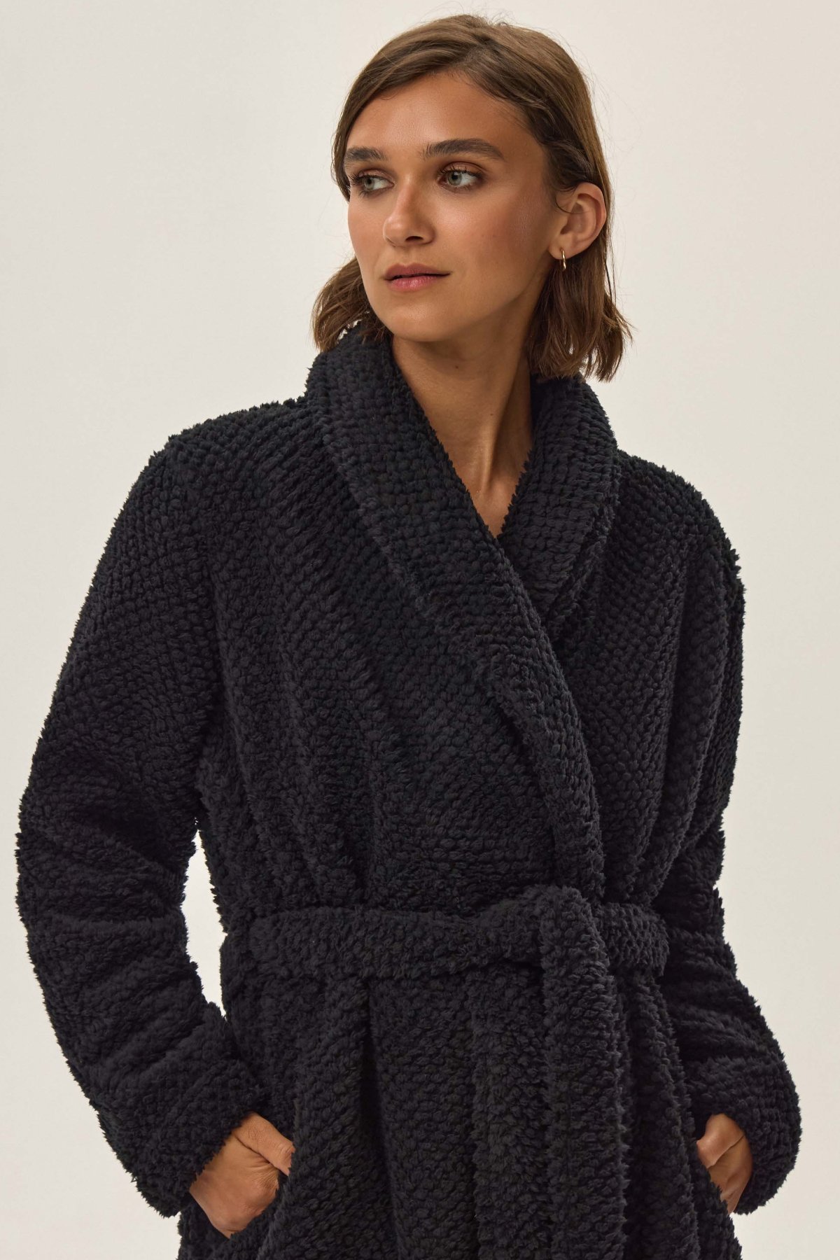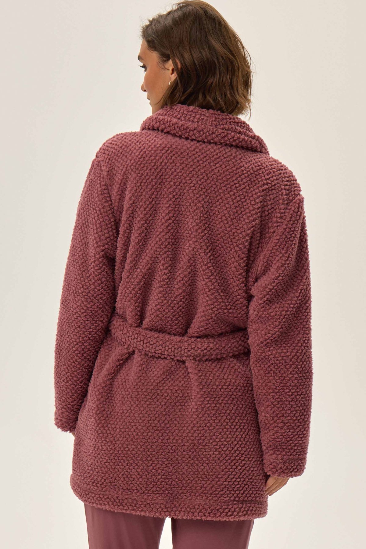 Dámský župan Jamie je synonymem pohodlí a elegance. Měkký materiál s plyšovou strukturou vás příjemně zahřeje a obklopí hebkostí, zatímco kratší střih zajistí volnost pohybu. Šálový límec a decentní geometrická textura dodávají županu stylový, moderní vzhled. Ideální pro večerní relax i líná rána – krásně ladí s pyžamem nebo noční košilkou.