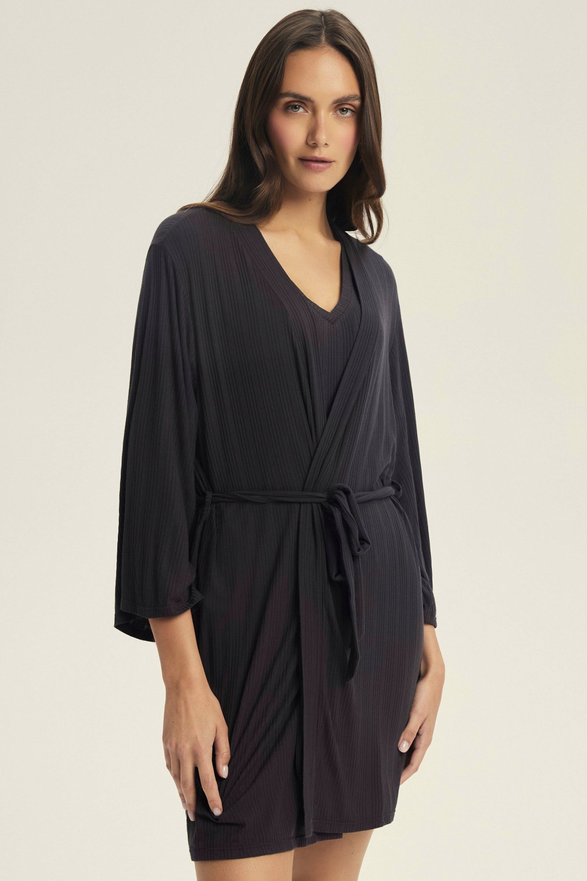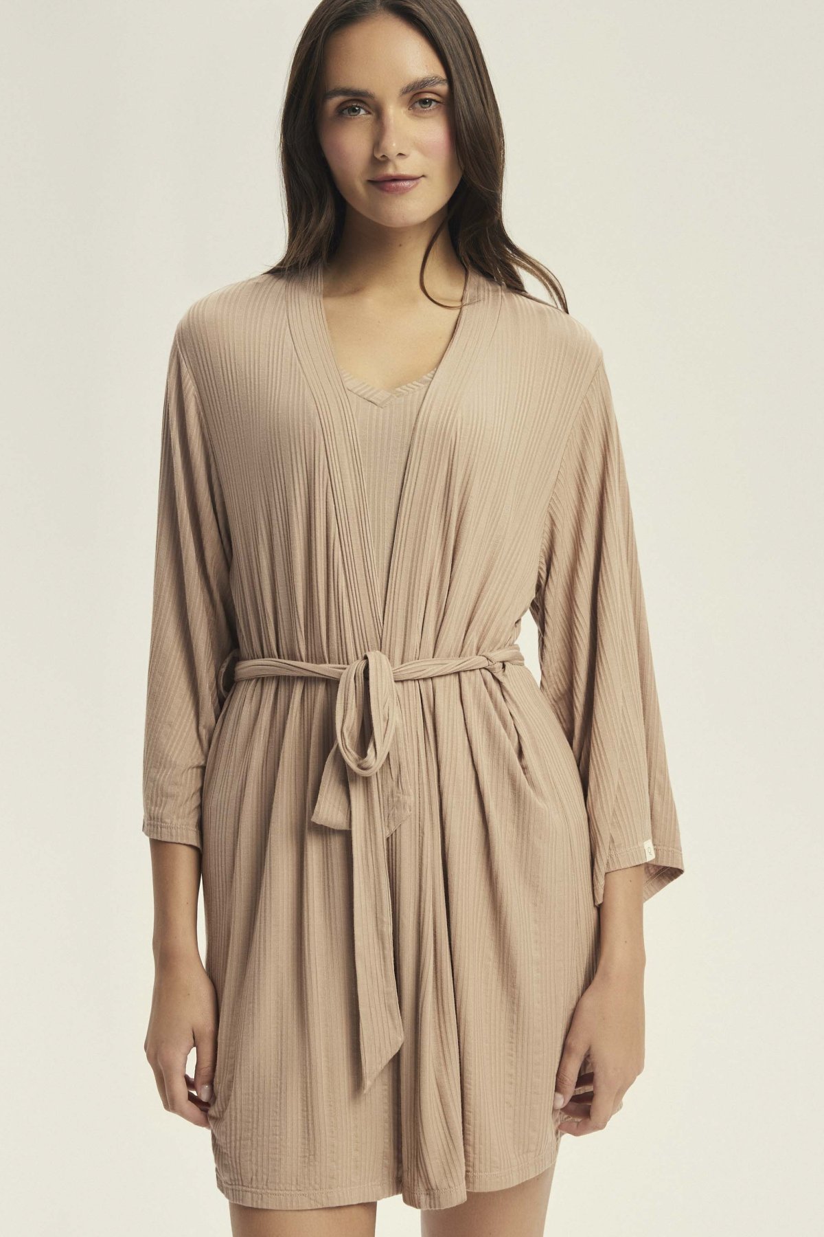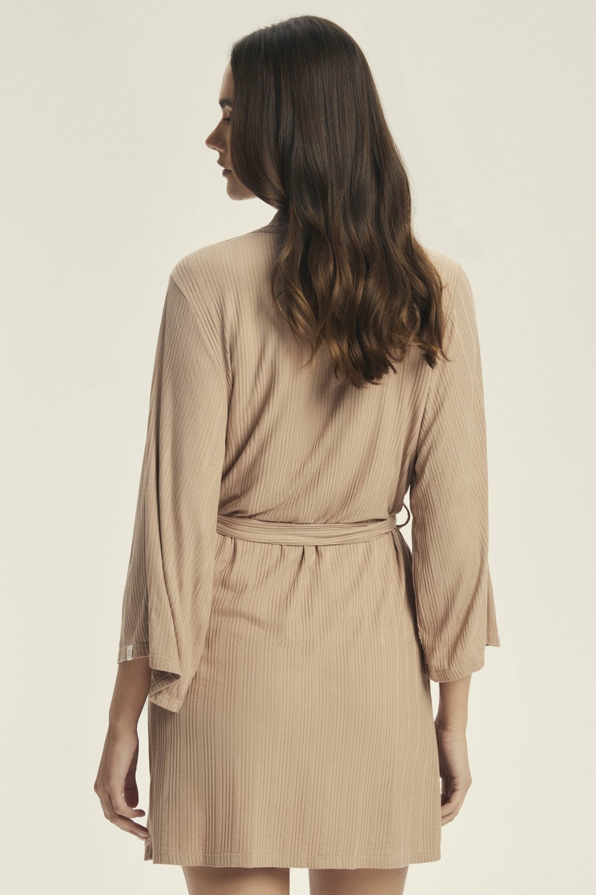 Elegantní župan Jenius obklopí tělo měkkostí a teplem, jako tichý dotek po probuzení. Jemně žebrovaná struktura dodává materiálu na hloubce i hebkosti, zatímco volný kimono střih lichotí postavě a zajišťuje naprosté pohodlí. Díky pásku v pase snadno zvýrazníte siluetu, pokud si přejete působit více žensky, nebo jej necháte volně pro uvolněný domácí styl.