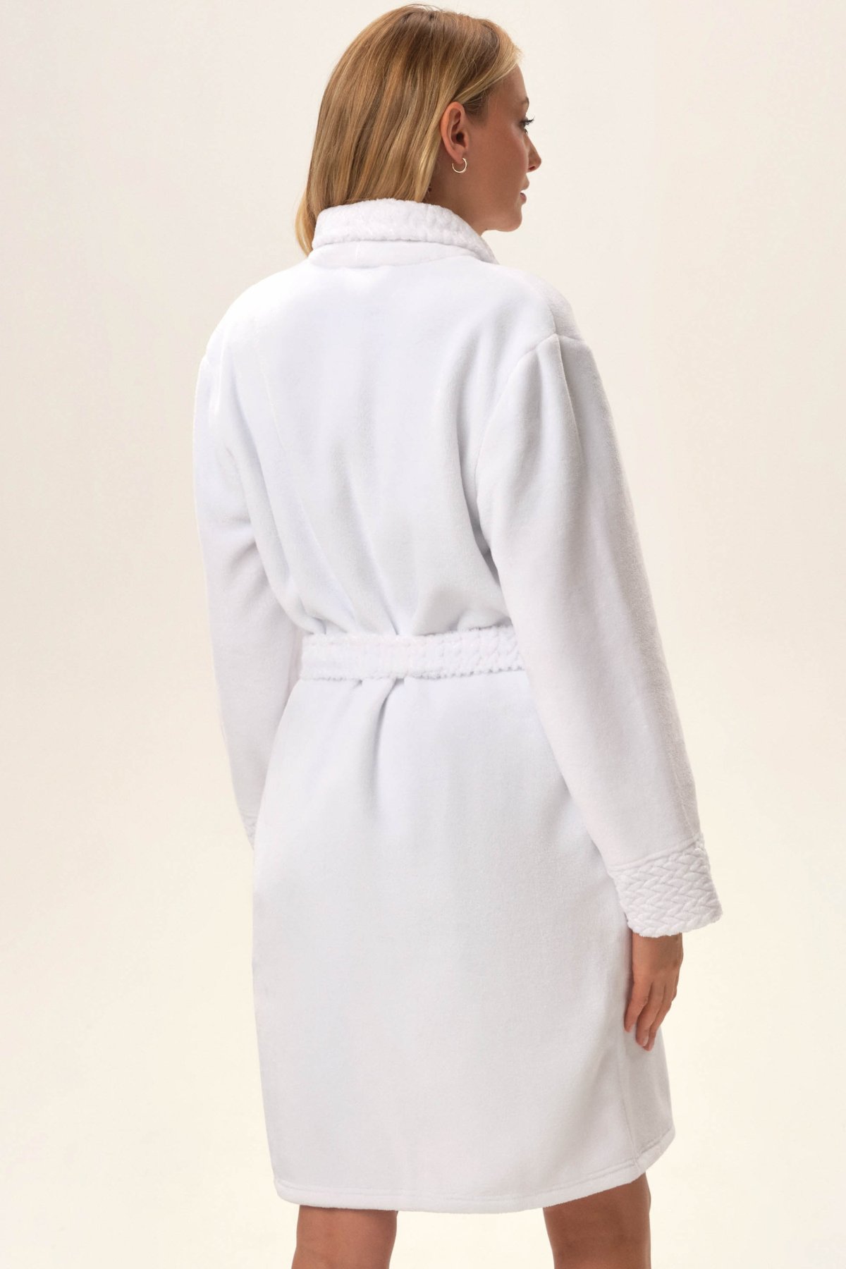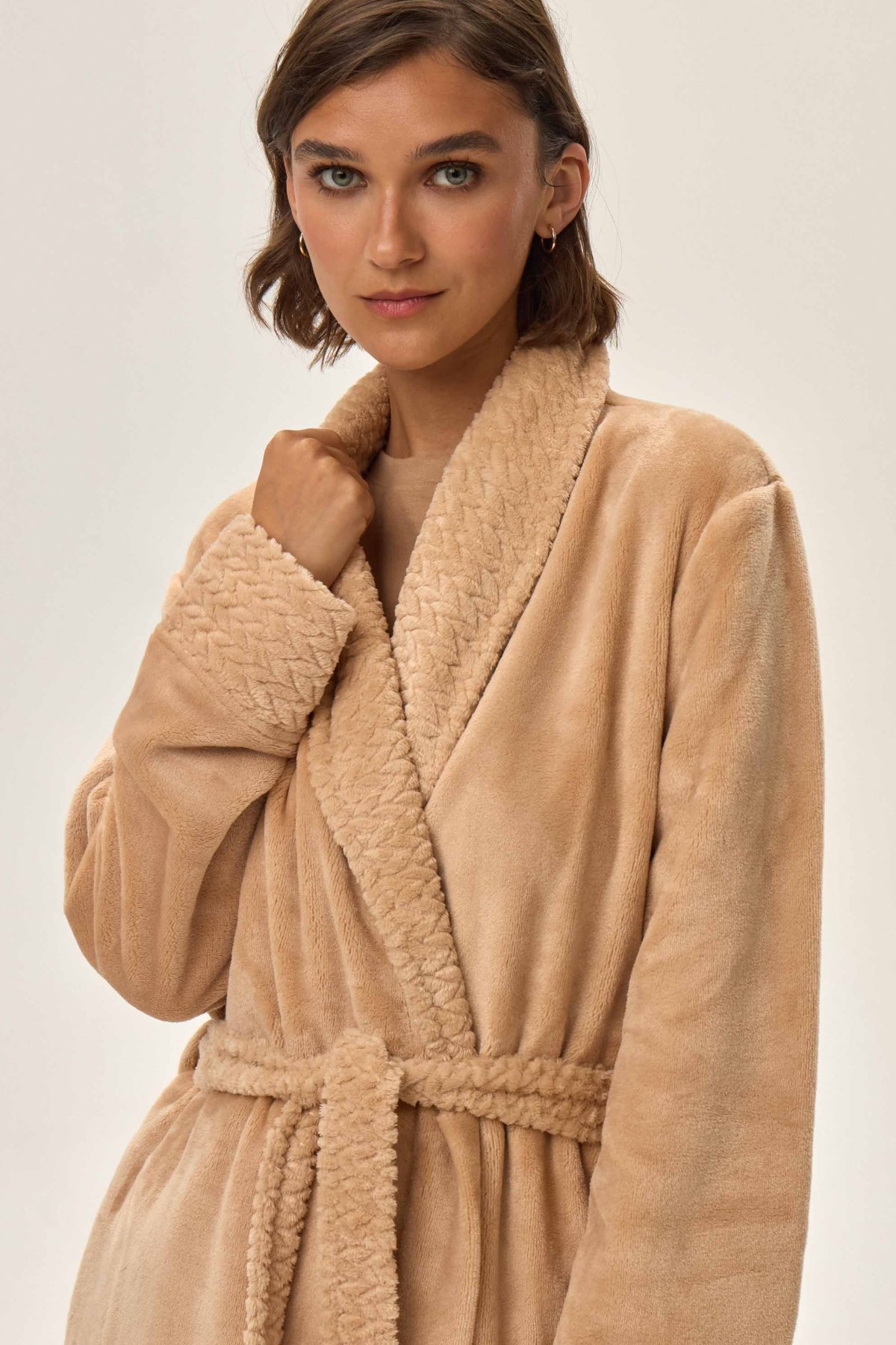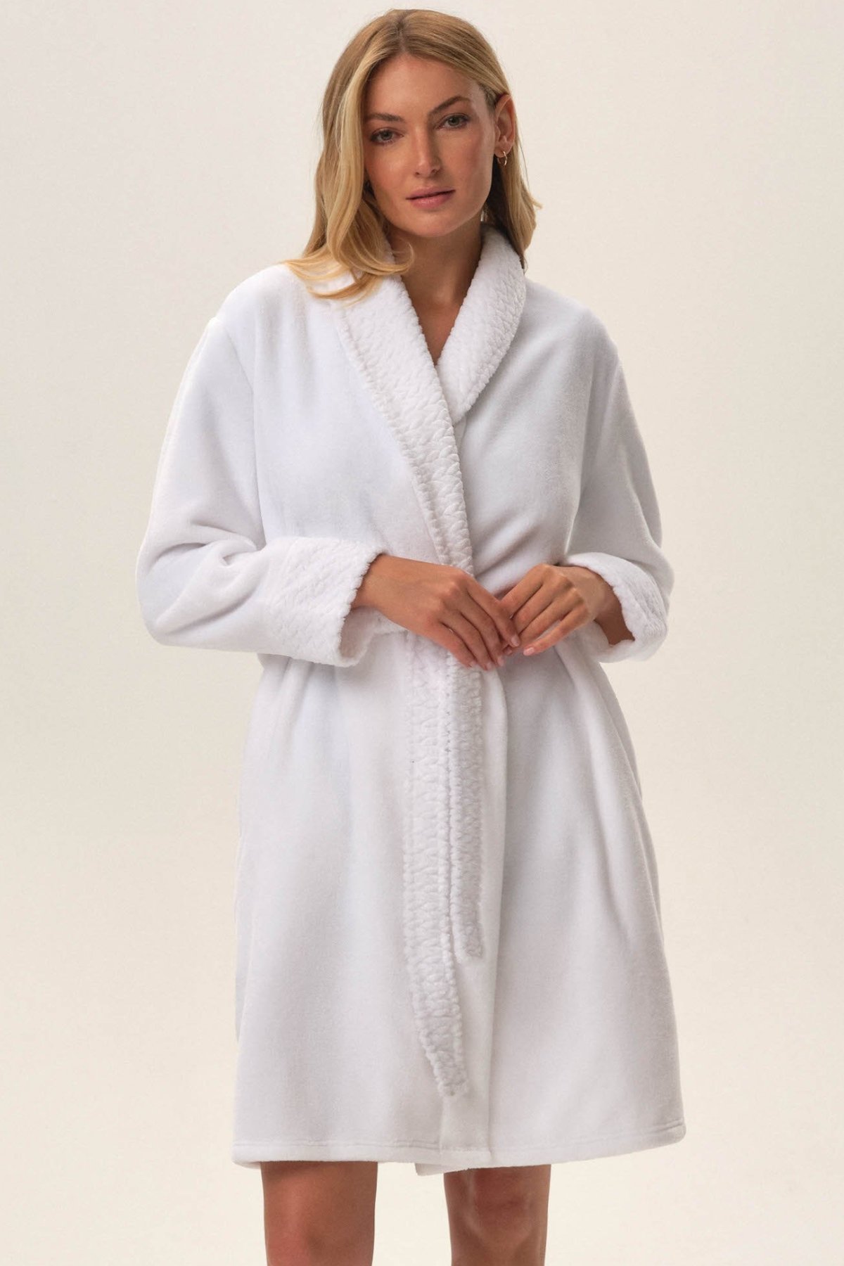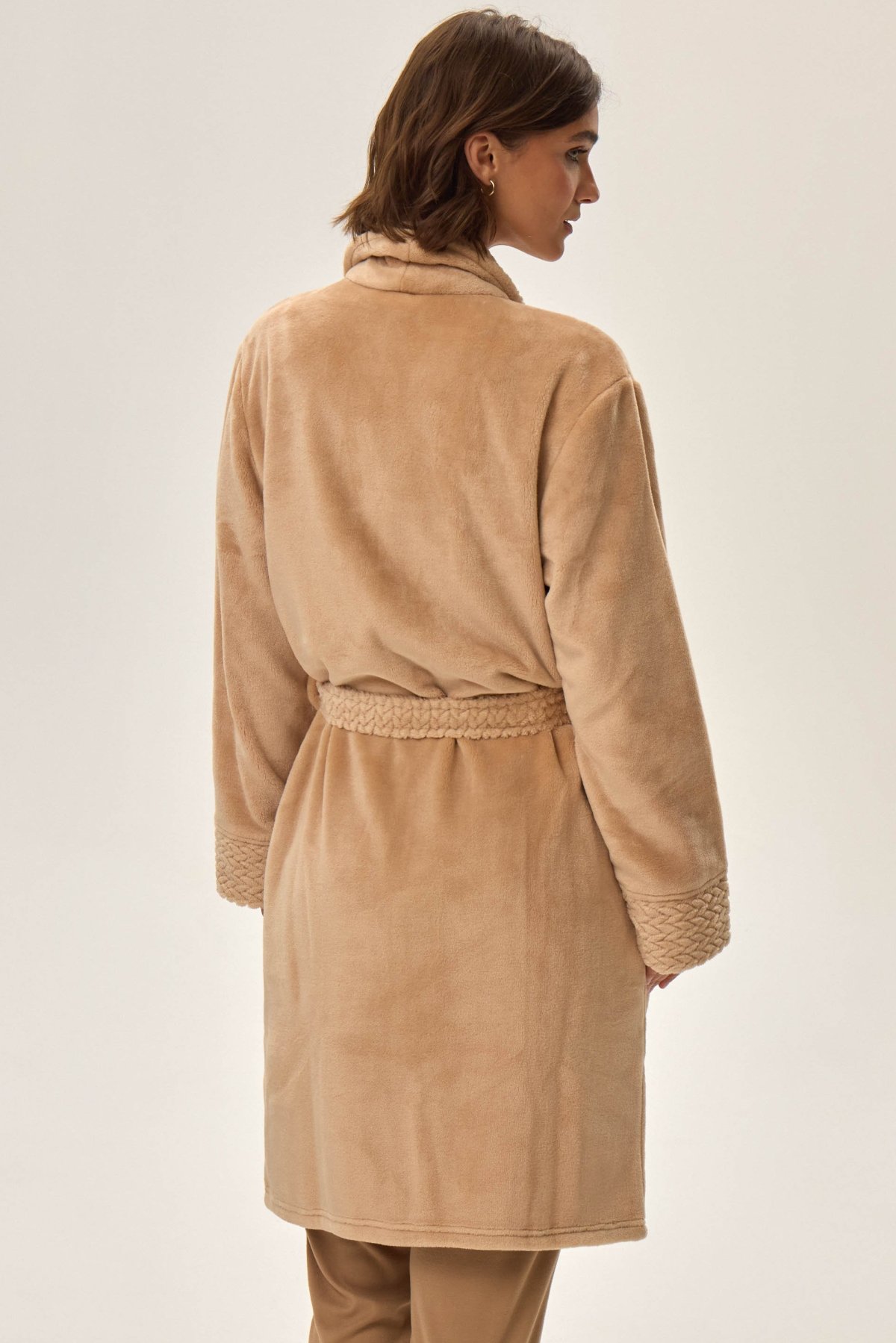 Dámský župan Jolanda je ztělesněním komfortu a elegance. Díky hřejivému materiálu a střihu téměř ke kolenům skvěle zahřeje po koupeli nebo během chladných rán. Klasický design doplňují stylové, vzorované lemy, které dodávají modelu šmrnc. Díky pásku v pase si snadno přizpůsobíte střih podle své postavy. Tento univerzální kousek spojuje praktičnost s jemným, ženským stylem.