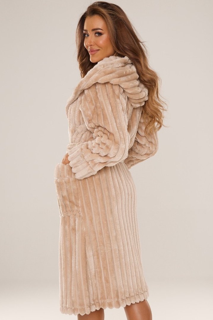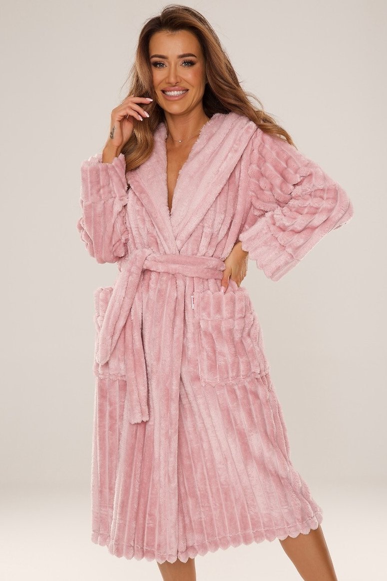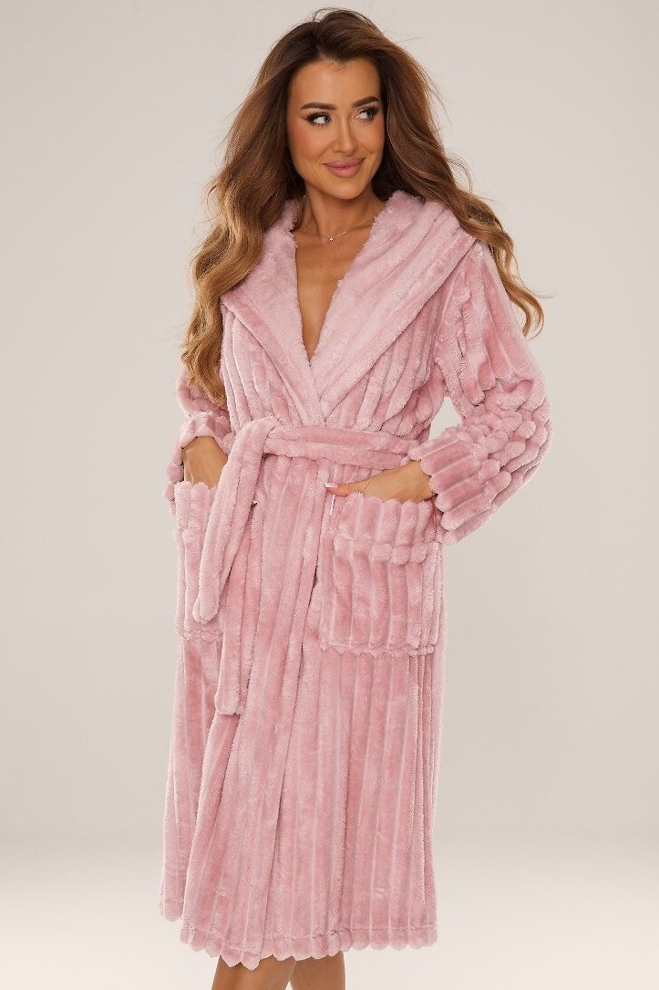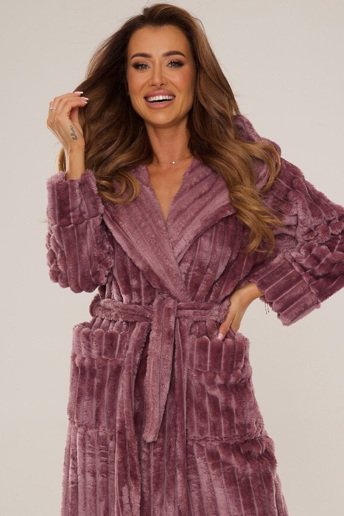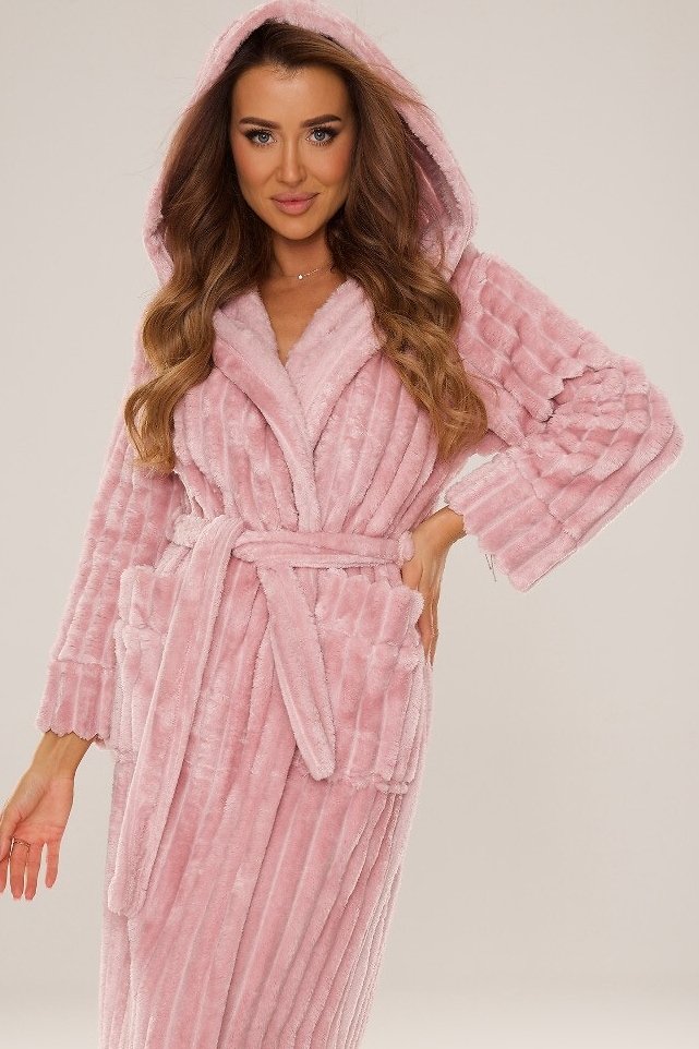 Dámský župan Sutton Midi zaujme svou jemností a útulným designem. Vyrobený z měkké, hřejivé látky s plastickým vzorem širokých pruhů. Poskytuje maximální pohodlí během chladných rán i večerů. Dlouhý střih s kapucí a praktickým páskem krásně obepíná postavu a zajišťuje pocit tepla. Díky postranním kapsám je nejen stylový, ale i funkční — ideální pro domácí relax i lenivé víkendové ráno.