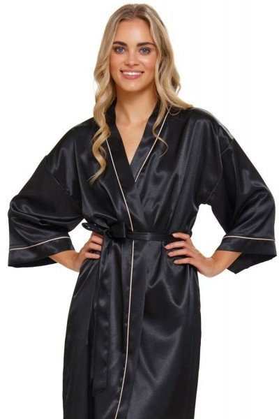 Elegantní, ryze ženský dámský župánek z hedvábného saténu. Díky příměsi elastanu se navíc krásně přizpůsobí jakékoliv postavě.