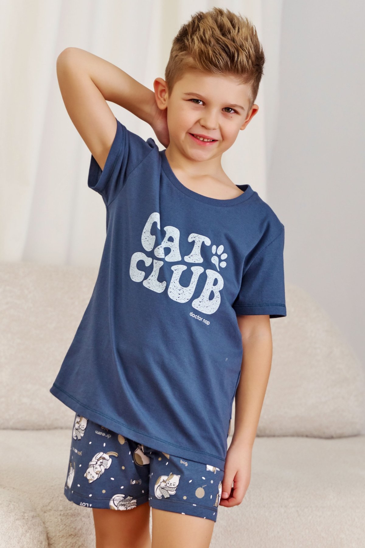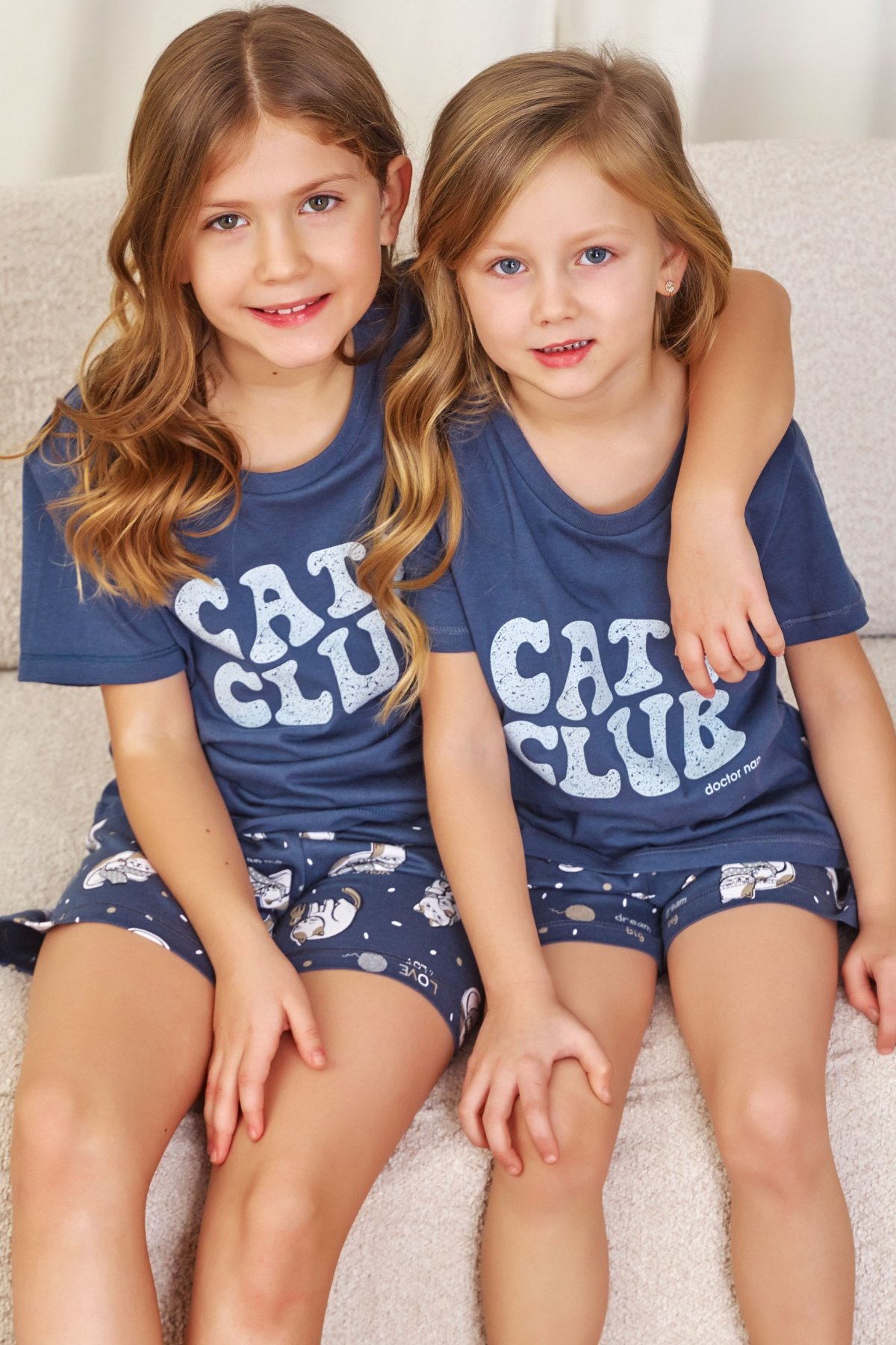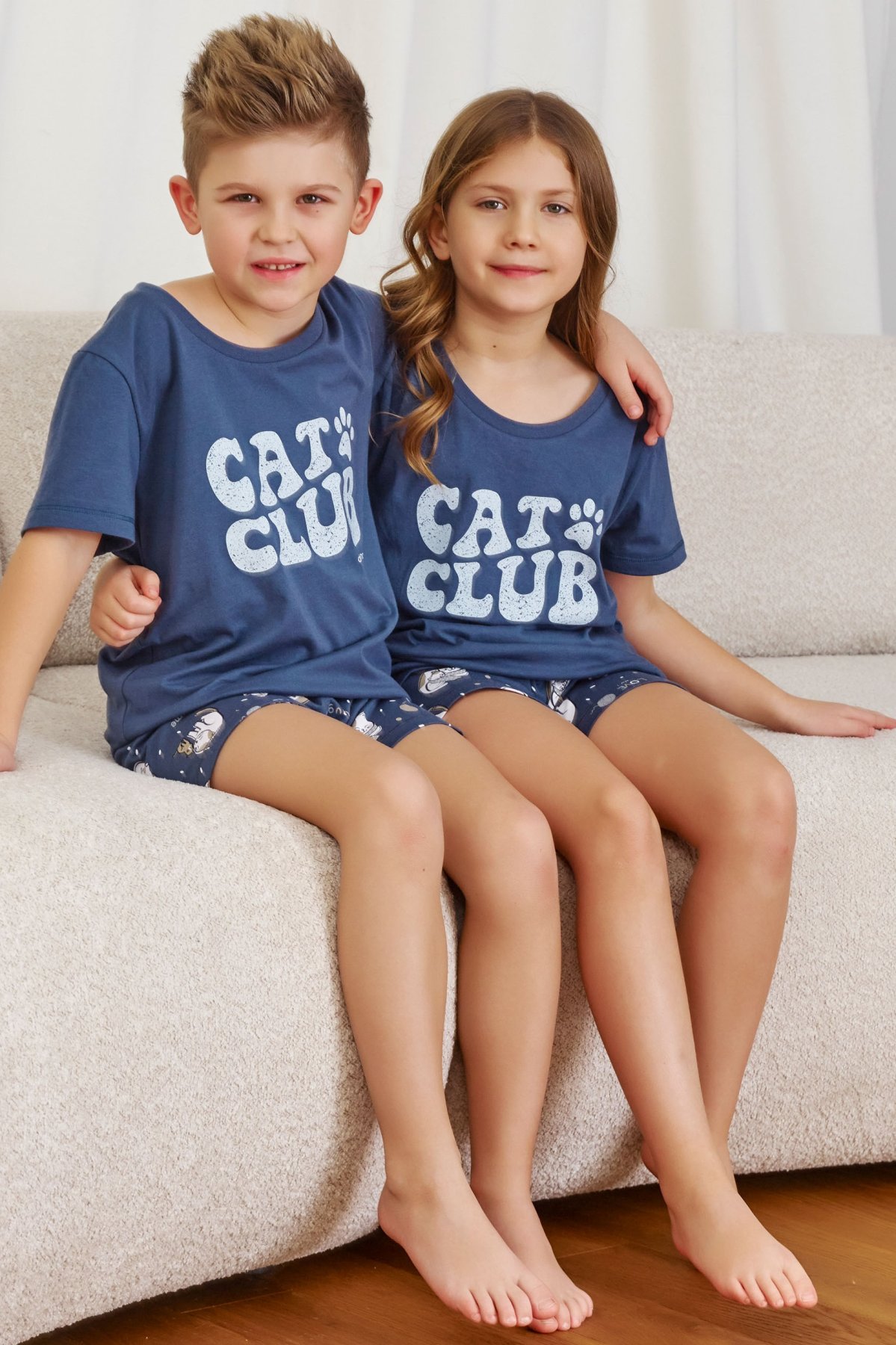 Dětské pyžamo Cat Club potěší každého malého milovníka zvířat. Triko s roztomilým nápisem „CAT CLUB“ a ladícími šortkami s potiskem koček vytváří veselý, hravý komplet ideální na teplé letní večery. Krátké rukávy i nohavice poskytují maximální volnost pohybu, měkká bavlna se postará o pohodlí při spánku i denním odpočinku. Kvalitní zpracování a univerzální design dělají z toho pyžama skvělou volbu jak pro dívky, tak pro chlapce.