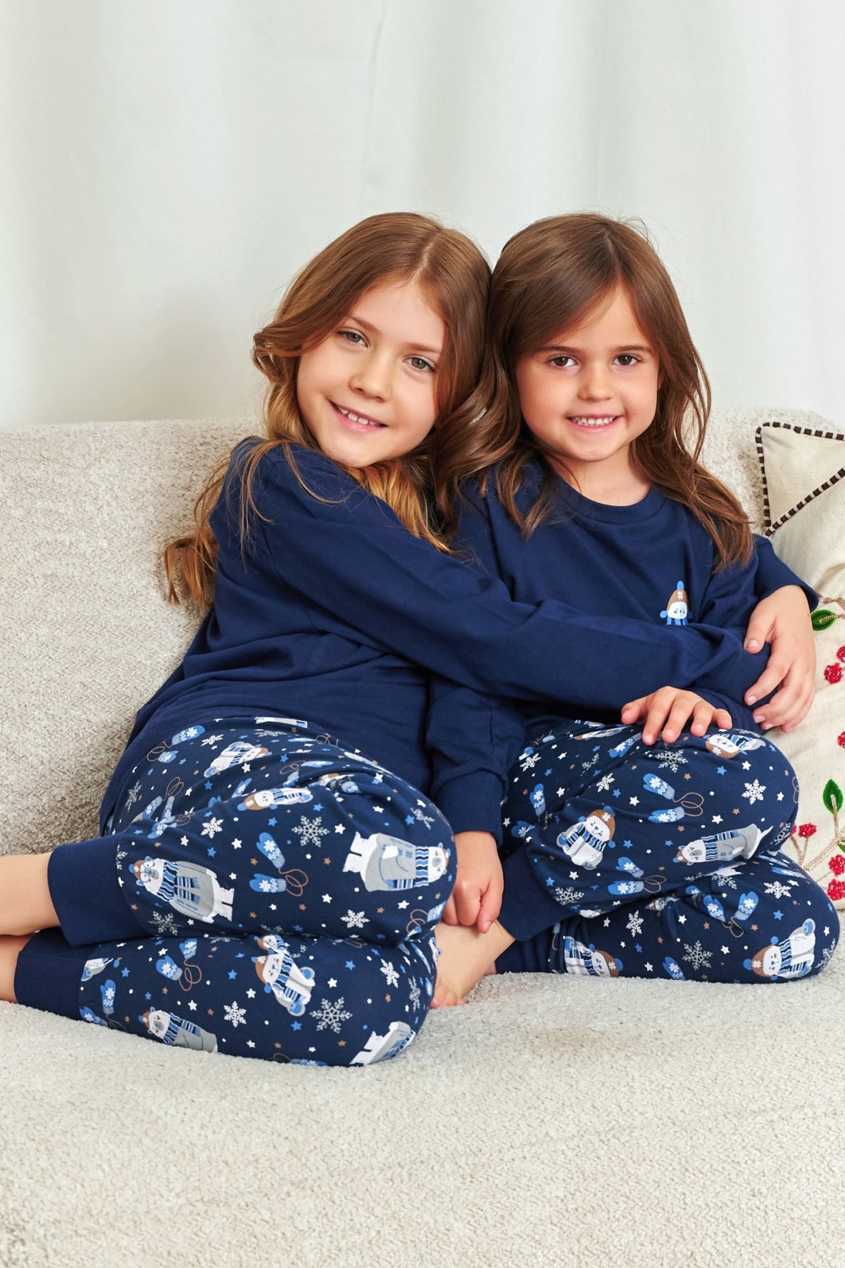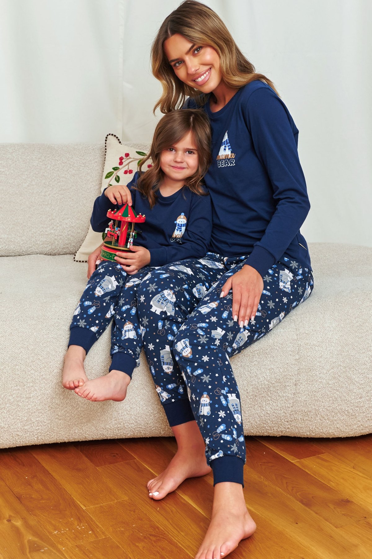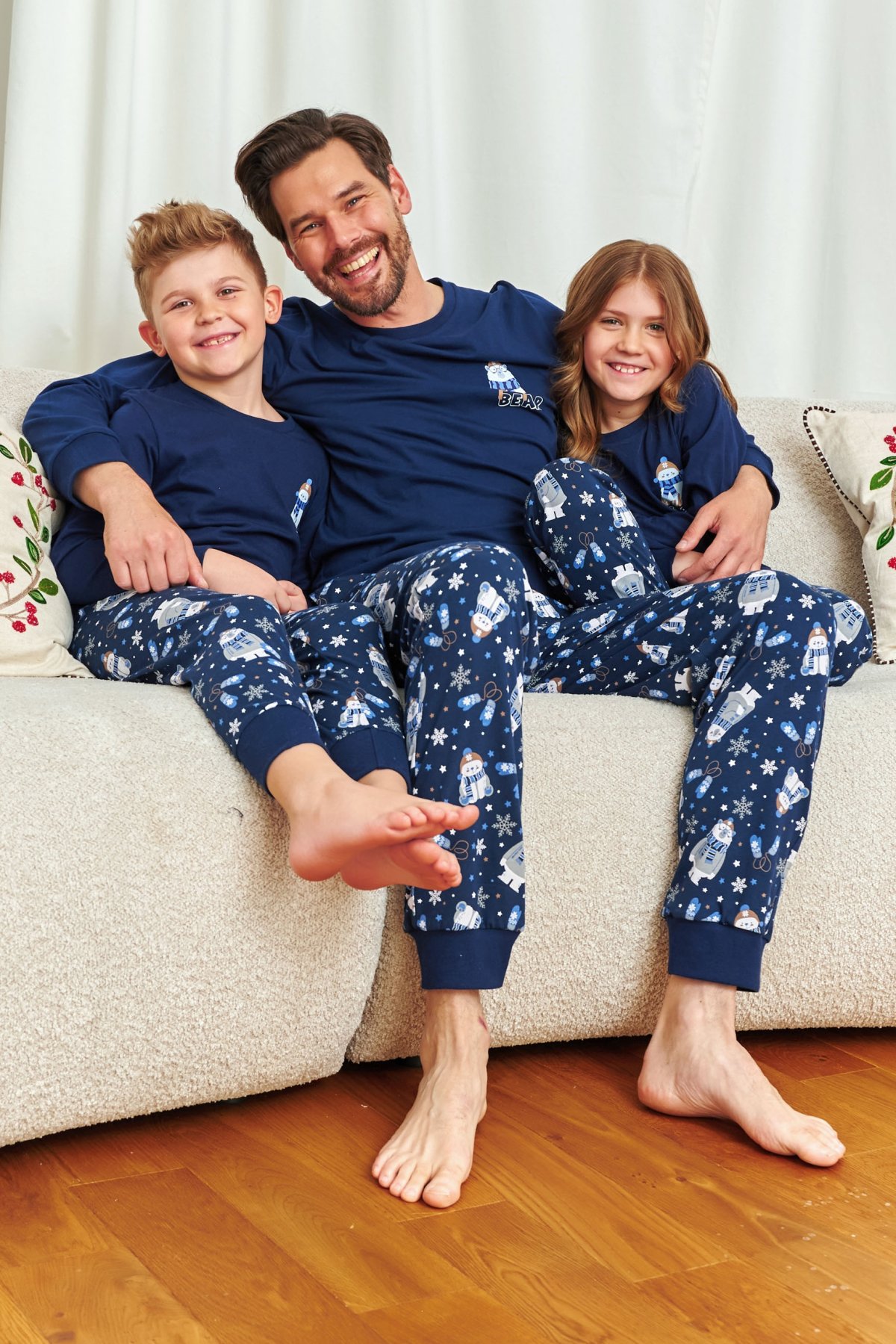 Pyžamo je vyrobeno ze 100% bavlny, takže je měkké, prodyšné a příjemné na dotek – ideální pro klidný spánek. Praktické náplety na rukávech a nohavicích udržují pyžamo na místě i při nočním dovádění. Perfektní volba pro zimní večery plné pohody a společných chvil.