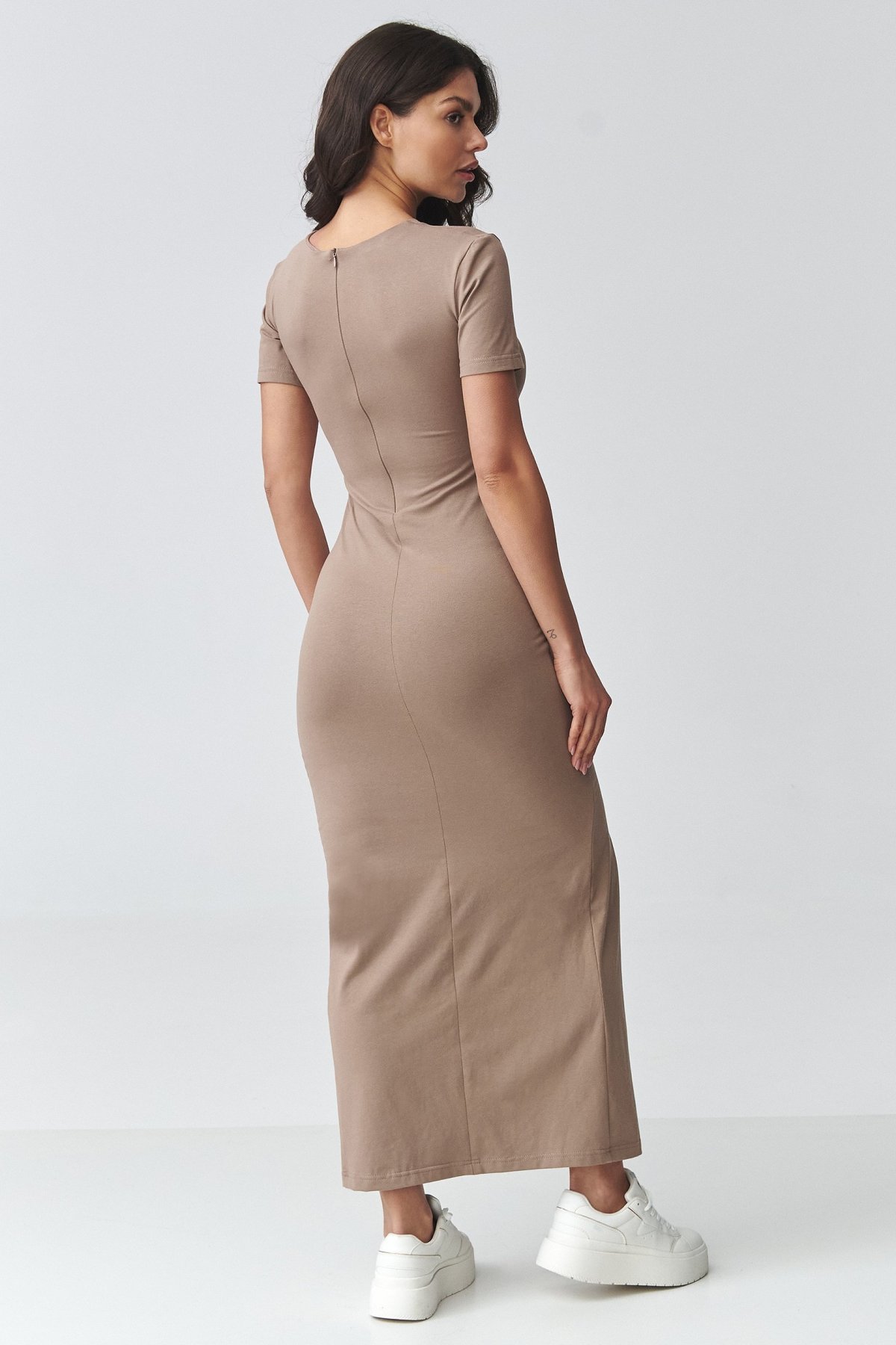 Dlouhé šaty s nařasením M931 - mocca