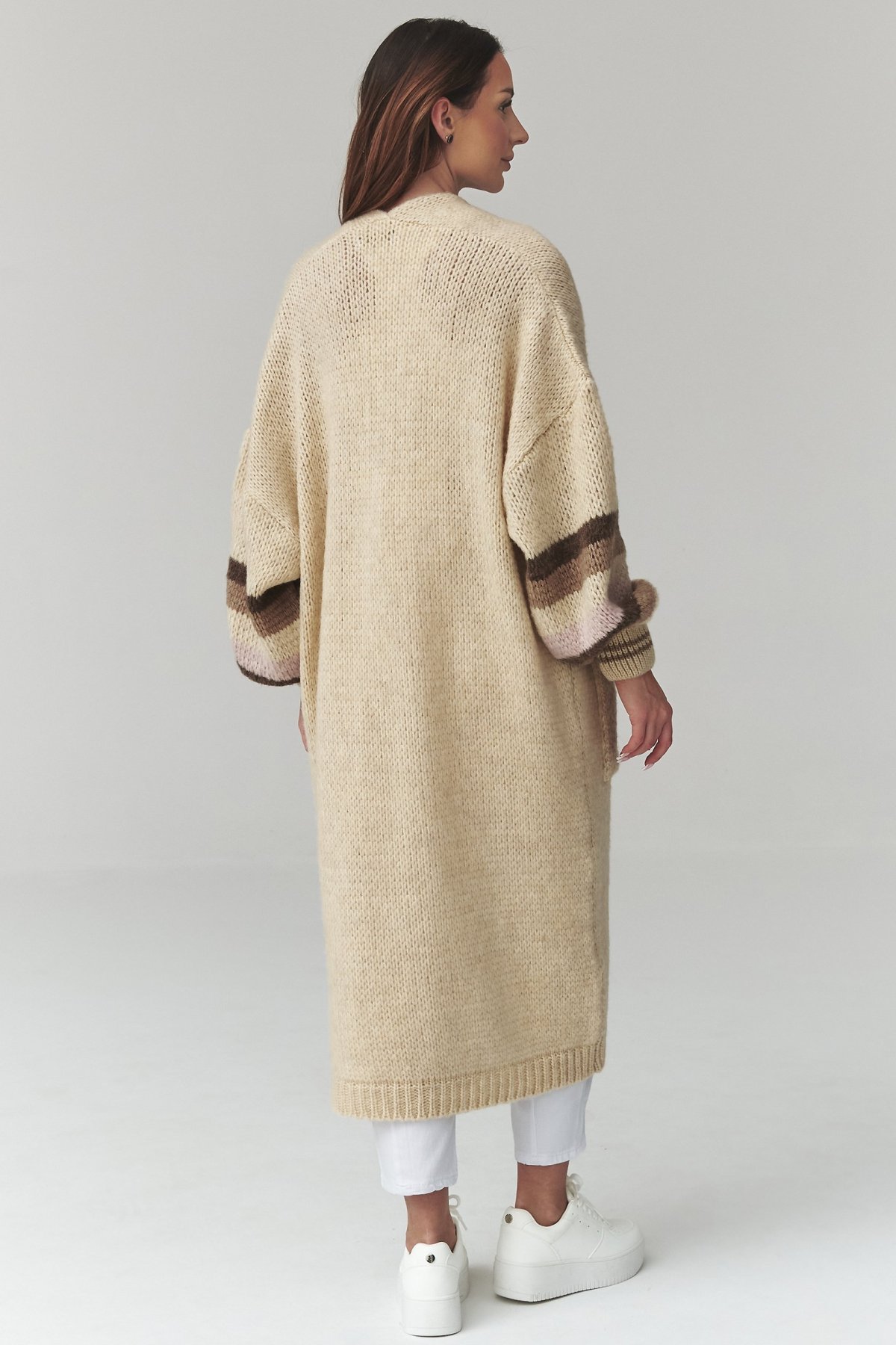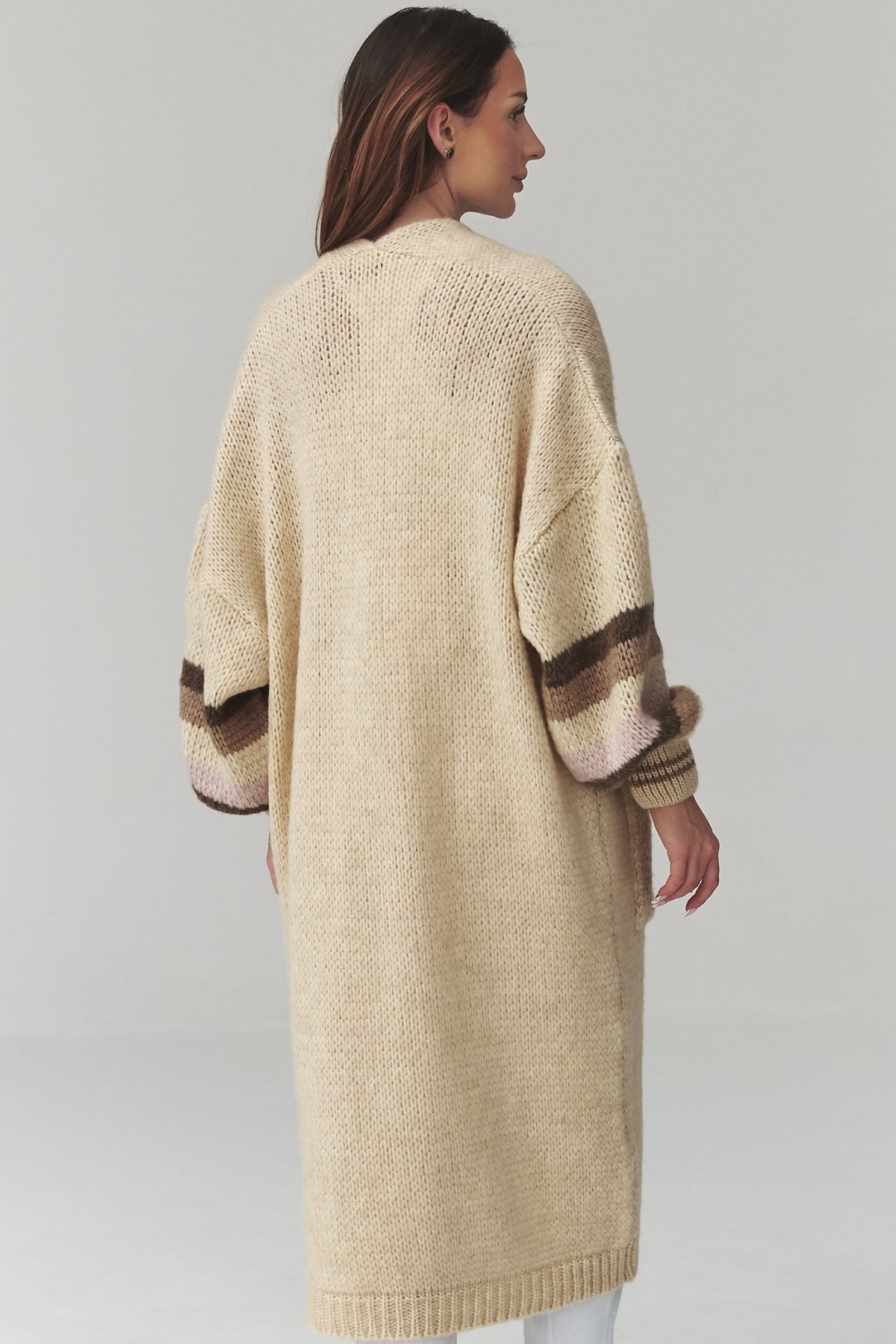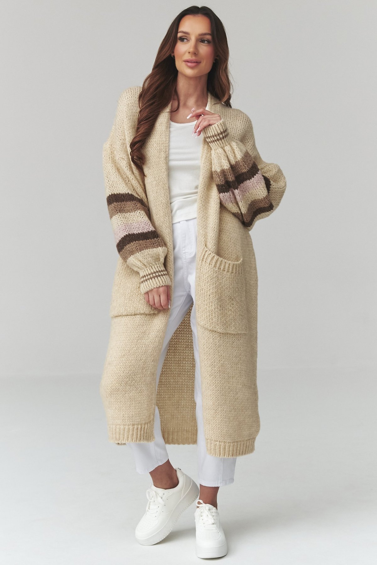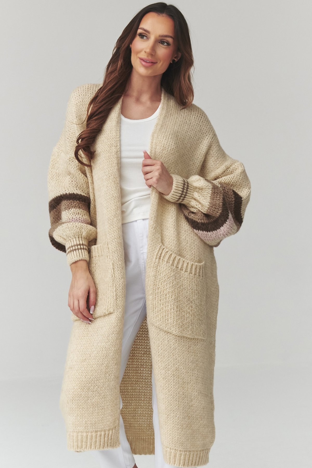 Dlouhý kardigan světle béžové barvy je kousek, který přidá vrstveným outfitům výraz a zároveň zůstane pohodlný pro běžné nošení.