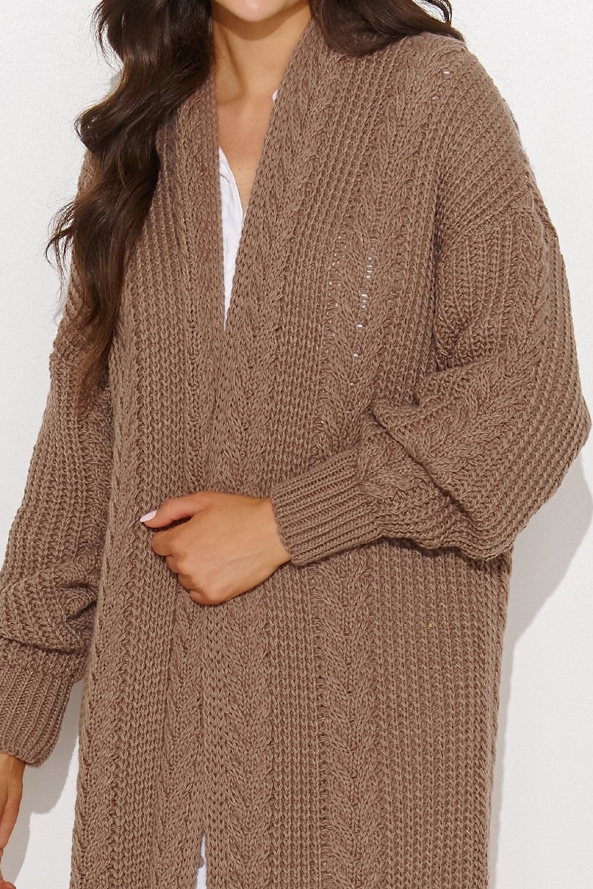Dlouhý otevřený kardigan v odstínu cappuccino je praktická vrstva, která dodá outfitu měkkost a klidný, upravený vzhled.