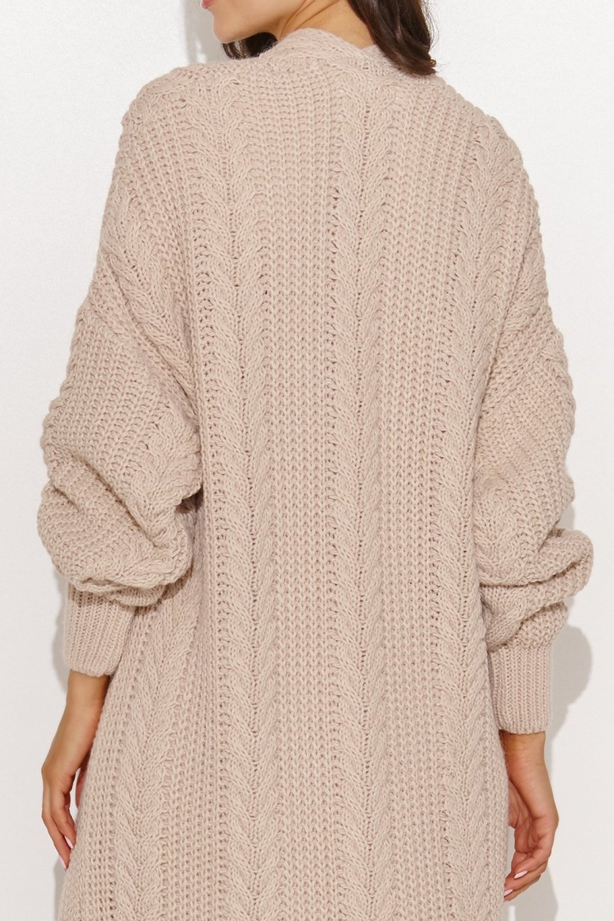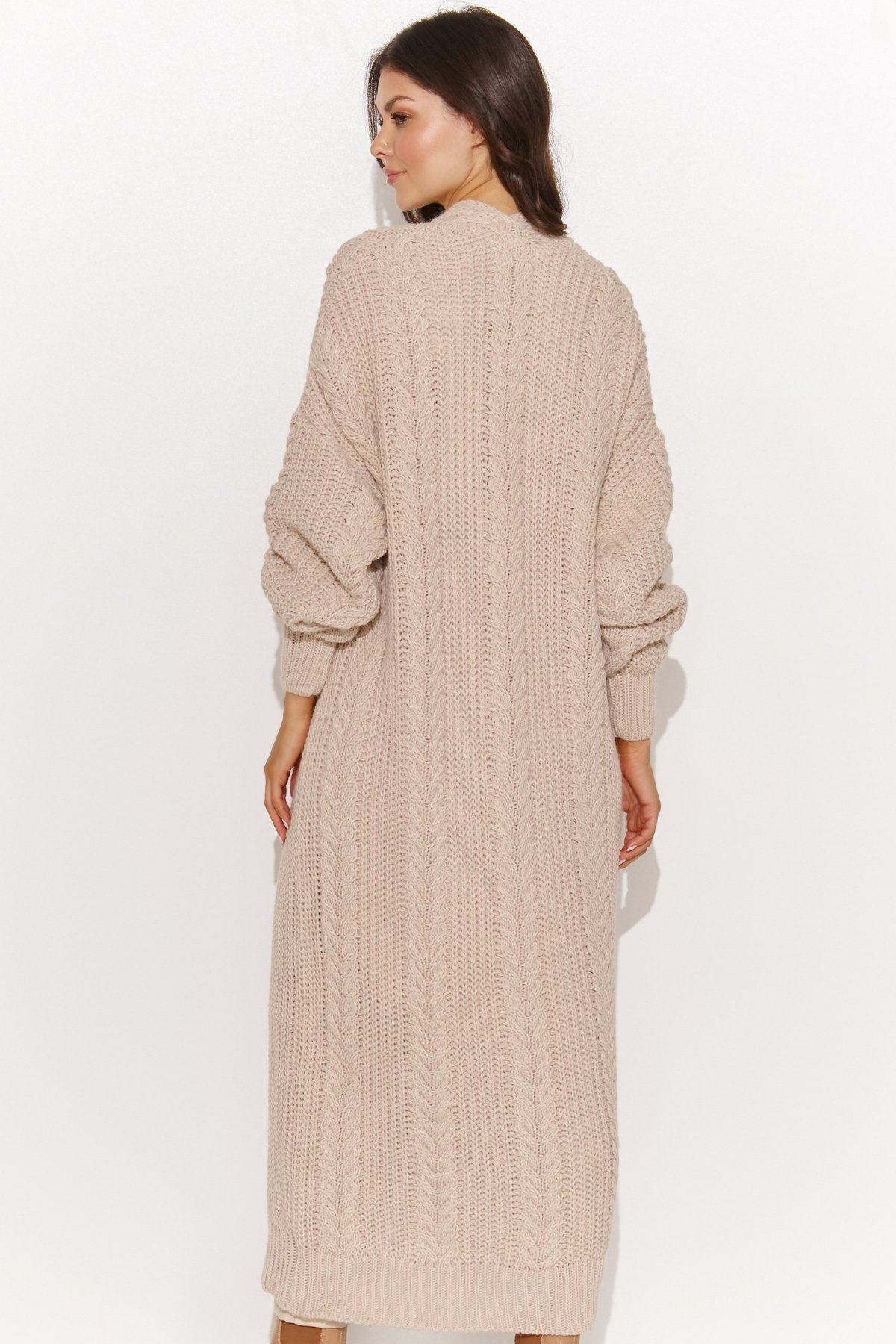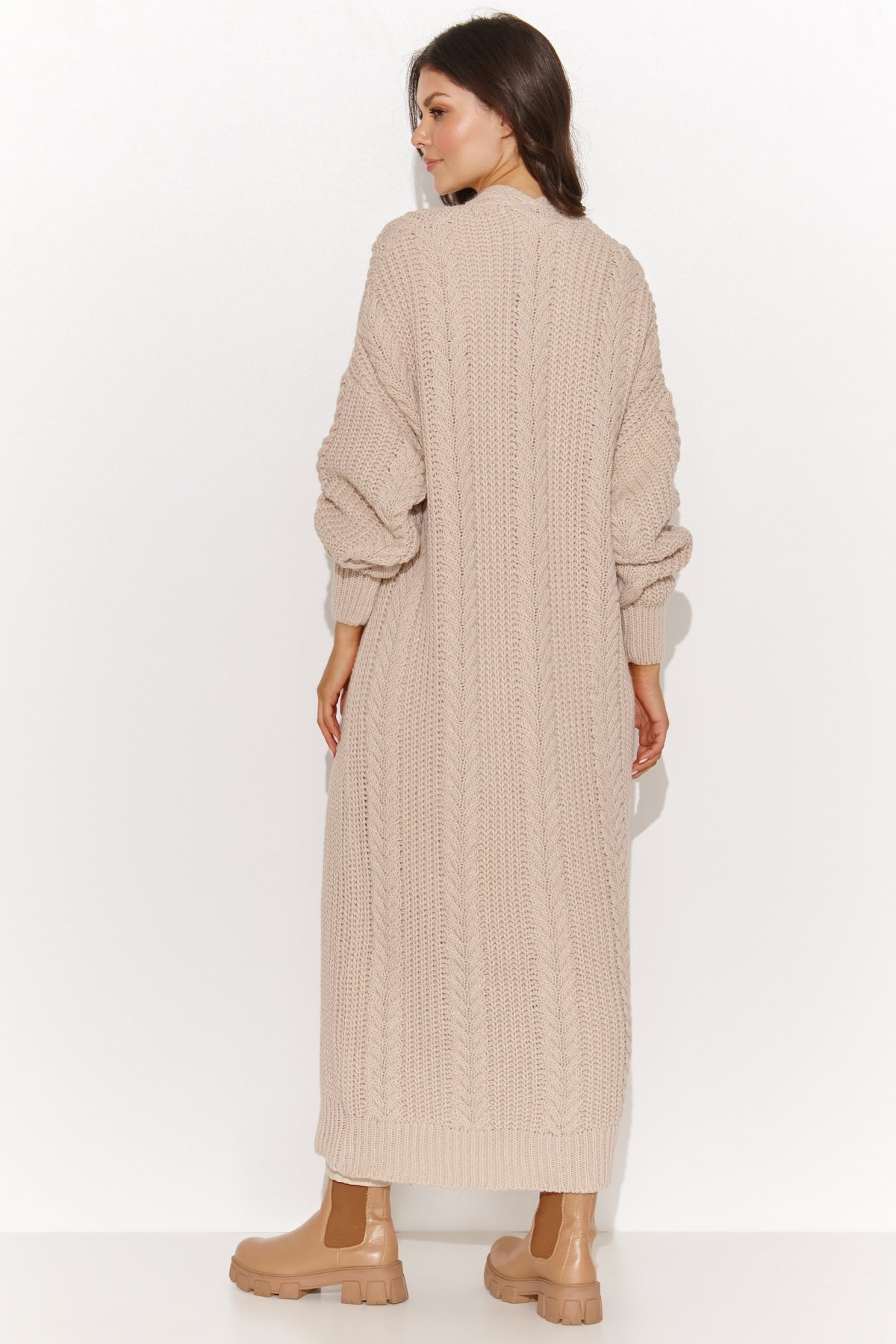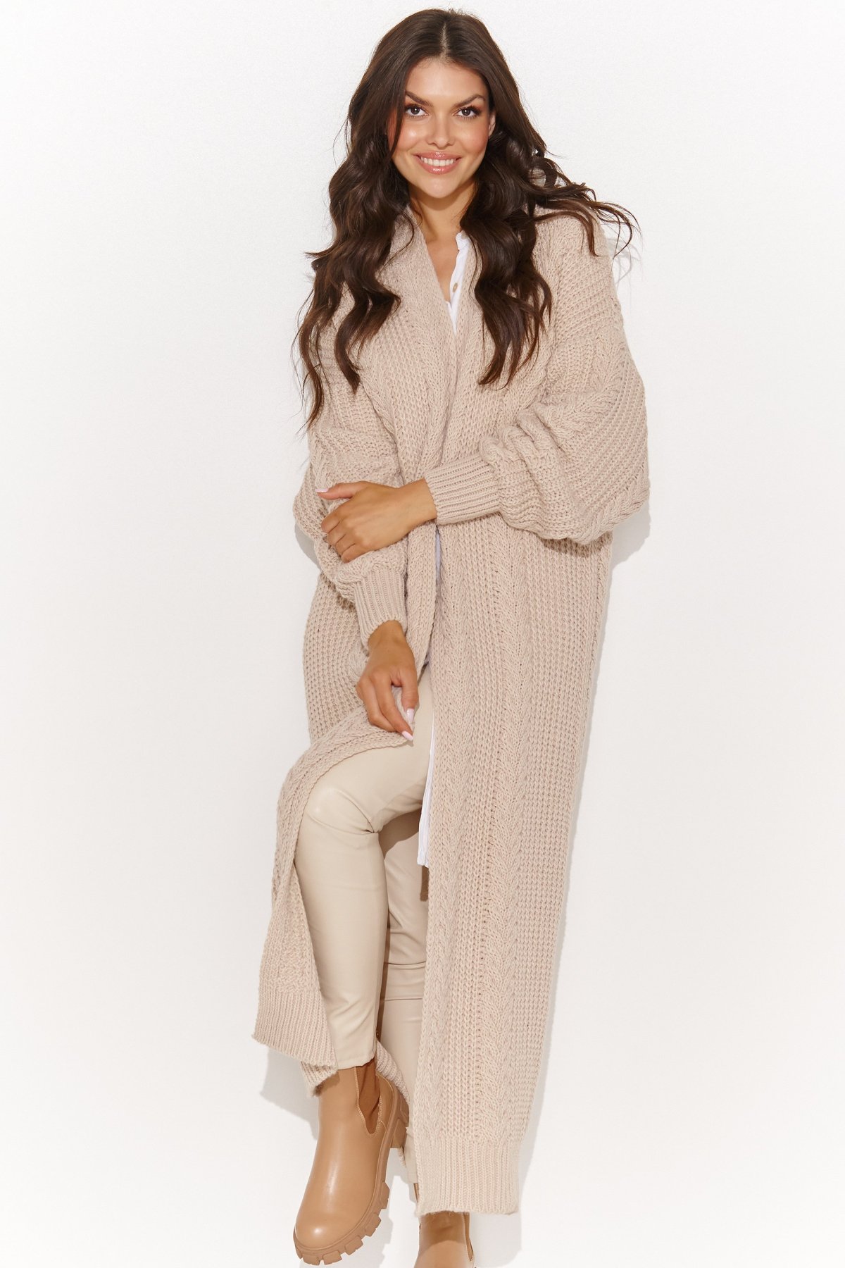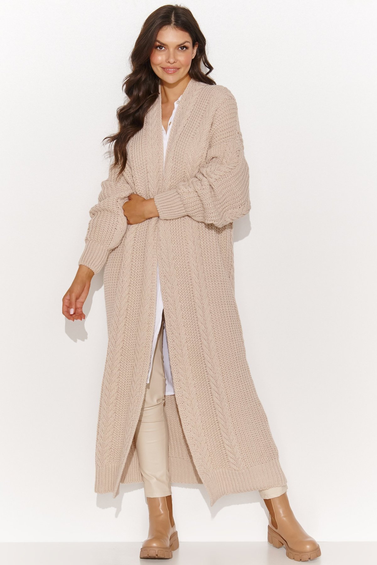Dlouhý otevřený kardigan světle béžové barvy je praktická vrstva, která dodá outfitu měkkost a klidný, upravený vzhled.