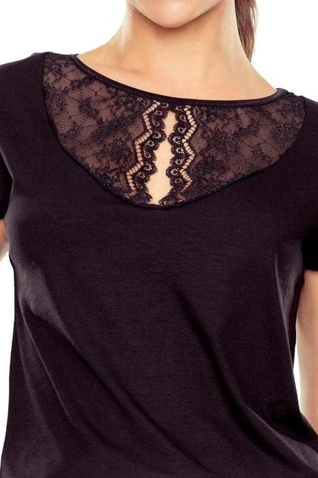 Hluboká černá barva a moderní krajková vsadka v horní části