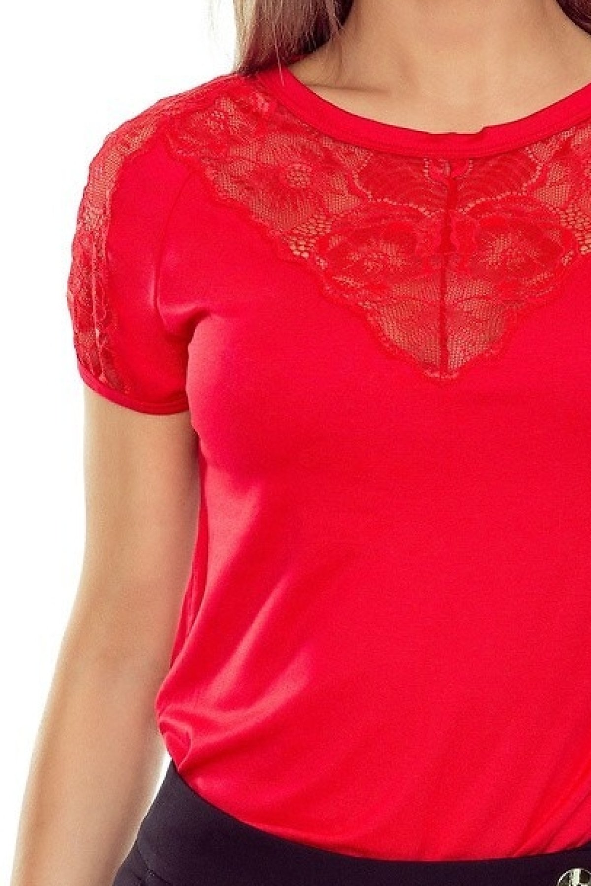 Elegantní halenka z viskózy s fascinující krajkovou aplikací.