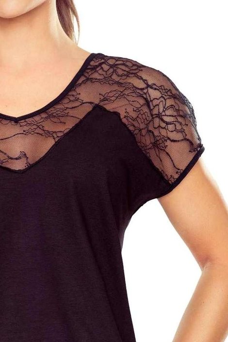 Krajka se na dekoltu skládá do tvaru V a opticky prodlužuje krk