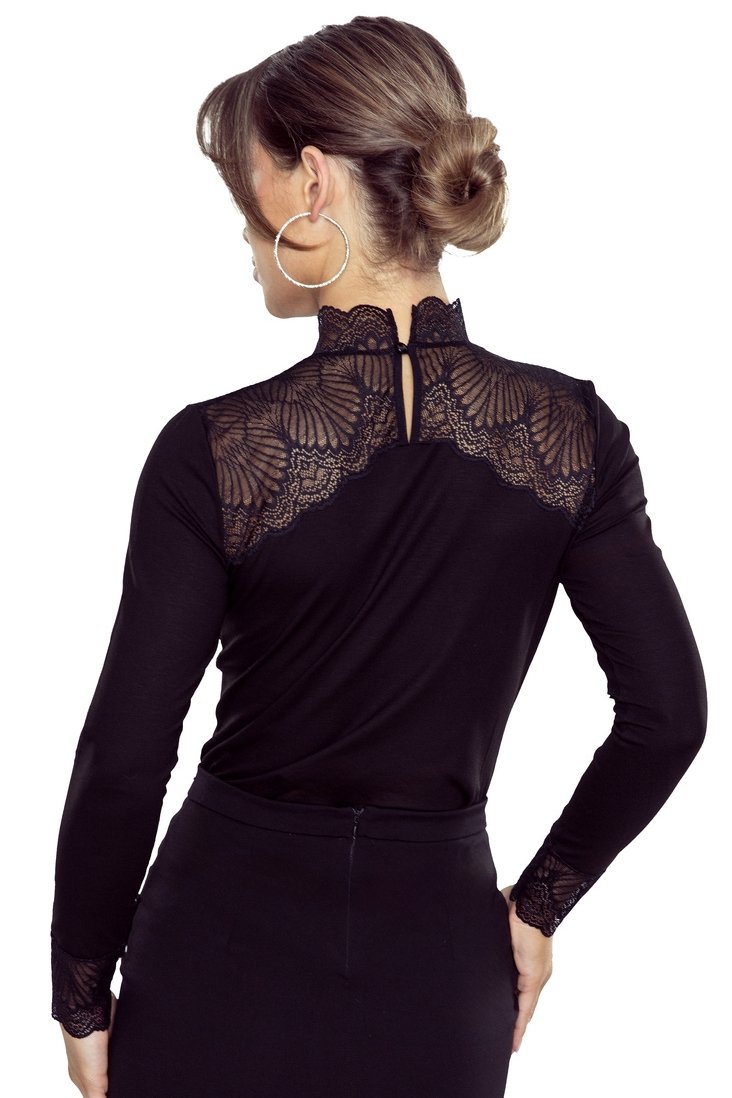 Halenka je vyrobena z kombinace viskózy, tylu a krajky. Přiléhavý střih. Vyšší límeček a jednobarevné provedení.