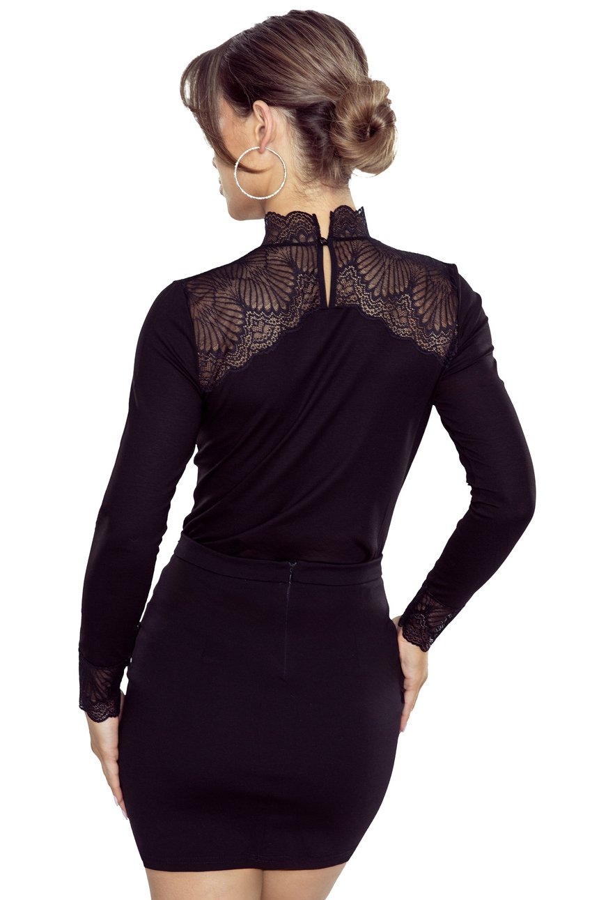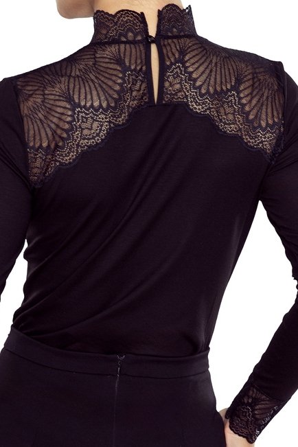 Poloprůhledná horní část s krajkovým stojáčkem u krku