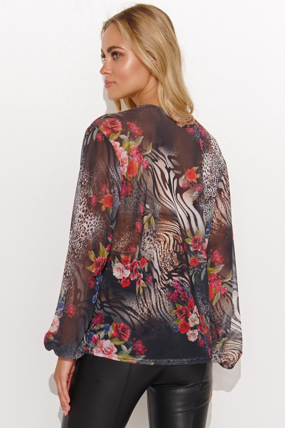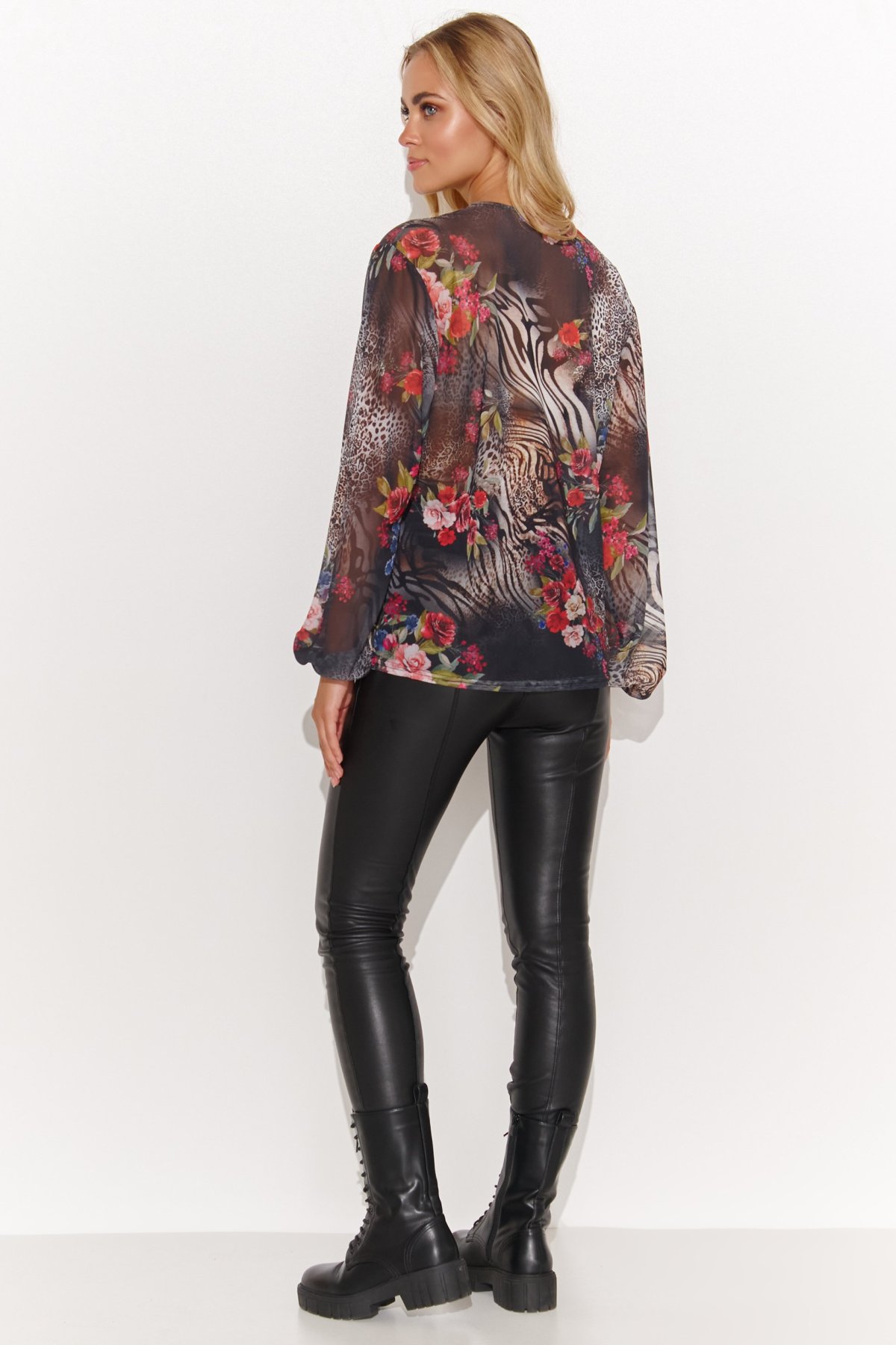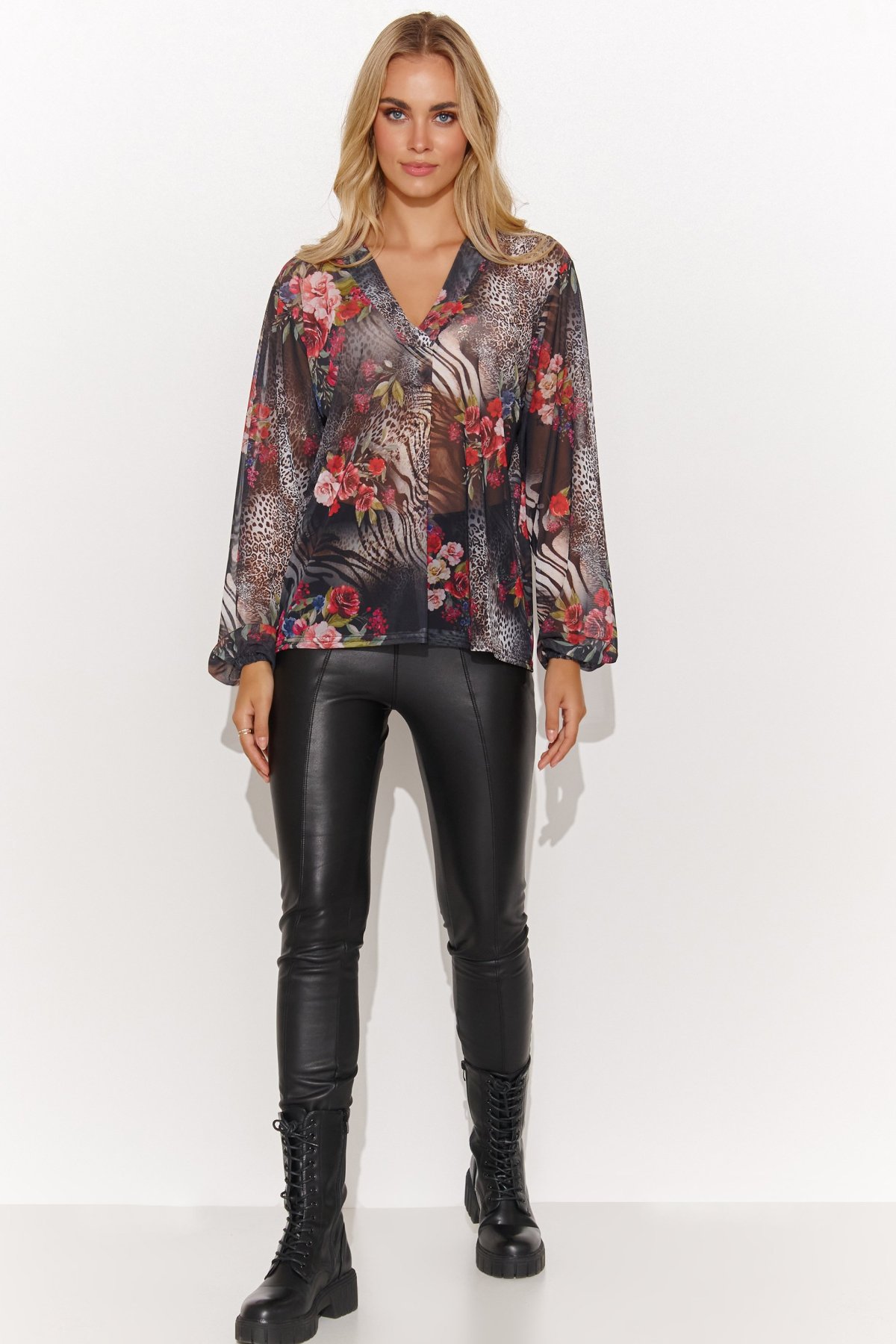 Lehká a vzdušná halenka v atraktivním barevném vzoru. Je ideálním kouskem pro ženy, které chtějí spojit pohodlí s moderním stylem. Díky volnému střihu se příjemně nosí a působí ležérně. Výstřih do „V“ dodává ženský nádech. Materiál s jemnou strukturou vytváří zajímavý efekt a umožňuje vytvářet vrstvené outfity — stačí pod ni obléct jednoduché tílko nebo podprsenku s krajkou. Halenku snadno zkombinujete s džínami pro každodenní look, nebo s elegantními kalhotami a podpatky pro výraznější večerní styl.