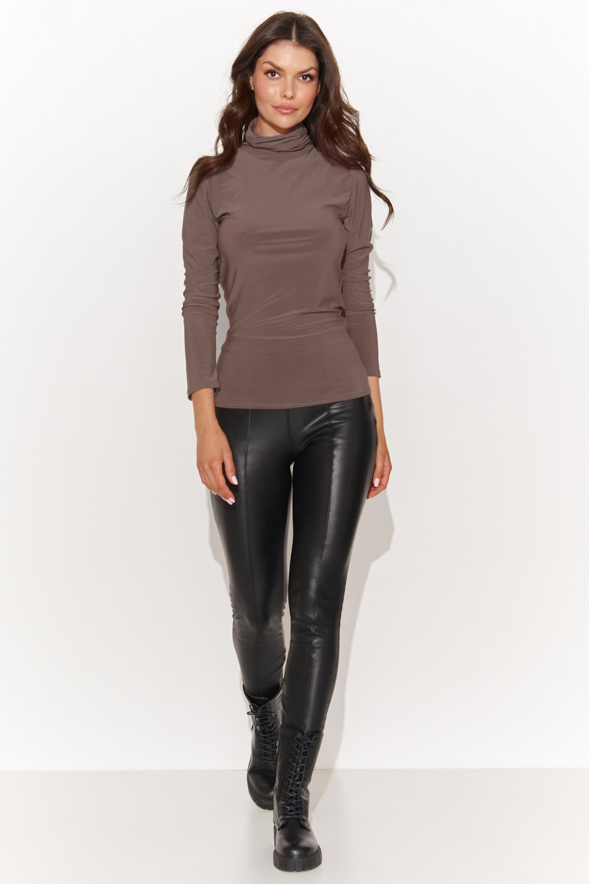 Funkční dámská halenka z pružné, neprůhledné látky je klasikou mezi svršky. Dekolt v podobě praktického rolákového límce v kombinaci s dlouhými rukávy vás zahřeje v chladnějších dnech. Pozlacená destička našitá v horní části zad dodává halence jemnou eleganci. Díky jednoduchému střihu se perfektně hodí k ležérním outfitům, které můžete nosit jak do kanceláře, tak na procházky po městě. Dámský rolák se skvěle hodí jak k úzkým kalhotám, tak k kalhotám širšího střihu. Halenka je kombinací funkčnosti a elegance, což ve výsledku dává úspěšný recept na look. Model je k dispozici v 10 barevných variantách. Každá z vás si tedy zaručeně vybere.