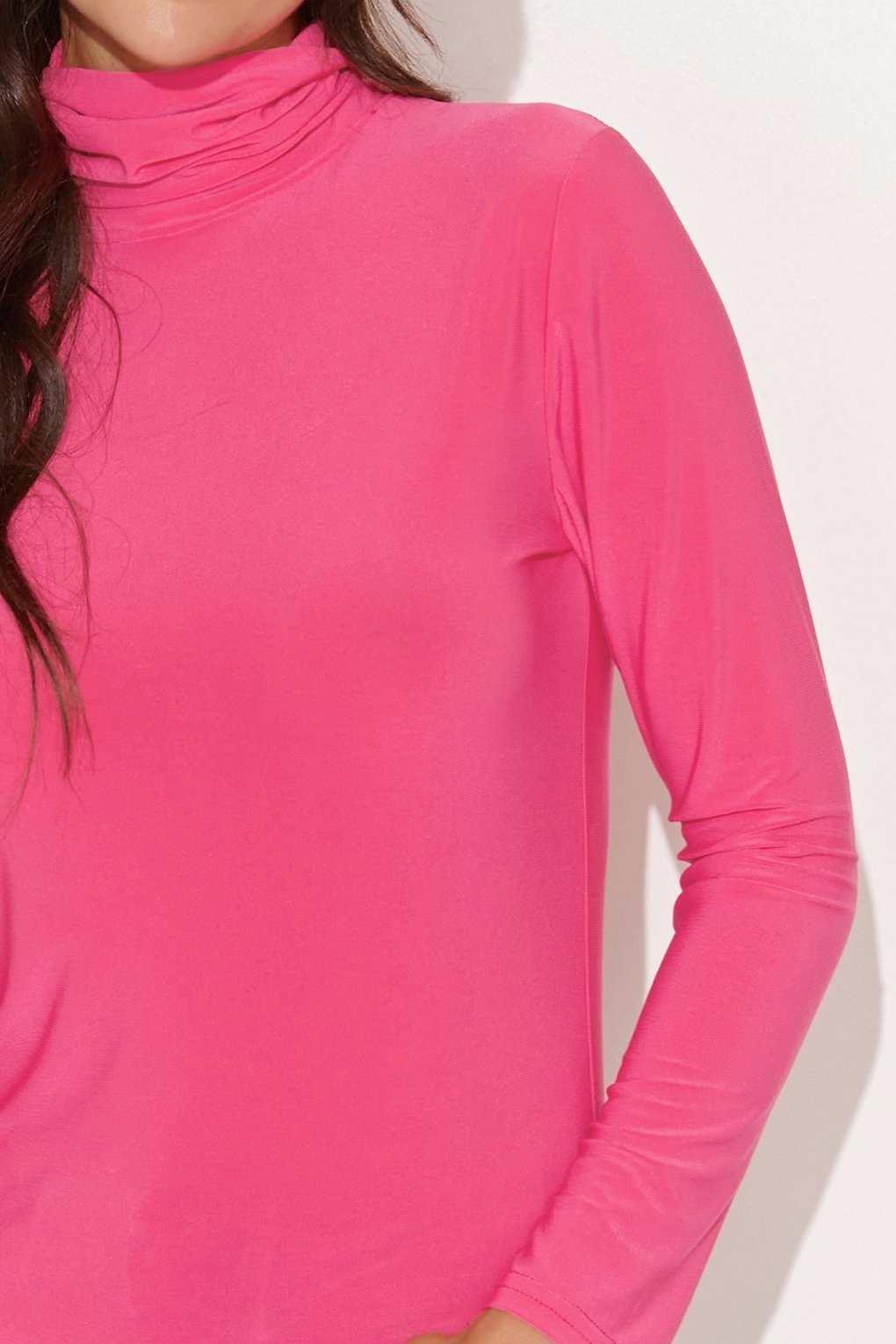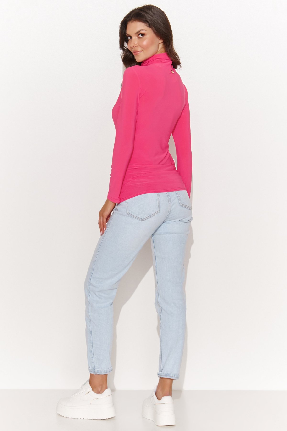 Funkční dámská halenka z pružné, neprůhledné látky je klasikou mezi svršky. Dekolt v podobě praktického rolákového límce v kombinaci s dlouhými rukávy vás zahřeje v chladnějších dnech. Pozlacená destička našitá v horní části zad dodává halence jemnou eleganci. Díky jednoduchému střihu se perfektně hodí k ležérním outfitům, které můžete nosit jak do kanceláře, tak na procházky po městě. Dámský rolák se skvěle hodí jak k úzkým kalhotám, tak k kalhotám širšího střihu. Halenka je kombinací funkčnosti a elegance, což ve výsledku dává úspěšný recept na look. Model je k dispozici v 10 barevných variantách. Každá z vás si tedy zaručeně vybere.