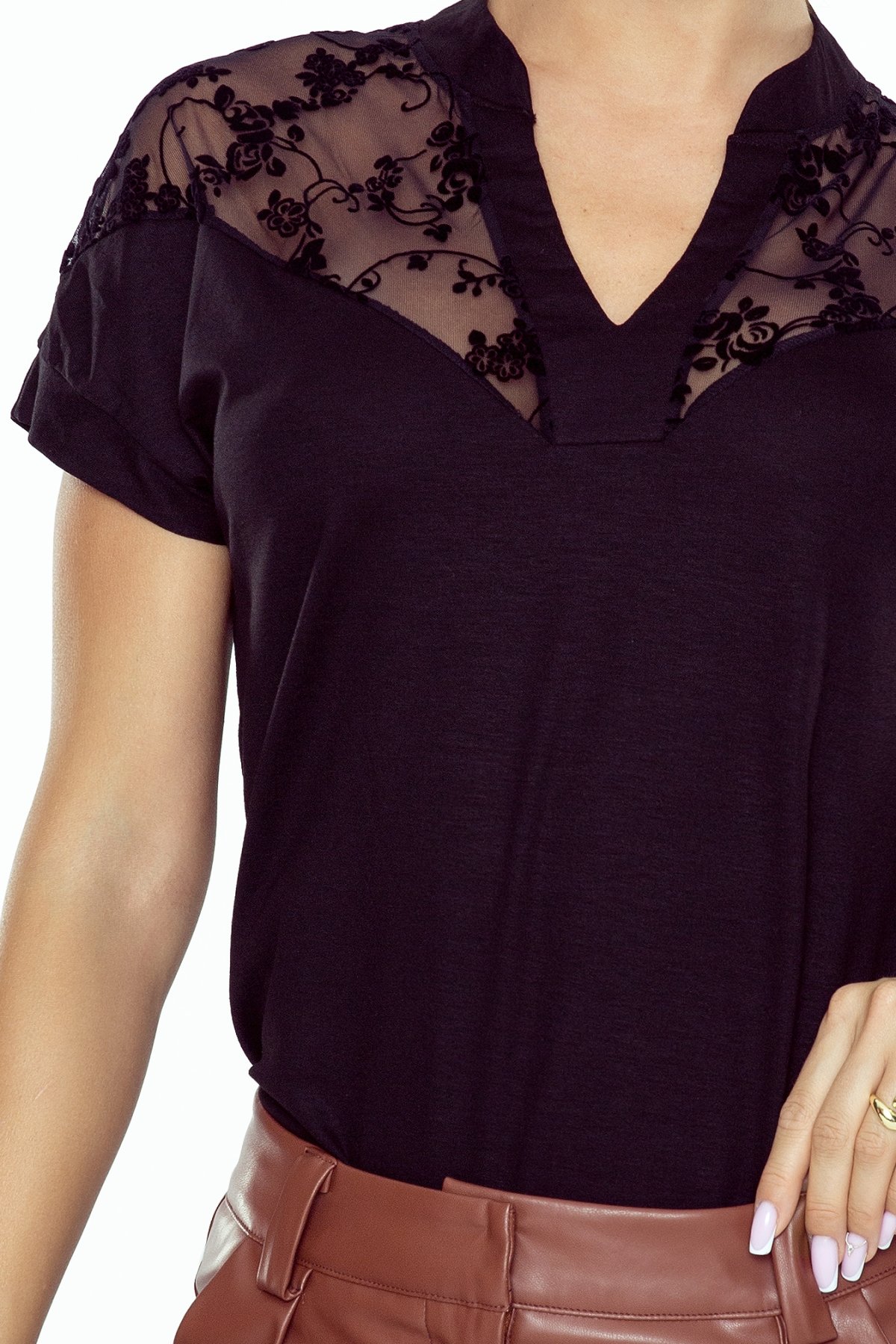 Sefora byla navržena s důrazem na detaily, včetně jemné krajkové aplikace, která dodává halence sofistikovaný vzhled. Díky svému střihu a materiálu je vhodná pro různé příležitosti, od pracovního dne až po společenské události.