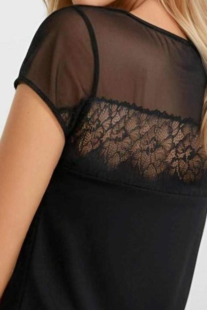 Blůzka Trisha sází na detail, který udělá celý outfit. Průsvitný tyl v horní části a na rukávech působí lehce a dodá siluetě jemnou tajemnost, zatímco krycí viskózový korpus zůstává příjemný na nošení i během dlouhého dne. Největší pozornost přitahuje široká krajková aplikace nad prsy – květinový motiv v měděných a zlatavých tónech krásně vystoupí na černém podkladu a vytvoří „bižuterní“ efekt bez nutnosti náhrdelníku. Trisha vypadá skvěle s džínami i s pouzdrovou sukní nebo kalhotami do společnosti, takže ji využijete od běžného dne až po večerní příležitosti.