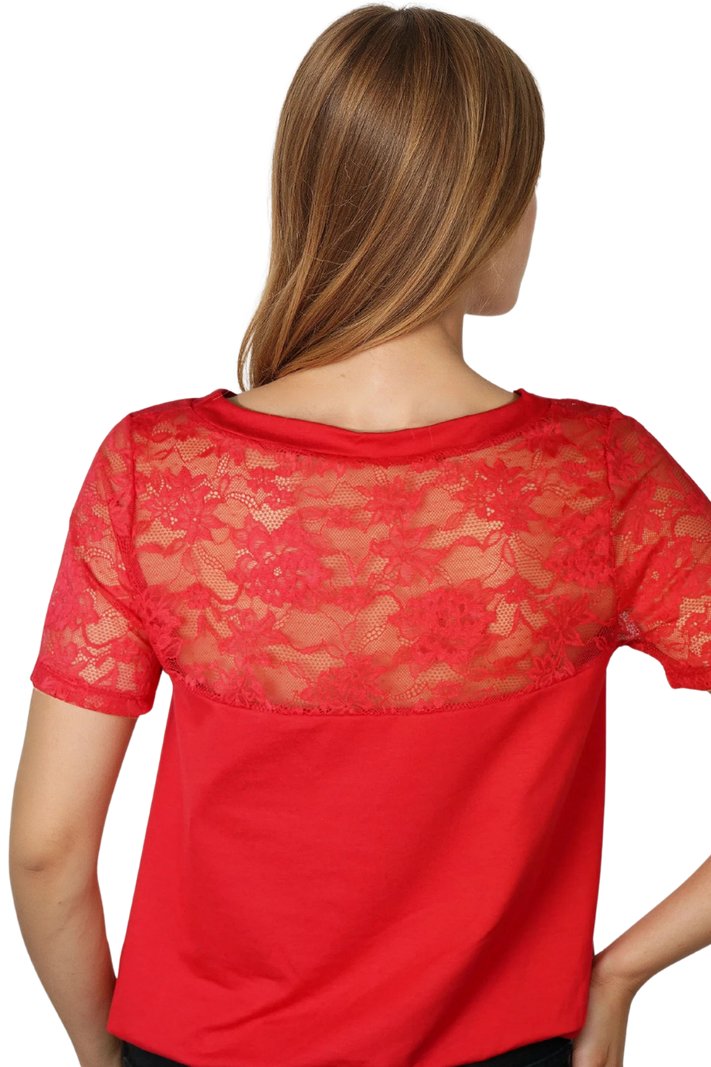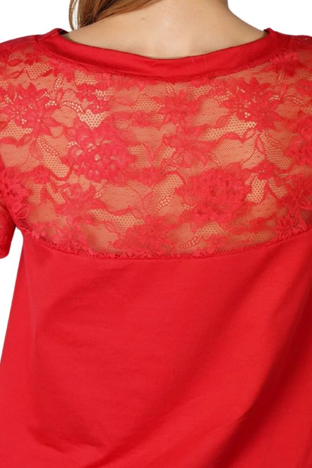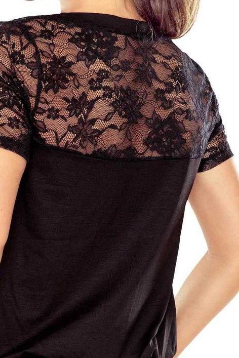 Horní část a krátké rukávy zakončené jemnou krajkou