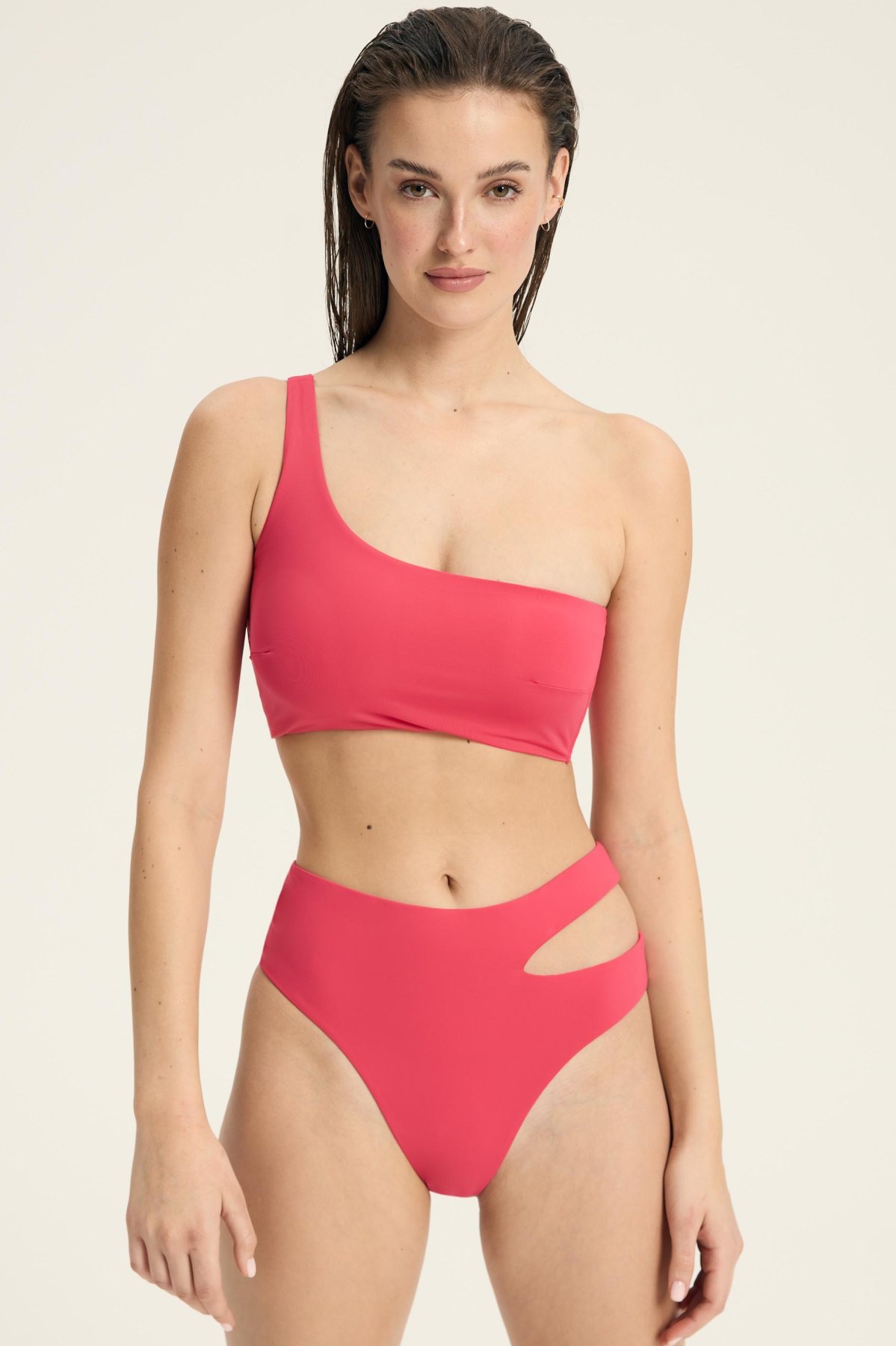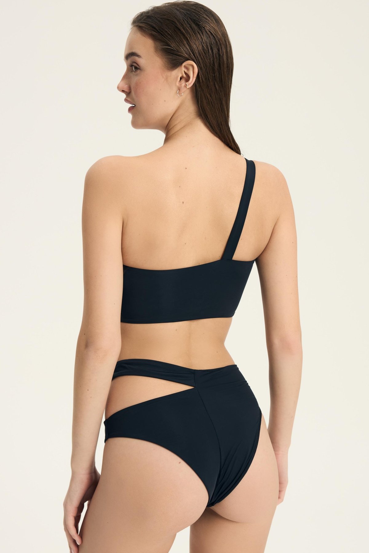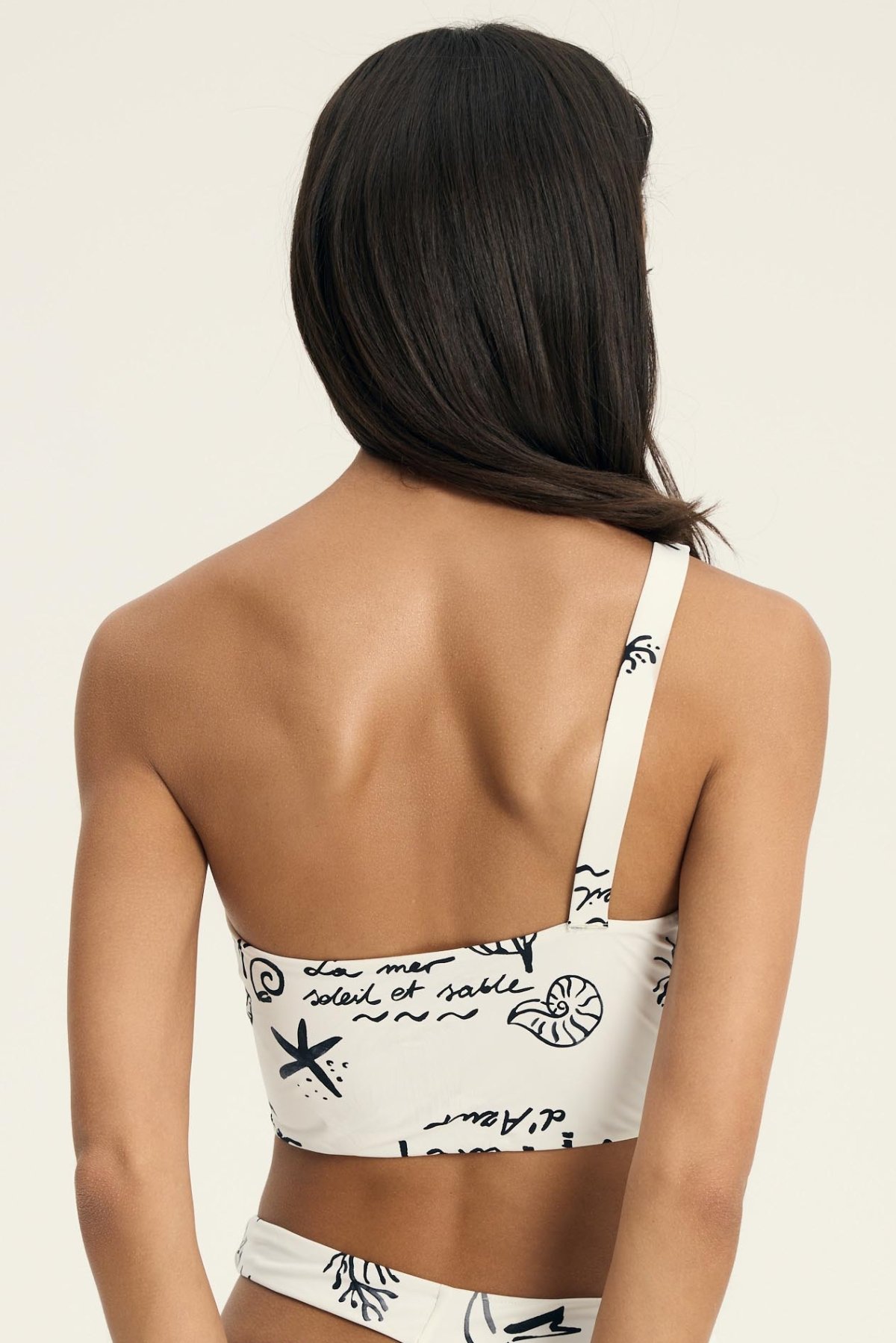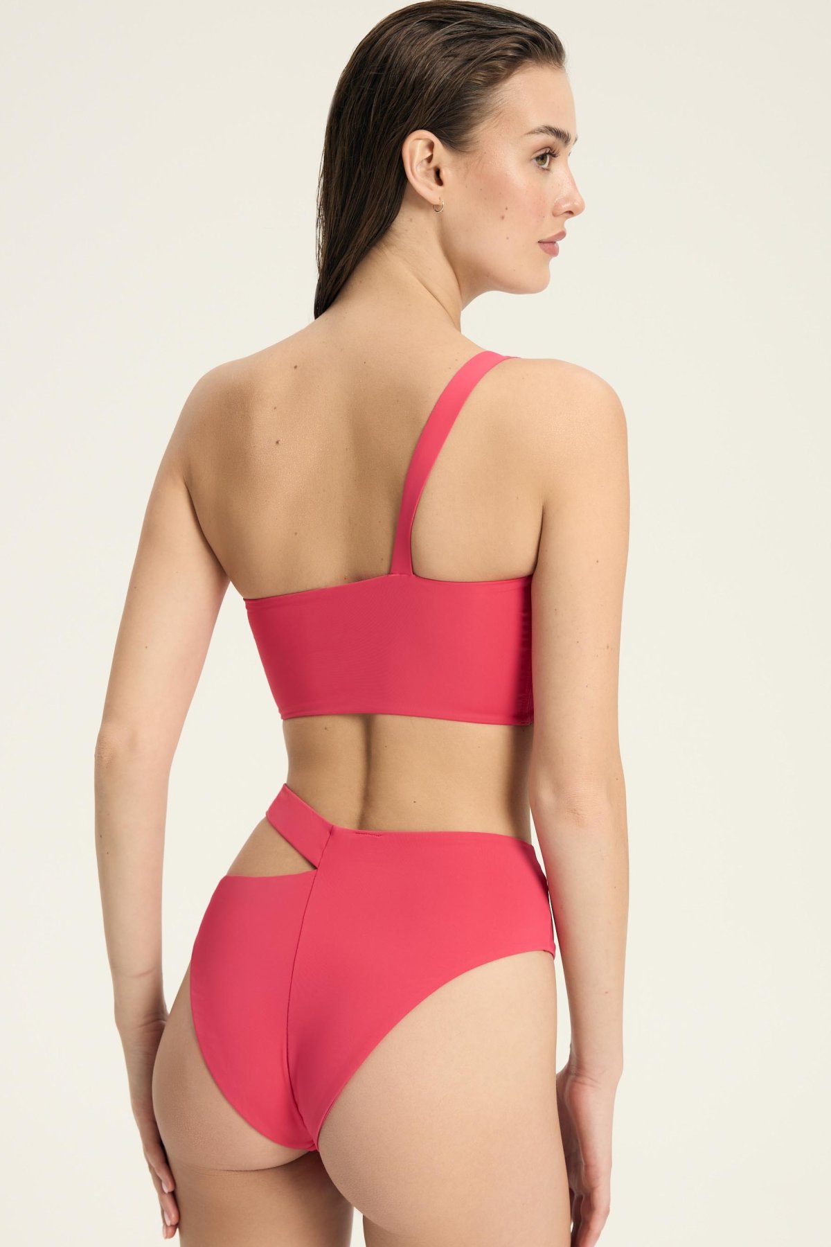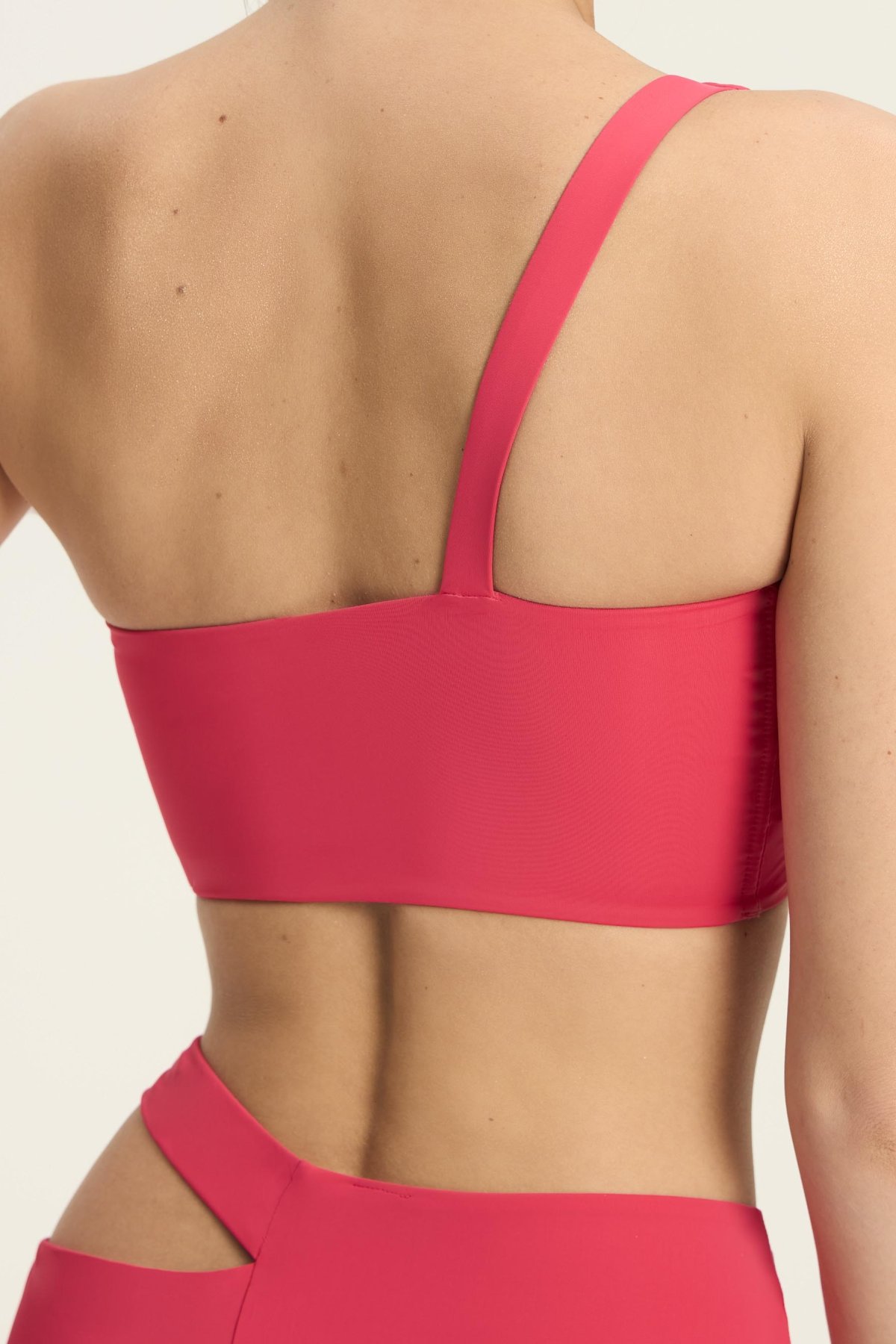 Asymetrický střih s jedním širokým ramínkem na pravém rameni působí minimalisticky a zároveň výrazně. Měkká konstrukce bez kostic se přirozeně přizpůsobí tvaru prsou a poskytuje pohodlí i při delším nošení. Hladký povrch bez dekorativního prošívání podtrhuje jednoduchost modelu a umožňuje snadné kombinování s různými spodními díly. Model je vhodný na pláž i k bazénu – drží tvar, neomezuje pohyb a vytváří moderní siluetu, která vynikne v letních outfitech.