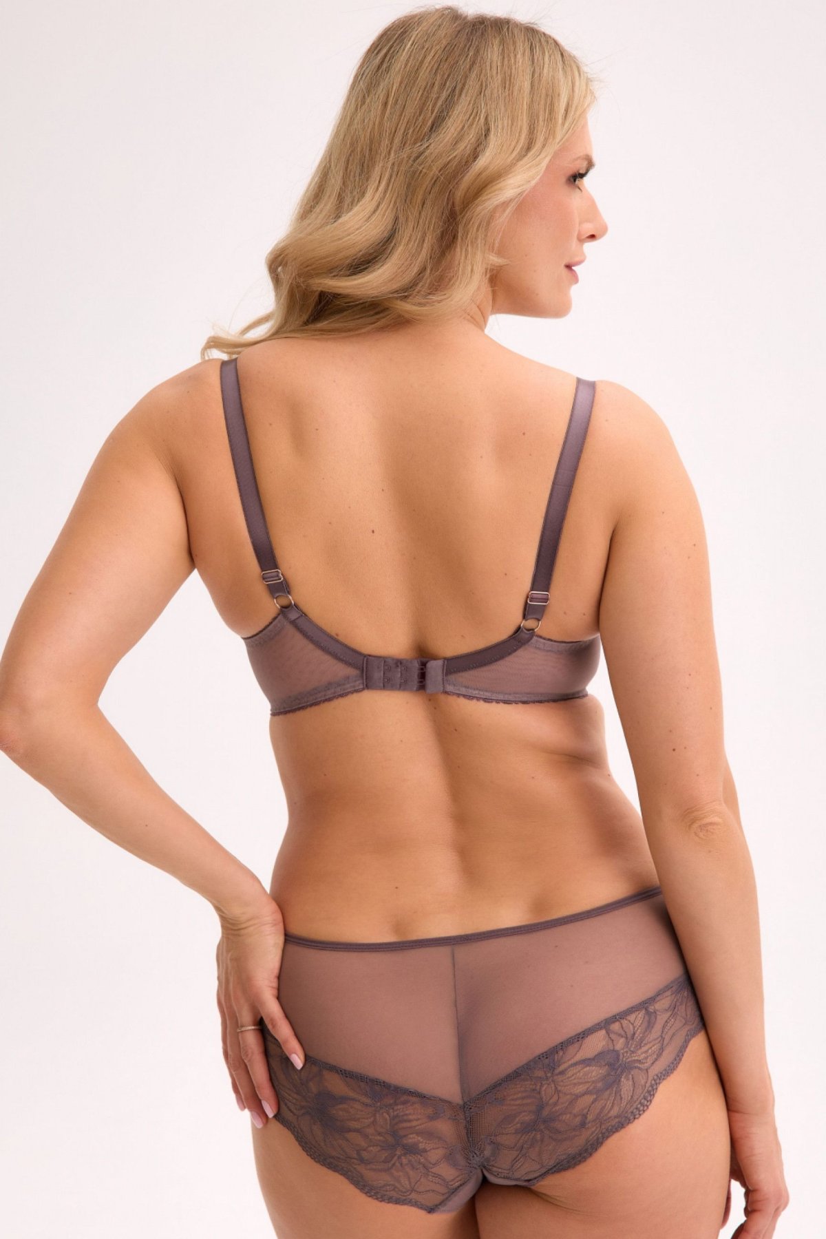 Kalhotky Kalina v romantickém fialovo-růžovém. Přední část je z jemné síťoviny s krajkovými vsadkami, které opticky zeštíhlují a dodávají modelu lehkost. Vnitřní bavlněná podšívka zaručuje příjemný pocit při nošení i pro citlivou pokožku. Zadní část je celokrajková, jemně průsvitná, což dodává prádlu svůdný charakter. Elastické lemy zajistí perfektní přizpůsobení bez nepříjemného zařezávání. Kalhotky Kalina tvoří ideální komplet s podprsenkou Kalina (1314) a jsou skvělou volbou pro ženy, které chtějí spojit komfort s decentní smyslností.