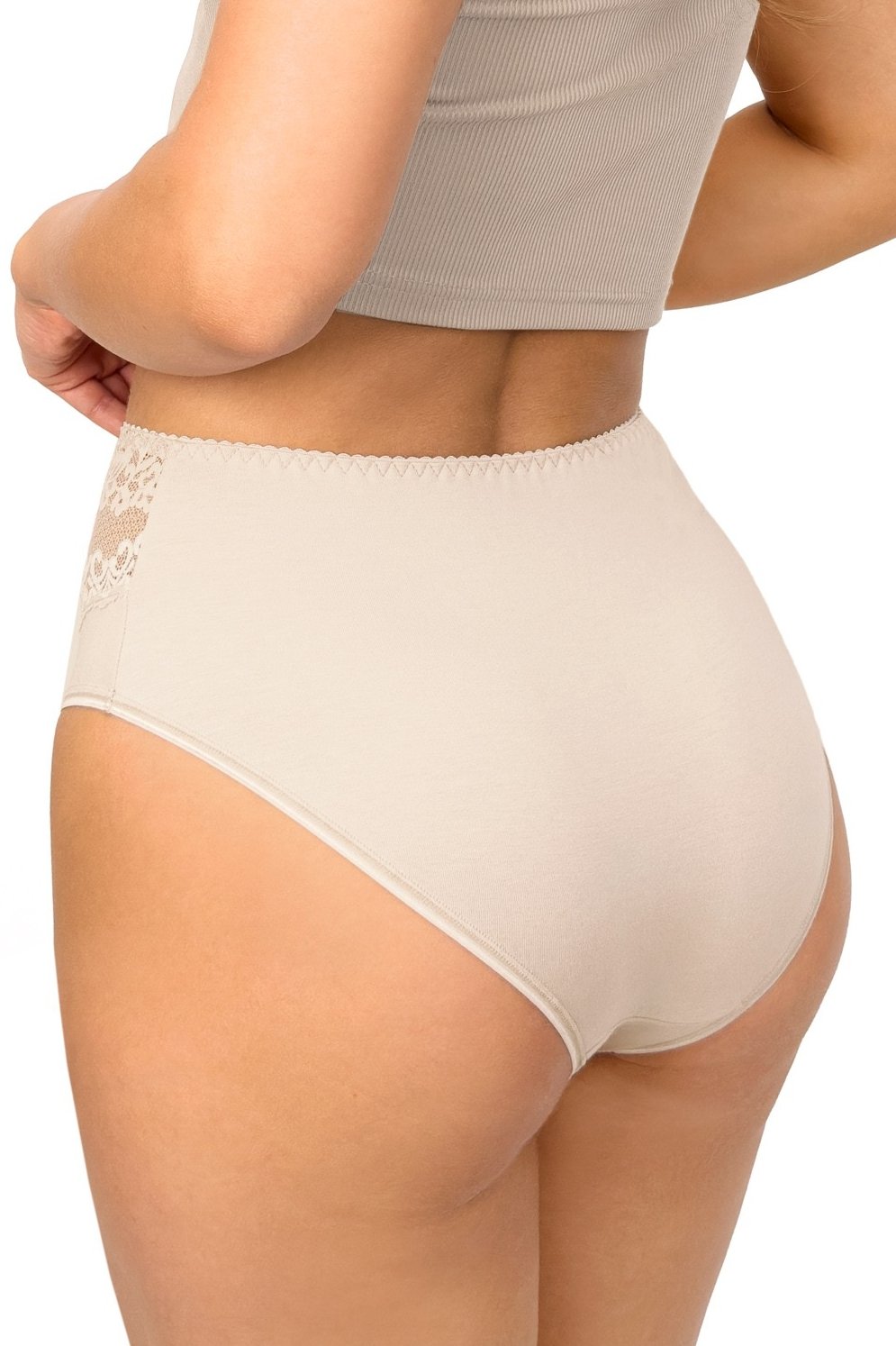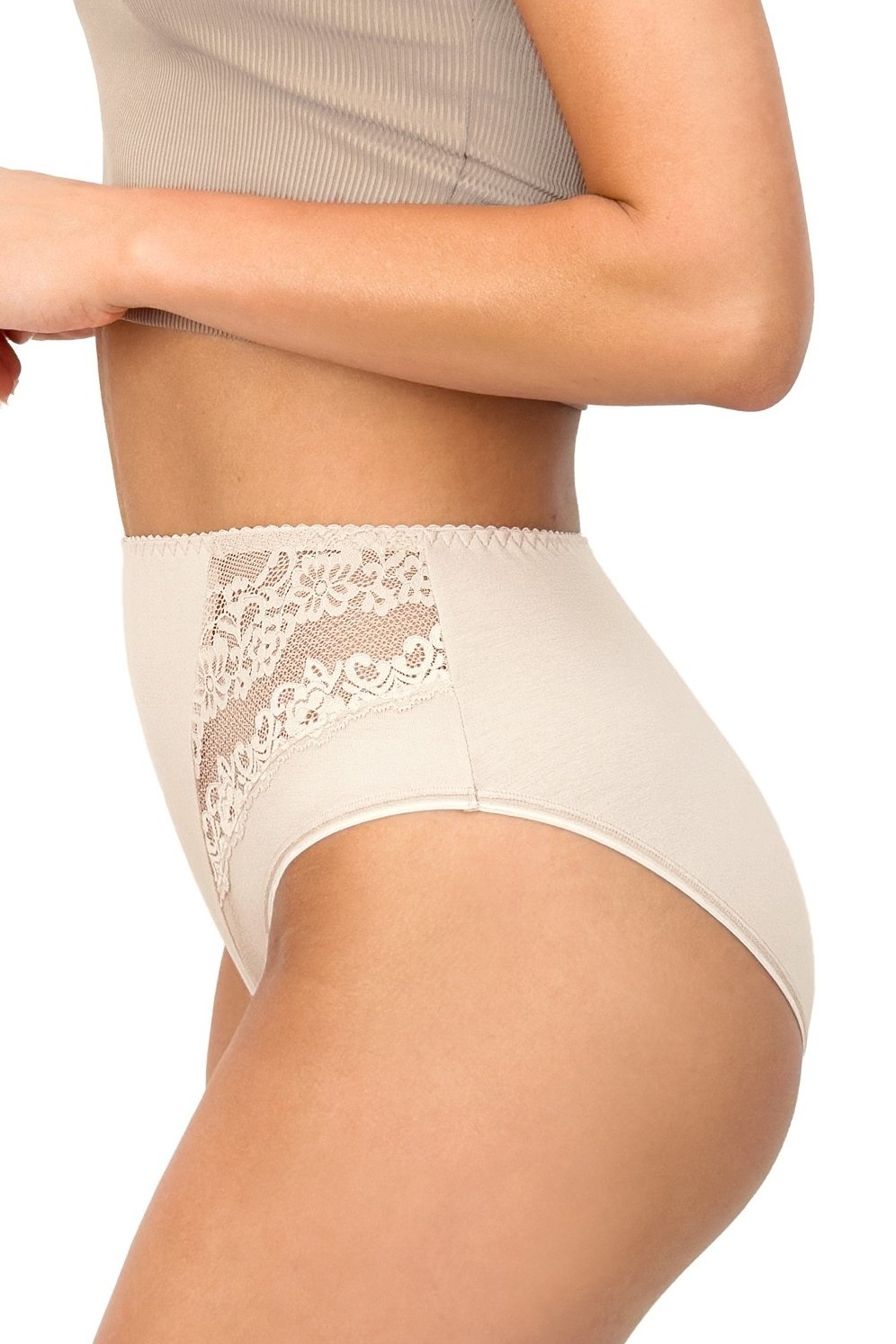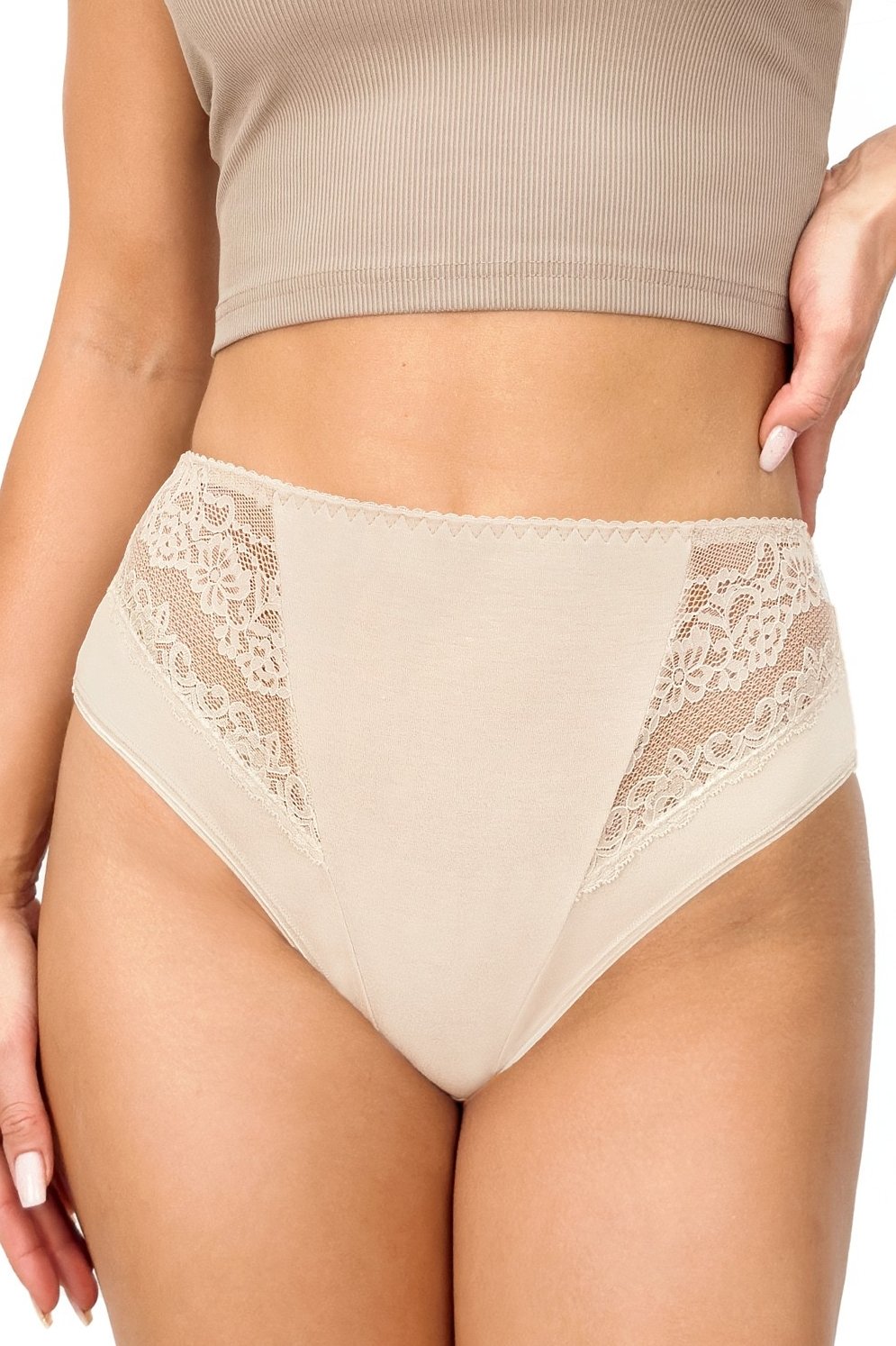 Dámské kalhotky Donna 213 s vysokým pasem jsou ideální pro ženy, které hledají kombinaci elegance, komfortu a jemně tvarujícího efektu. Měkká viskóza se příjemně přizpůsobí tělu, zatímco krajkové boky dodávají modelu ženský šarm a lehkost. Vysoký střih napomáhá jemně vyhladit linii bříška i boků, takže prádlo nejen skvěle sedí, ale také lichotí postavě.