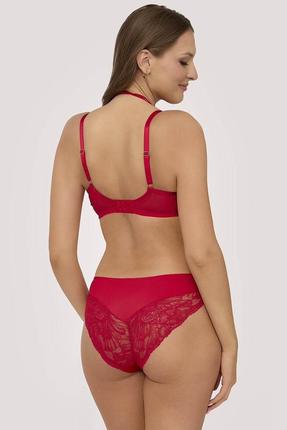 Kalhotky, jež spojují klasickou eleganci s výraznou smyslností. Celokrajkový design s průsvitnými detaily krásně zvýrazňuje ženské křivky, zatímco měkký materiál zajišťuje dokonalé pohodlí při nošení. V sytě červené barvě působí odvážně a přitom vkusně – ideální pro výjimečné chvíle i každodenní luxus. Samozřejmostí je bavlněný klínek.