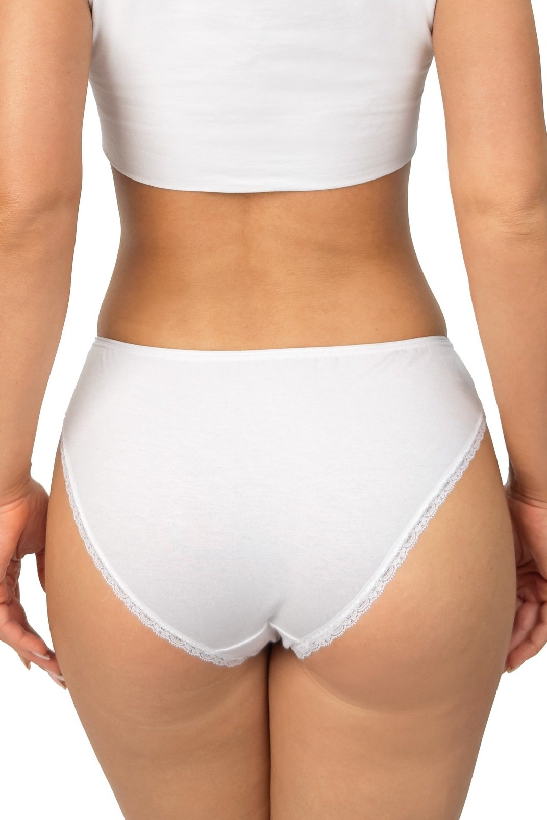 Bavlněné kalhotky Donna 218 spojují nadčasový komfort s jemnou ženskostí. Měkká a prodyšná bavlna zaručuje celodenní pohodlí, zatímco elegantní krajkové detaily dodávají prádlu romantický nádech. Středně vysoký pas a pečlivě zvolený střih krásně padnou a zajišťují přirozené pohodlí při každém pohybu.