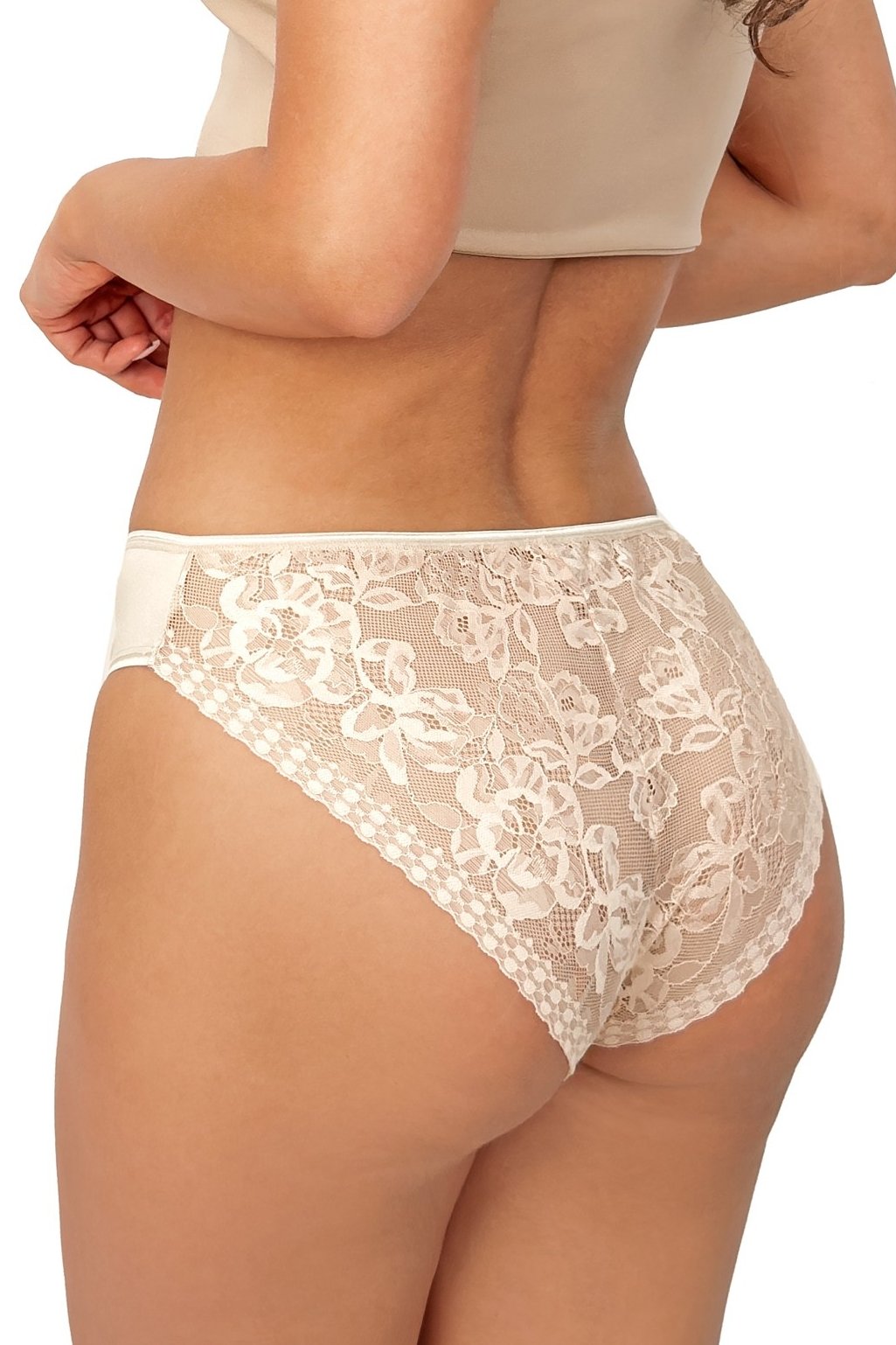 Dámské kalhotky Donna 233 spojují eleganci, pohodlí a smyslnost. Přední část z jemné, hladké viskózy zajistí příjemný pocit na pokožce, zatímco krajkový zadní díl dodá celku romantický a svůdný charakter. Střední výška pasu poskytuje optimální komfort, díky čemuž jsou tyto kalhotky ideální jak pro každodenní nošení, tak pro zvláštní příležitosti. Díky elastické krajce se perfektně přizpůsobí postavě a zvýrazní její přirozené křivky.