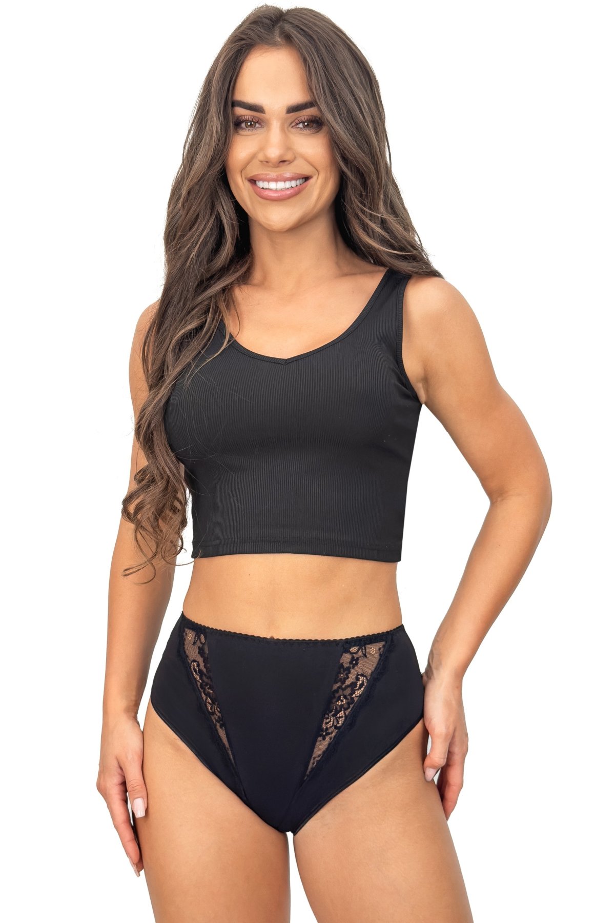 dámské kalhotky z jemné, pružné viskózy boky zdobené elegantní krajkou vysoký střih pro pohodlí a optické zeštíhlení…