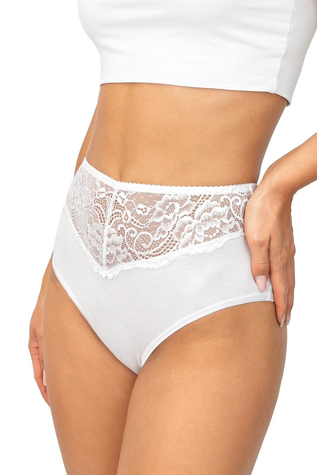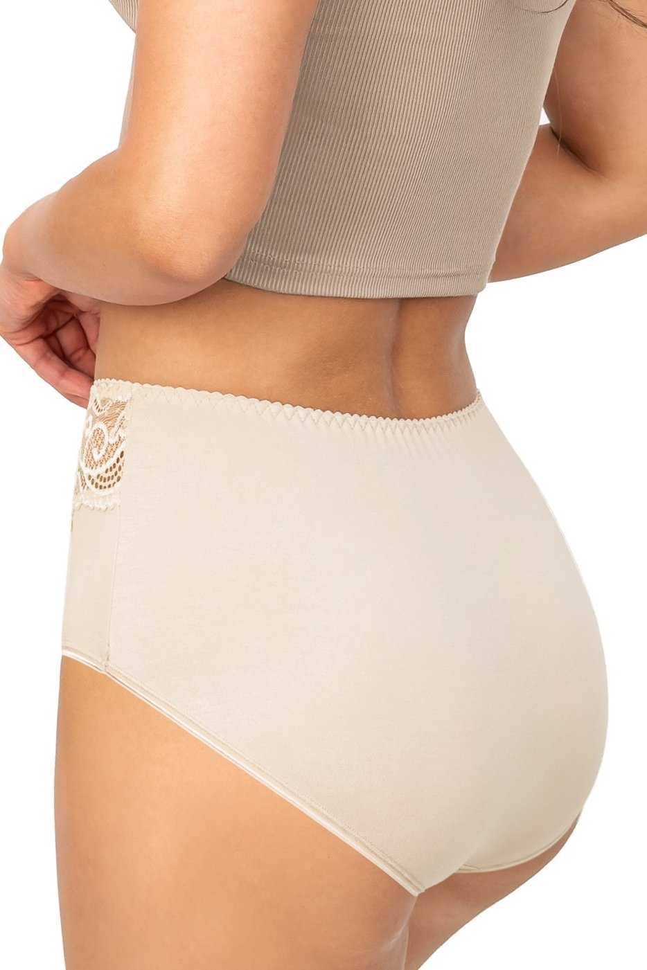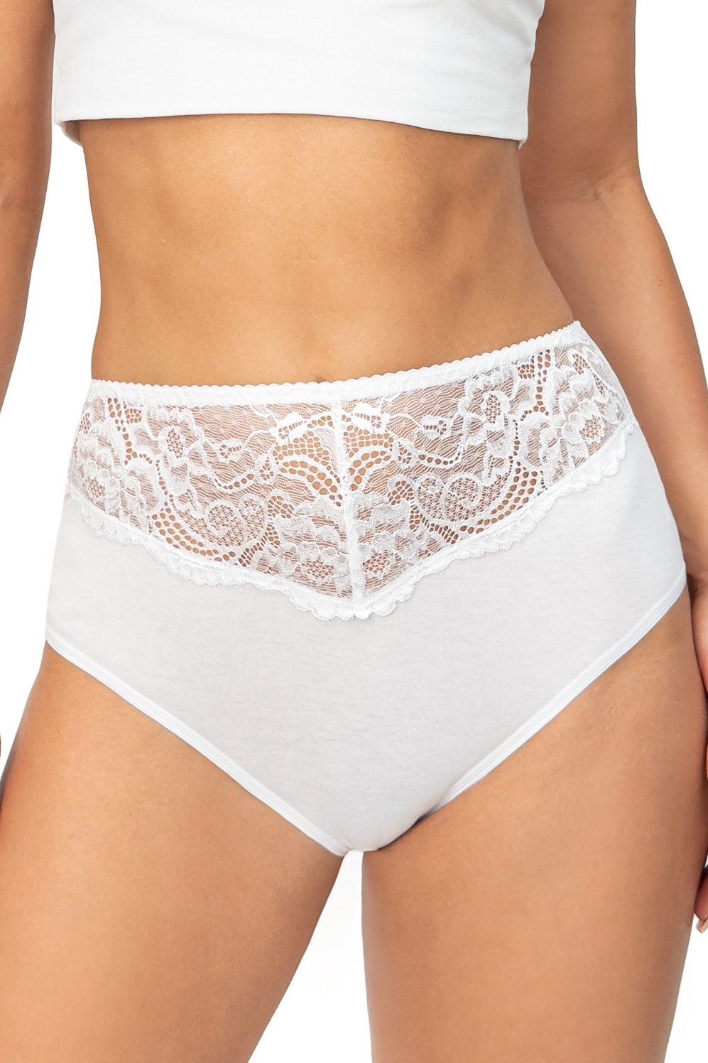 Dámské kalhotky Donna jsou ideální pro ženy, které si cení spojení komfortu a ženského stylu. Vyrobené z příjemné, prodyšné bavlny s příměsí elastanu, perfektně se přizpůsobí tělu a zachovávají si svůj tvar i po opakovaném praní. Vysoký pas je pohodlný, nabízí jemný stahující efekt v oblasti bříška. Přední část je ozdobena decentní krajkou, která dodává modelu elegantní nádech, zatímco zadní díl zůstává hladký a zcela zakrývá hýždě. Díky tenkým elastickým lemům se kalhotky nerýsují pod oblečením a jsou vhodné pro každodenní nošení i pod přiléhavé kousky.