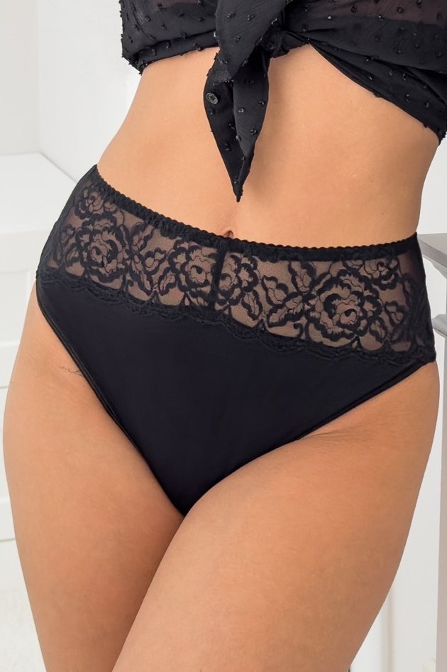 klasický střih s vysokým pasem vyrobené z jemné viskózy pro maximální pohodlí a prodyšnost boky ozdobené krajkou plně…
