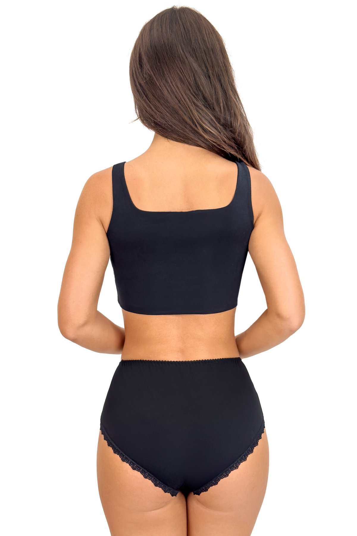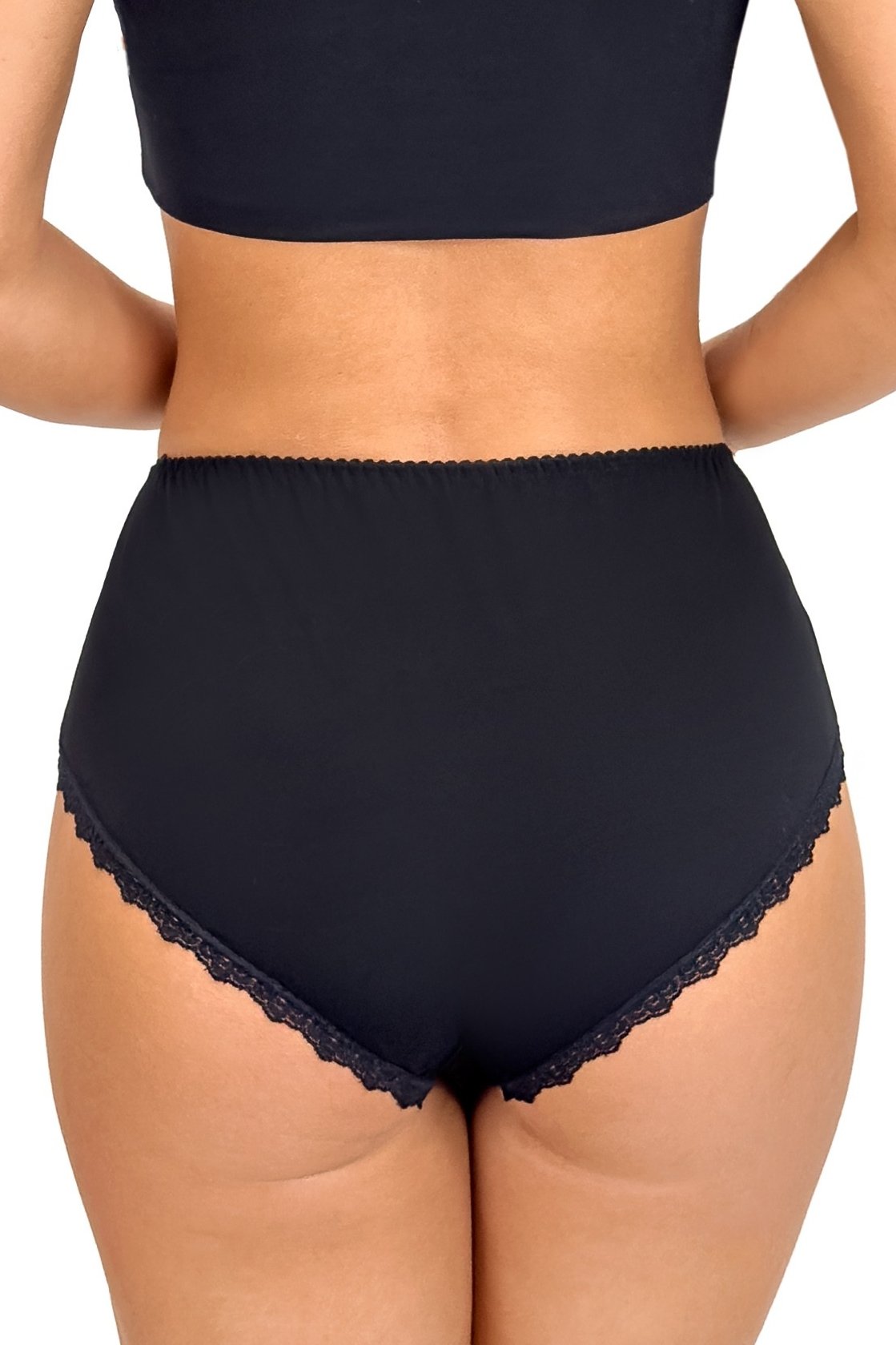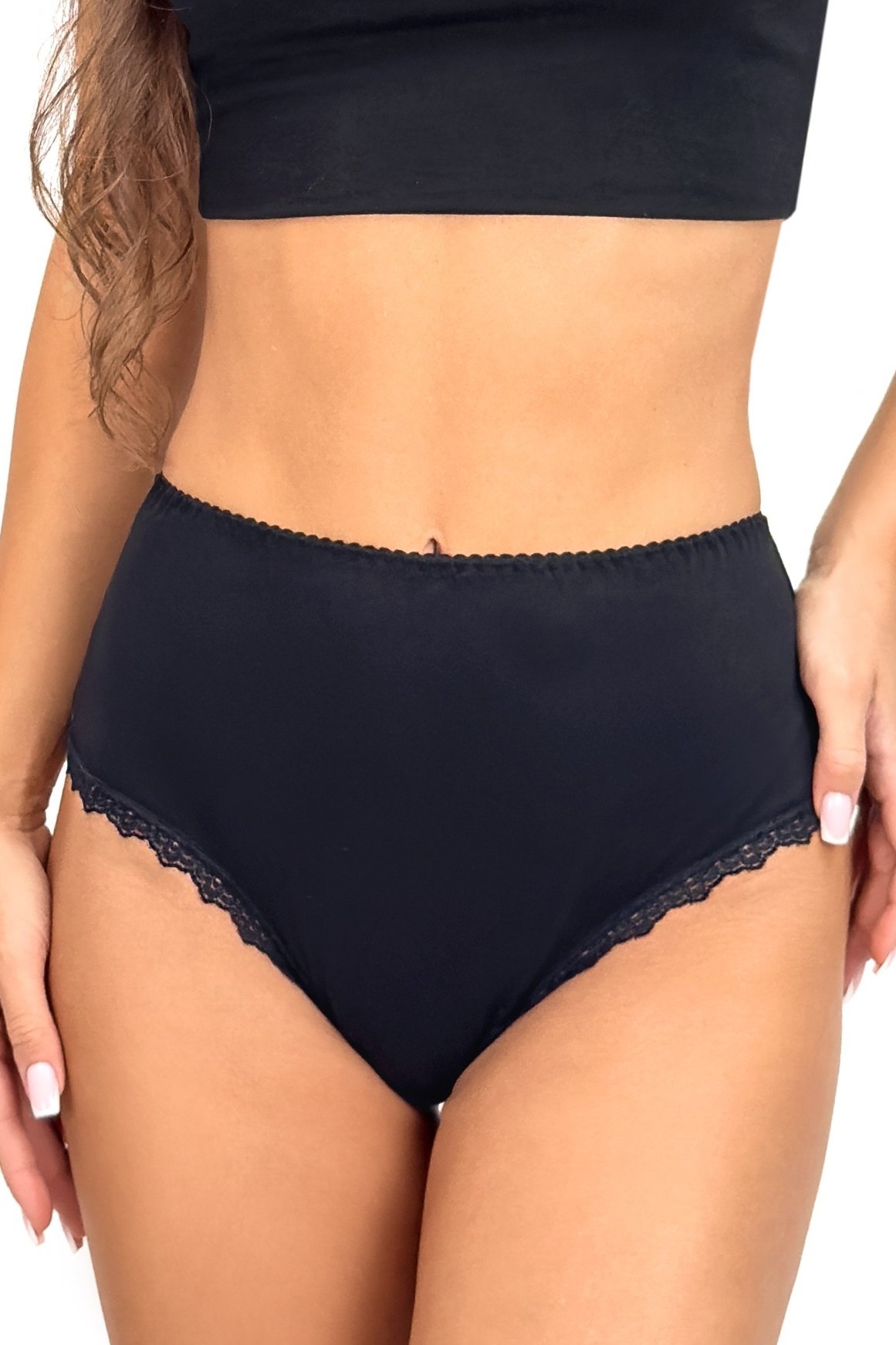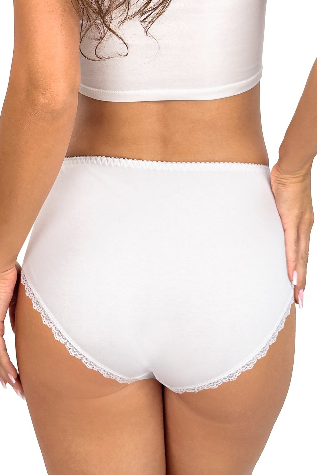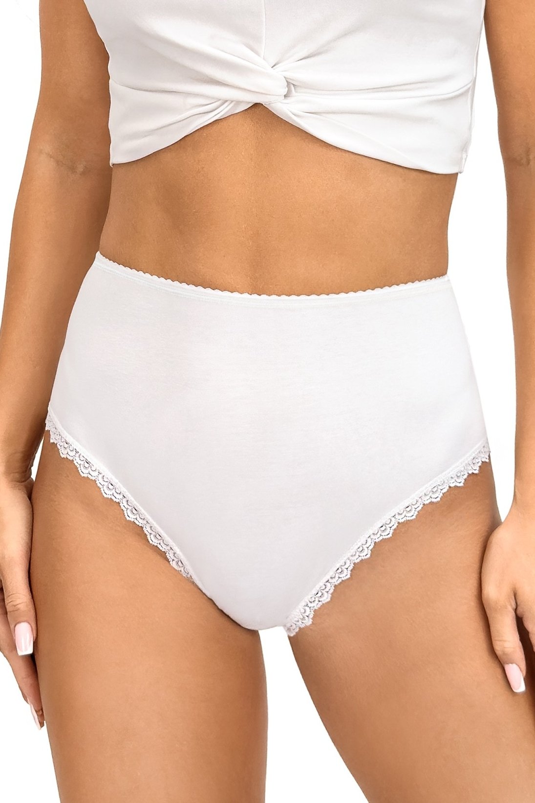 Dámské bavlněné kalhotky v klasickém střihu. Vyrobené z měkké, prodyšné bavlny s příměsí elastanu, skvěle se přizpůsobí postavě a zajistí celodenní komfort. Vyšší pas opticky zeštíhlí siluetu a zaručí dokonalé padnutí. Jemná krajka na bocích dodává modelu ženský a decentní akcent, zatímco hladké provedení se postará, že kalhotky zůstanou neviditelné pod oblečením.