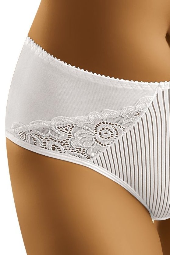 Tyto dámské kalhotky ocení každá žena, která má ráda bavlnu a chce se cítit pohodlně po celý den. Lehce vyšší střih hezky sedí, poskytne více jistoty v pase a přitom nepůsobí „těžce“. Žebrovaná pletenina dodává modelu moderní vzhled a zároveň zůstává příjemně měkká a prodyšná. Boky zdobí jemná krajka, která kalhotkám přidá elegantní, ženský akcent a opticky zjemní siluetu. Díky elastanu se prádlo dobře přizpůsobí postavě a drží tvar i při častém nošení.