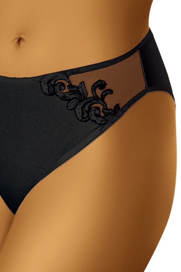 Klasický, ženský střih s ažurovým zdobením na bocích