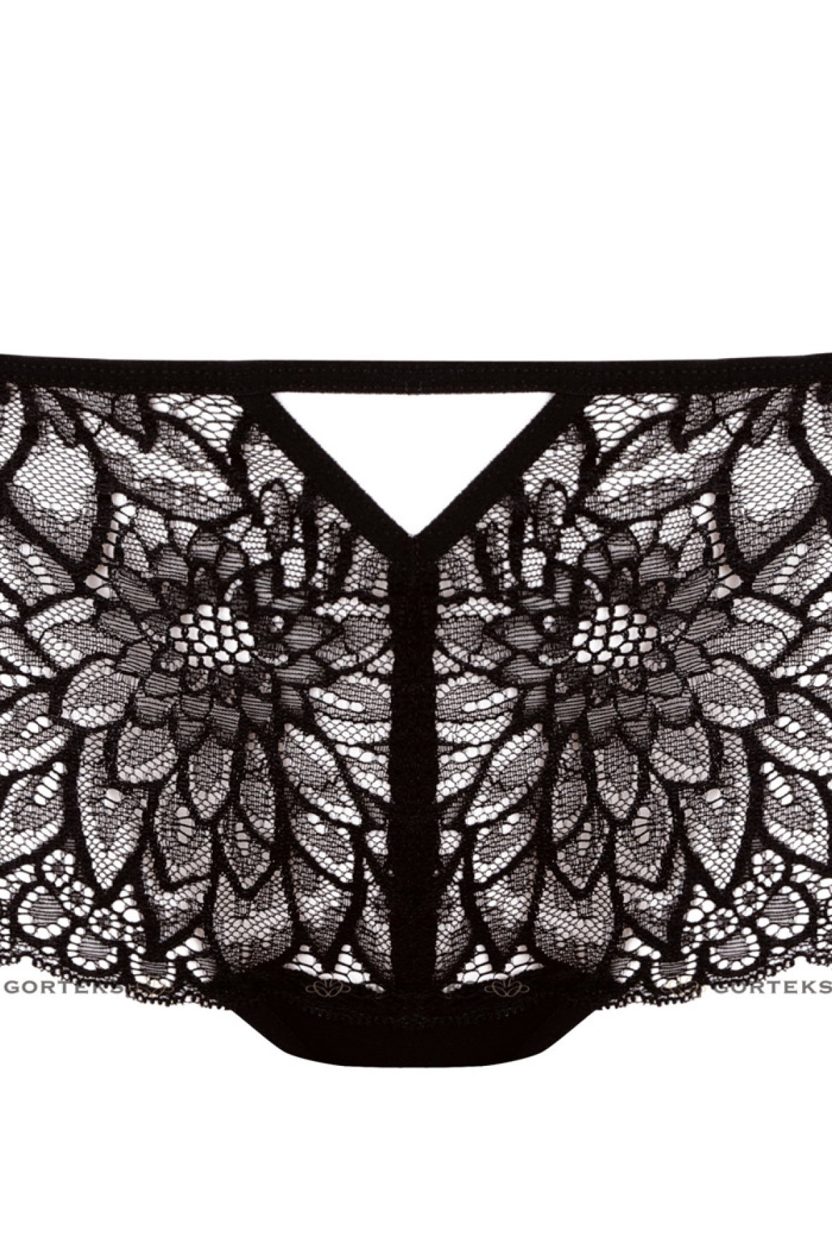 Krásné krajkové kraťásky.Černý skvost, který zahalí vaše křivky a přitom je nechá lehce vykukovat pod průsvitnou strukturou krajky.