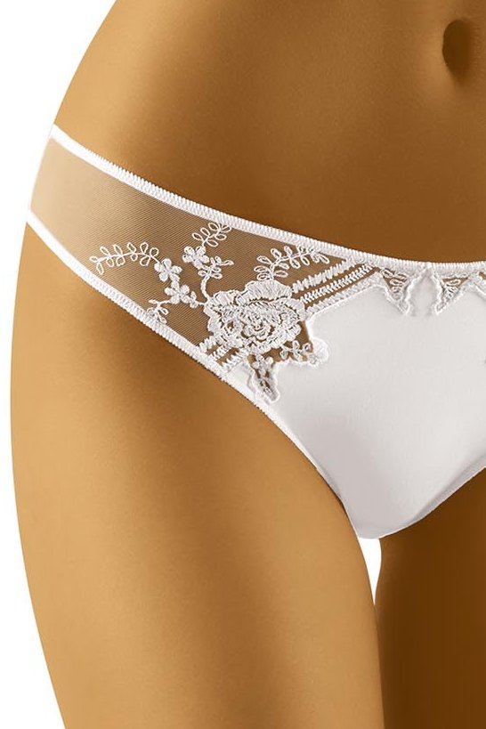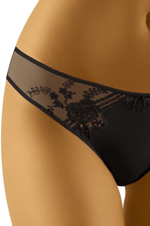 Tyto nízké dámské kalhotky Wol-bar vynikají krásným krajkovým zdobením na bocích, které v kombinaci s průsvitným tylem působí jemně, ale zároveň velmi přitažlivě. Tyl vytváří lákavý efekt odhalení a zjevně zvýrazní linii boků, takže prádlo na postavě vypadá opravdu zgrabně. Pružný materiál se dobře přizpůsobí tělu, pohodlně sedí a zůstává příjemný na nošení během dne i večer. Skvělá volba, když chcete nízký střih s výrazným, ženským detailem, který dodá sebevědomí i pod obyčejné džíny.