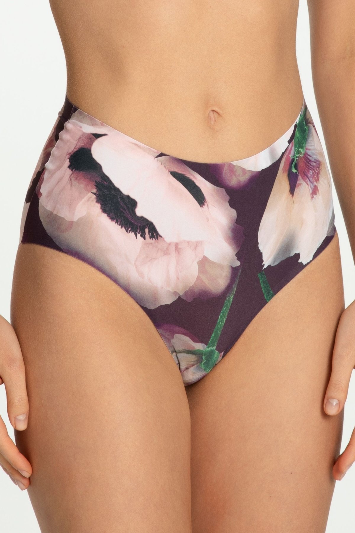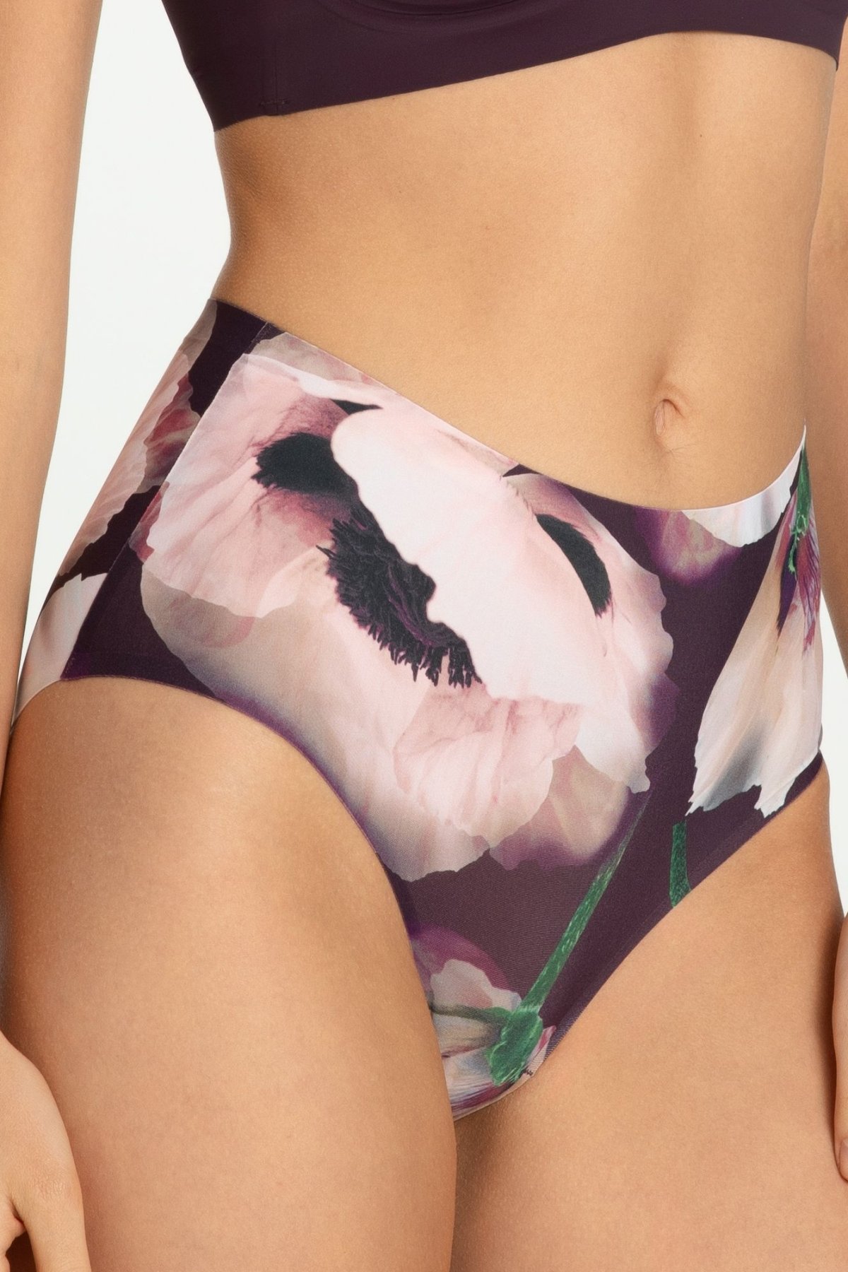 Dámské kalhotky Velvet Bloom s vyšším pasem jsou ztělesněním ženskosti a pohodlí. Vyšší střih příjemně obepíná pas a dodává pocit jistoty i elegance, originální květinový vzor působí jako jemná akvarelová malba. Kombinace tónů růžové, fialové a zelené vytváří harmonický, romantický efekt. Materiál je mimořádně měkký, hebký na dotek a perfektně se přizpůsobuje postavě, čímž zajišťuje maximální komfort při každodenním nošení.