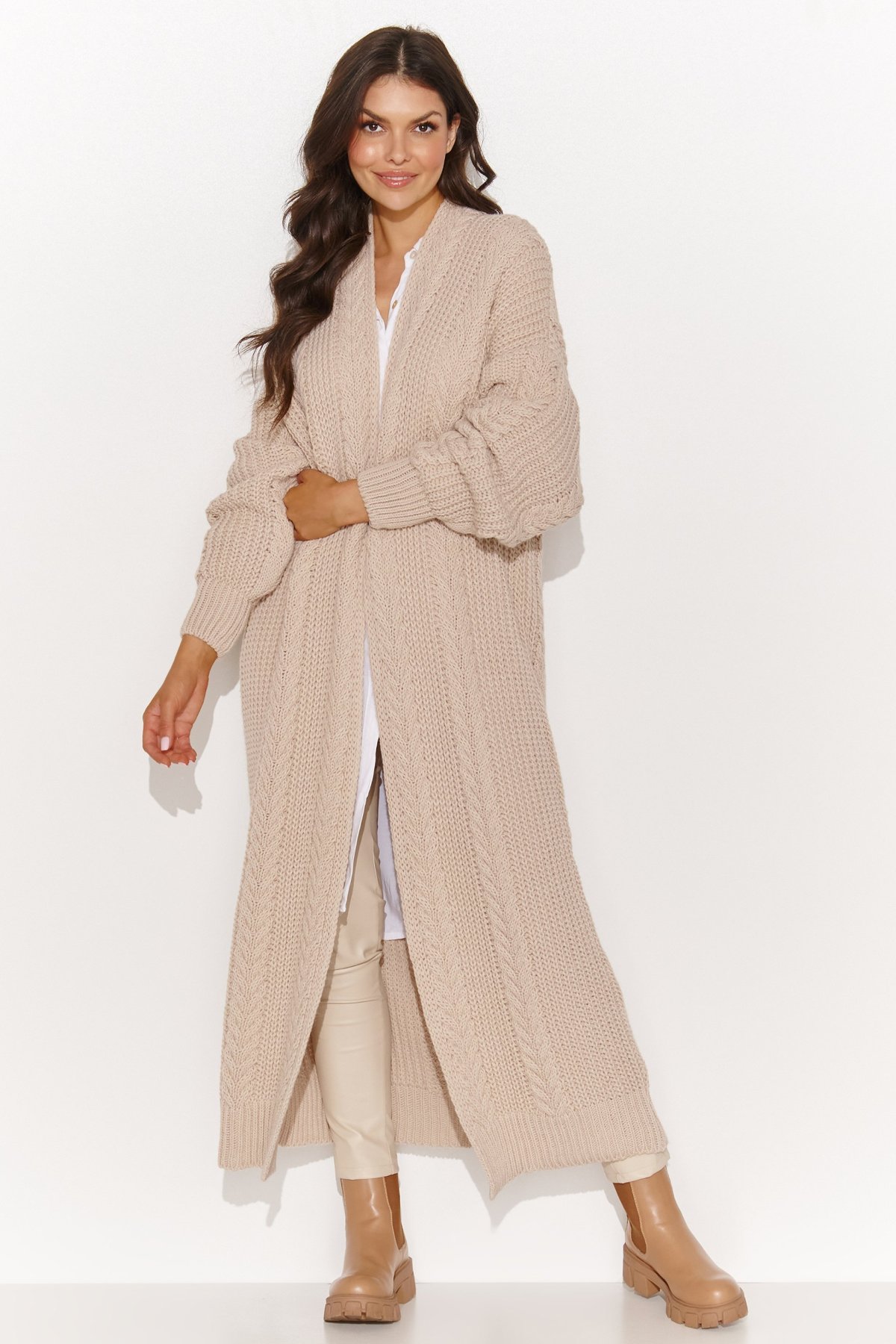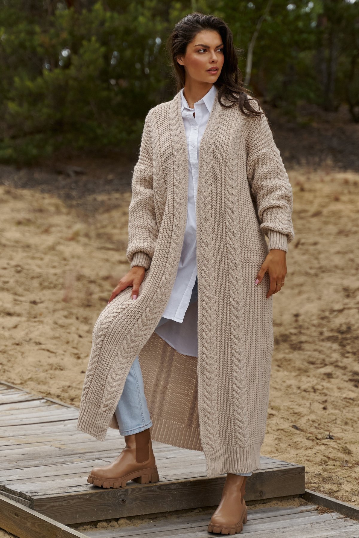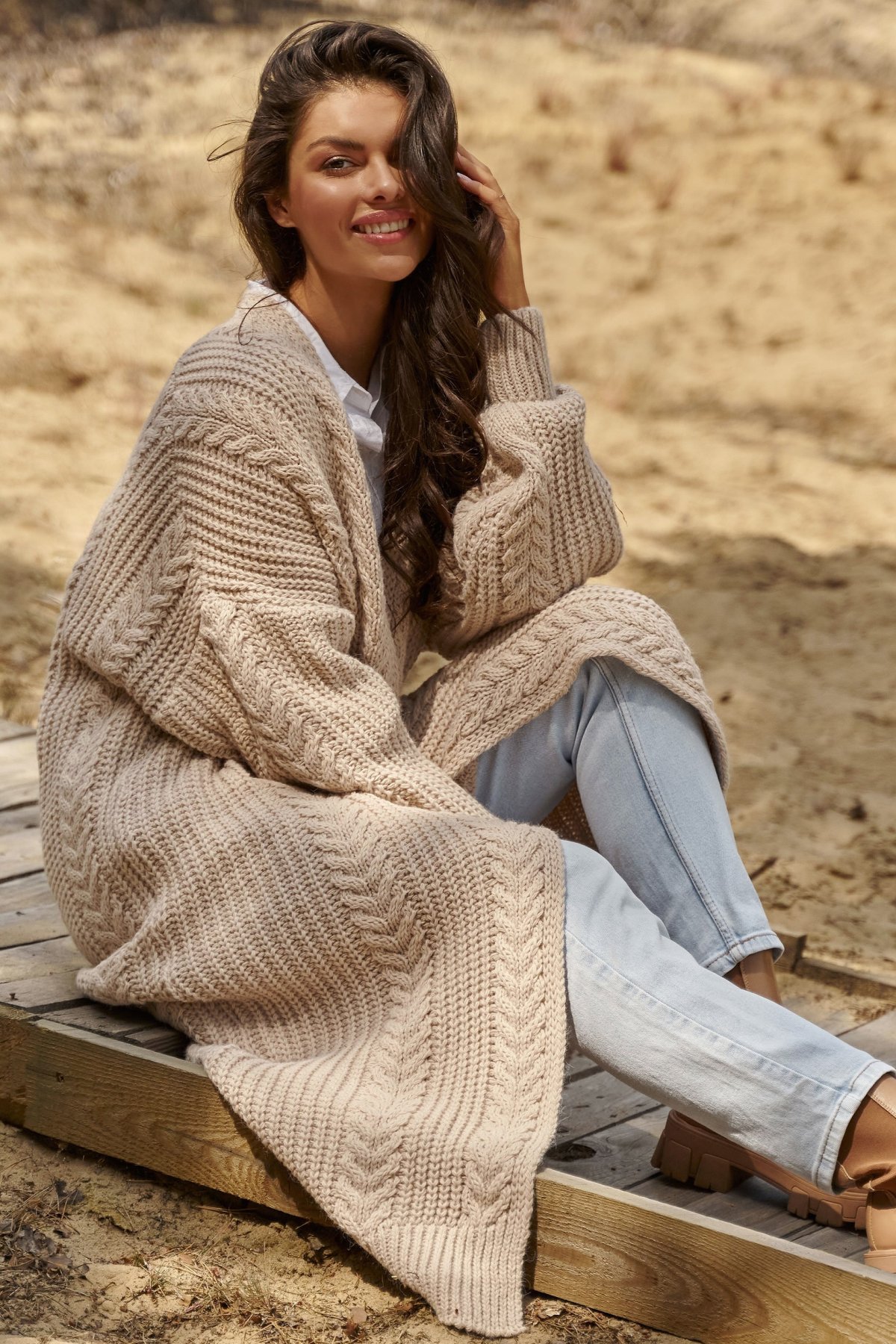Tento dlouhý dámský svetr typu kardigan je absolutní nezbytností pro chladnější dny. Jeho otevřený střih a široké rukávy zakončené pružnými manžetami zajišťují pohodlí a volnost pohybu. Jemný copánkový vzor mu dodává šarm a jedinečnost, díky čemuž je ideální volbou pro ženy, které ocení originální a elegantní detaily. Bezpochyby se stane vaším oblíbeným kouskem šatníku pro chladnější dny. Svetr je k dispozici v několika atraktivních barvách. Zkombinujte jej s jeansy a kozačkami a vytvořte si ležérní, ale stylový look pro každý den. Můžete jej také zkombinovat s elegantními kalhotami a lodičkami pro formálnější příležitosti. Ať už ho budete nosit jakkoli, určitě si ho zamilujete!