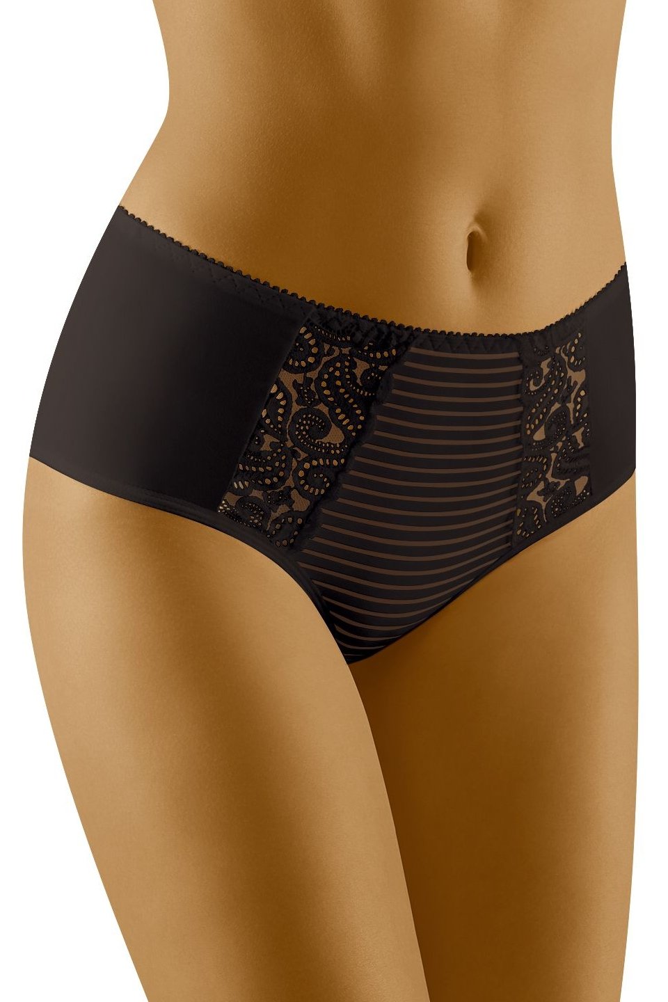 Tyto dámské kalhotky ve střihu midi jemně modelují siluetu a zároveň zůstávají příjemné na každodenní nošení. Klasická linie se snadno přizpůsobí postavě a poskytne komfortní krytí, které oceníte pod šaty i pod kalhoty. Přední část působí velmi stylově díky kombinaci dekorativní krajky a jemné síťované tkaniny – detail, který prádlu dodá ženskost bez přehánění. Wol-bar je sázka na vysokou kvalitu materiálů i zpracování, takže se můžete spolehnout na pěkný vzhled a dobré usazení po celý den.