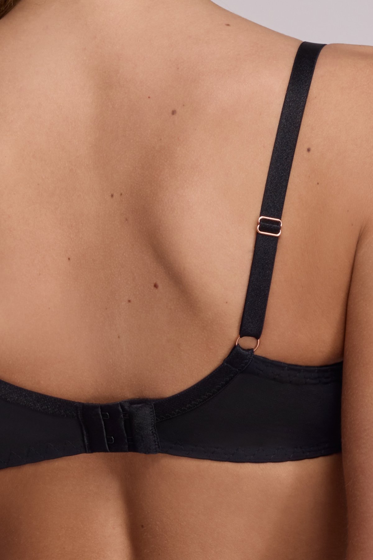 Měkké košíčky z jemné krajky krásně přiléhají k tělu, působí mimořádně žensky. Díky transparentnímu podšití poskytuje podprsenka stabilitu a dodatečné zpevnění, aniž by ztratila svou lehkost. Střed zdobí nenápadný bižuterní komponent. Konstrukce je navržena tak, aby dokonale podepřela i plnější poprsí a dodala mu přirozený, kulatý tvar. Široká, pevná ramínka jsou nastavitelná, neodnímatelná. Obvod bez bočních výztuh zapnete pomocí klasických háčků.