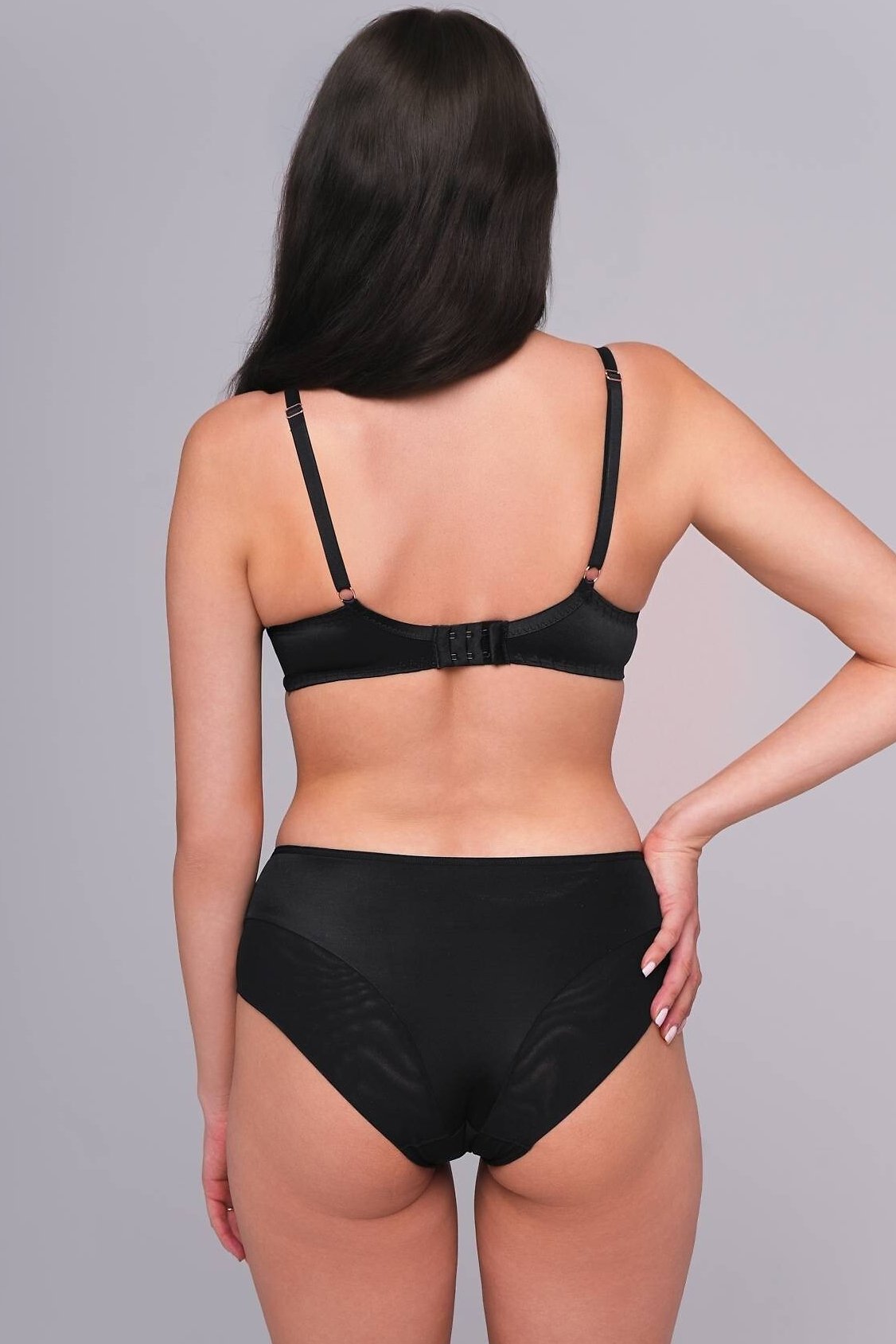 Nevyztužená kráska, která je doslova symbolem elegance a ženskosti. Kombinuje černou krajku s kontrastní béžovou síťovinou, která vytváří efektní, ale stále decentní vzhled. Měkké košíčky poskytují dokonalé přizpůsobení tvaru poprsí a přirozenou oporu bez nadměrného zpevnění. Střed hezky přiléhá, zdobí ho drobný kovový komponent. Ramínka jsou snadno nastavitelná, neodnímatelná. Obvod z hladkého mikrovlákna nemá boční výztuhy, dokonale se přizpůsobí pohybům těla.