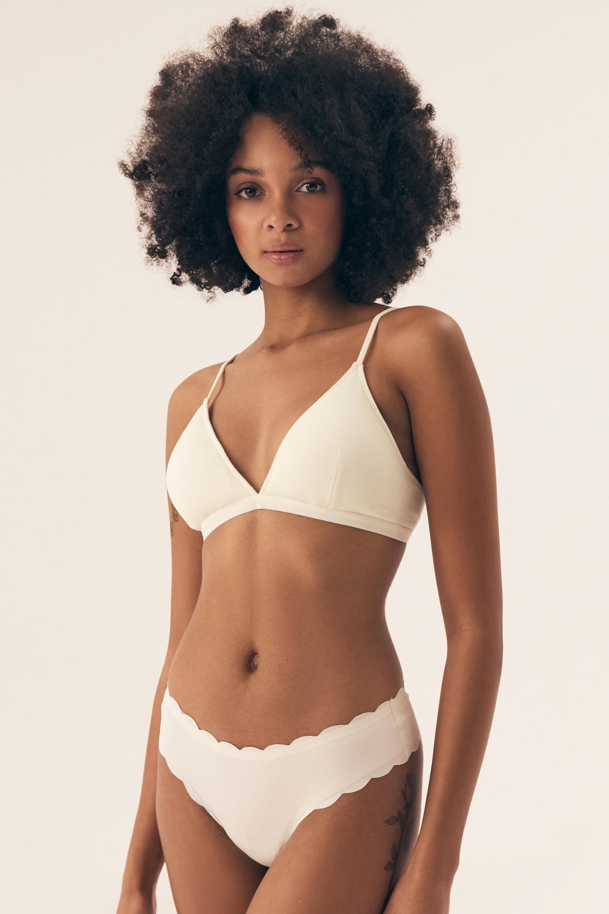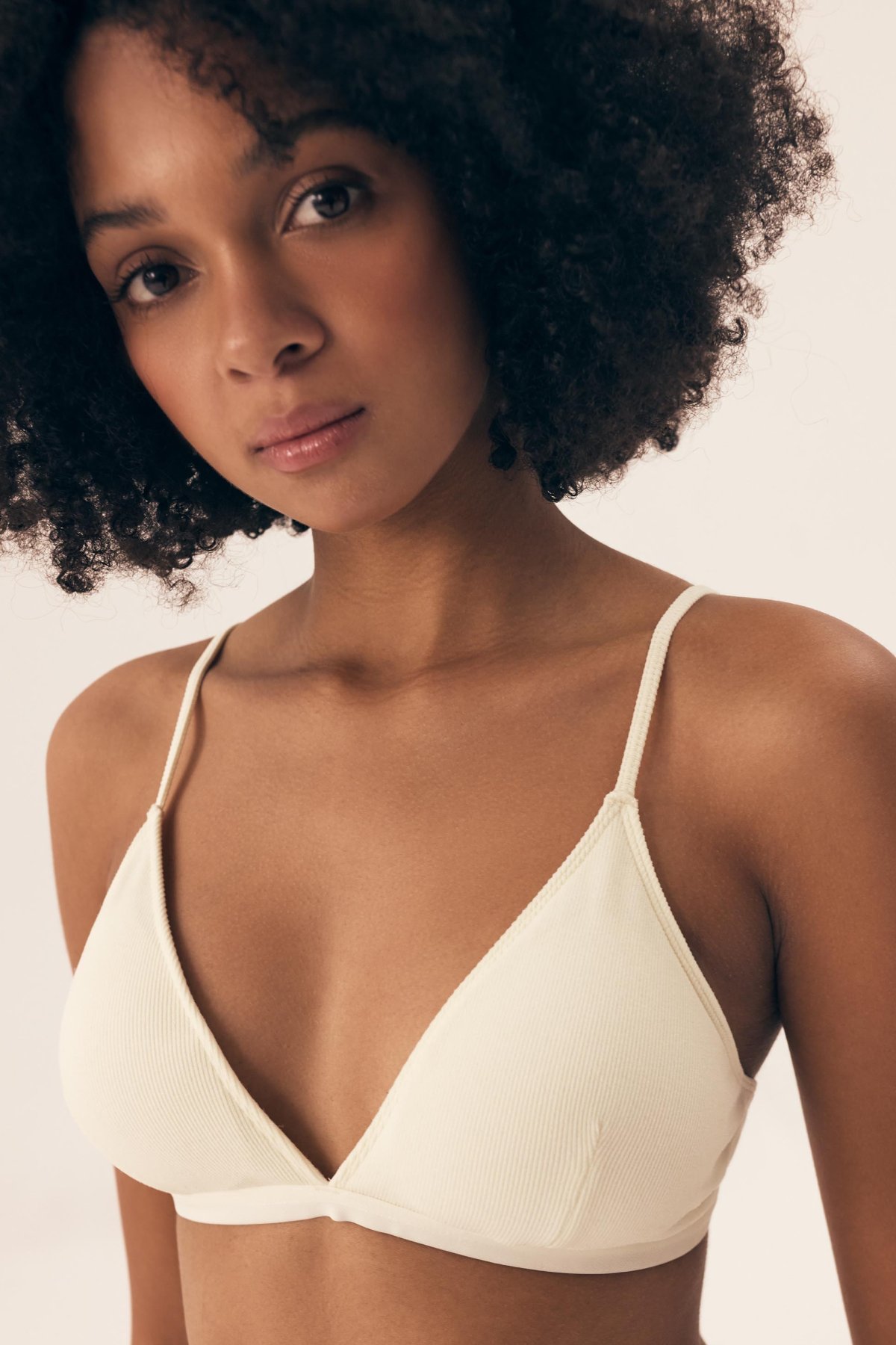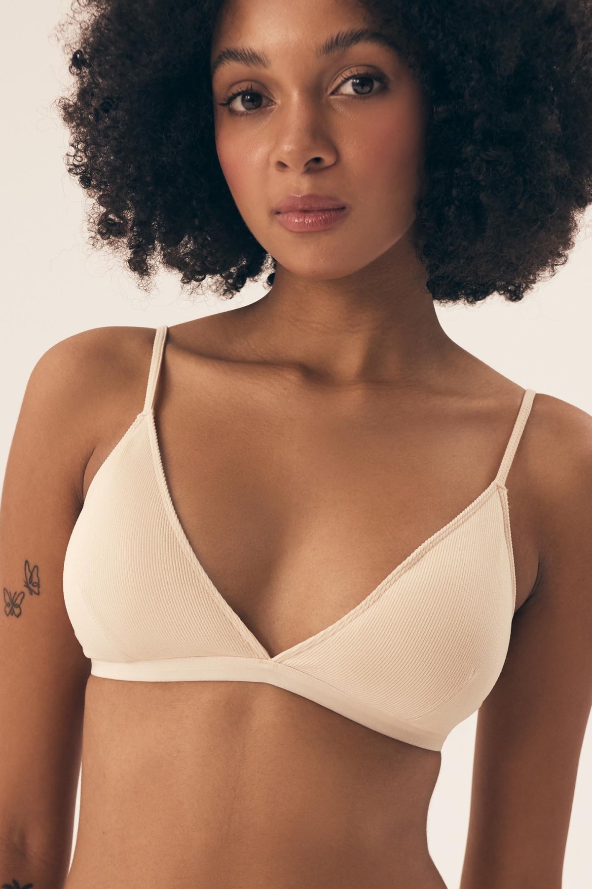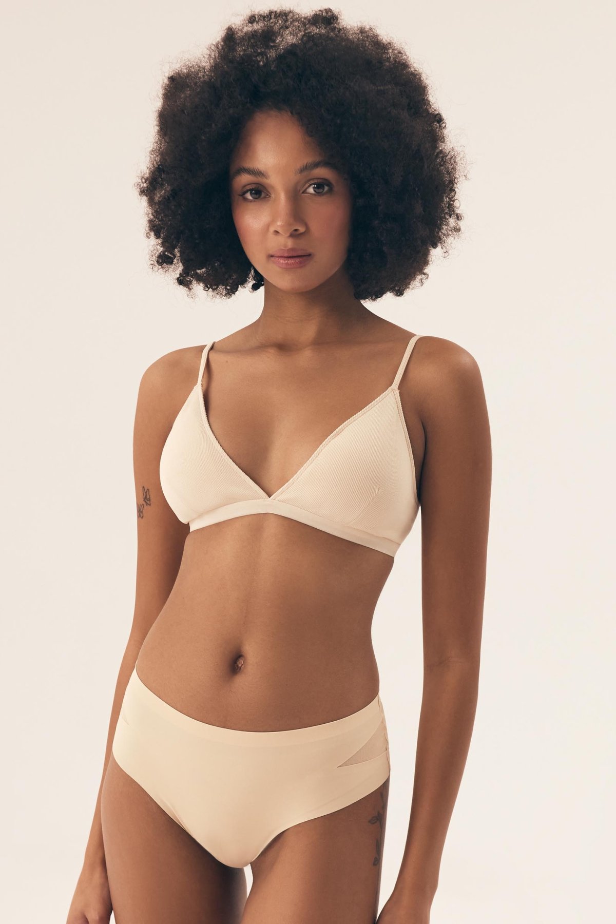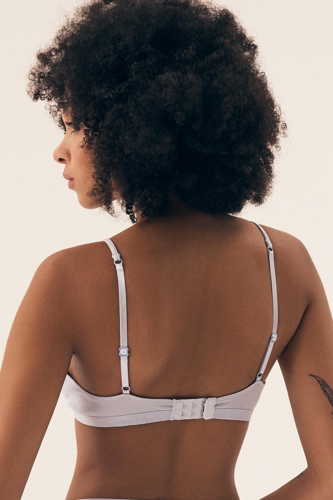 Braletka Nashwa je lehká, pohodlná a přirozeně kopíruje tvar prsou. Měkké košíčky bez vyztužení a bez kostic poskytují volnost pohybu a příjemný pocit při nošení. Nižší střed mezi košíčky působí jemně a nenápadně, díky čemuž se model hodí pod hlubší výstřihy i lehké topy. Žebrovaný materiál dodává podprsence moderní vzhled a zajímavou strukturu, přičemž zůstává pružný a příjemný na těle. Ramínka jsou pevně přišitá a lze je délkově upravit podle potřeby. Zadní zapínání na háčky umožňuje nastavení obvodu pro pohodlné a stabilní usazení.