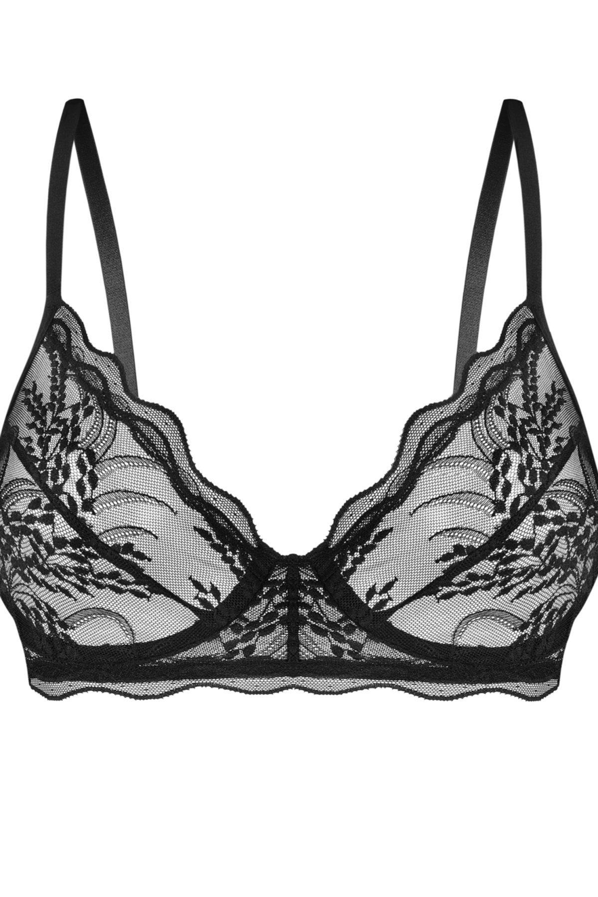 Černá podprsenka z jemného meshe s bohatou krajkovou výšivkou