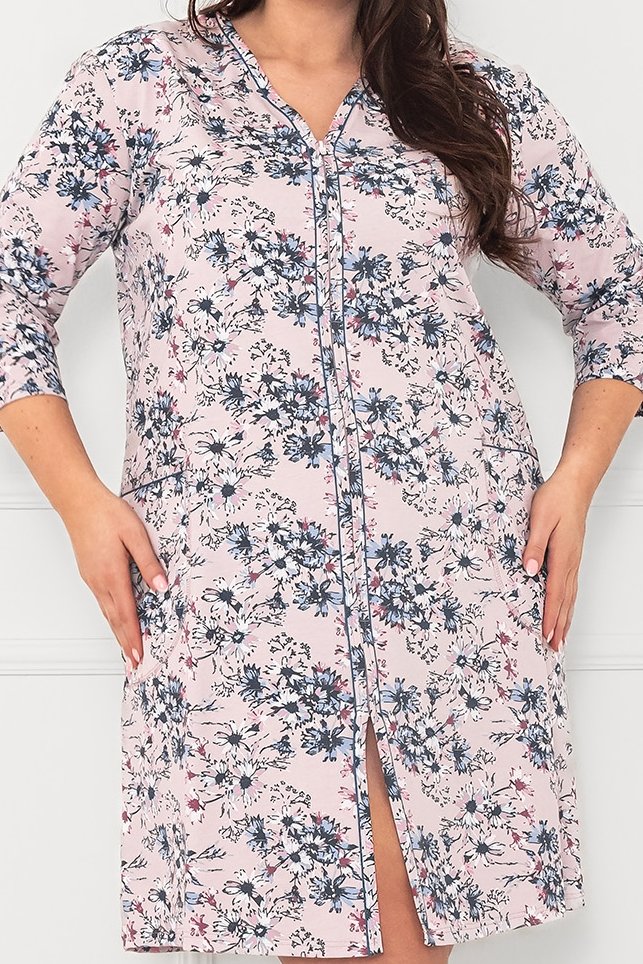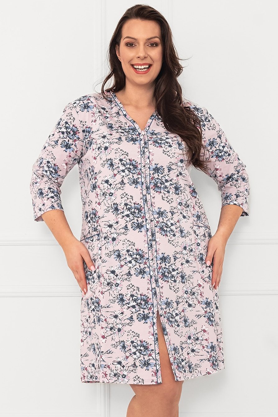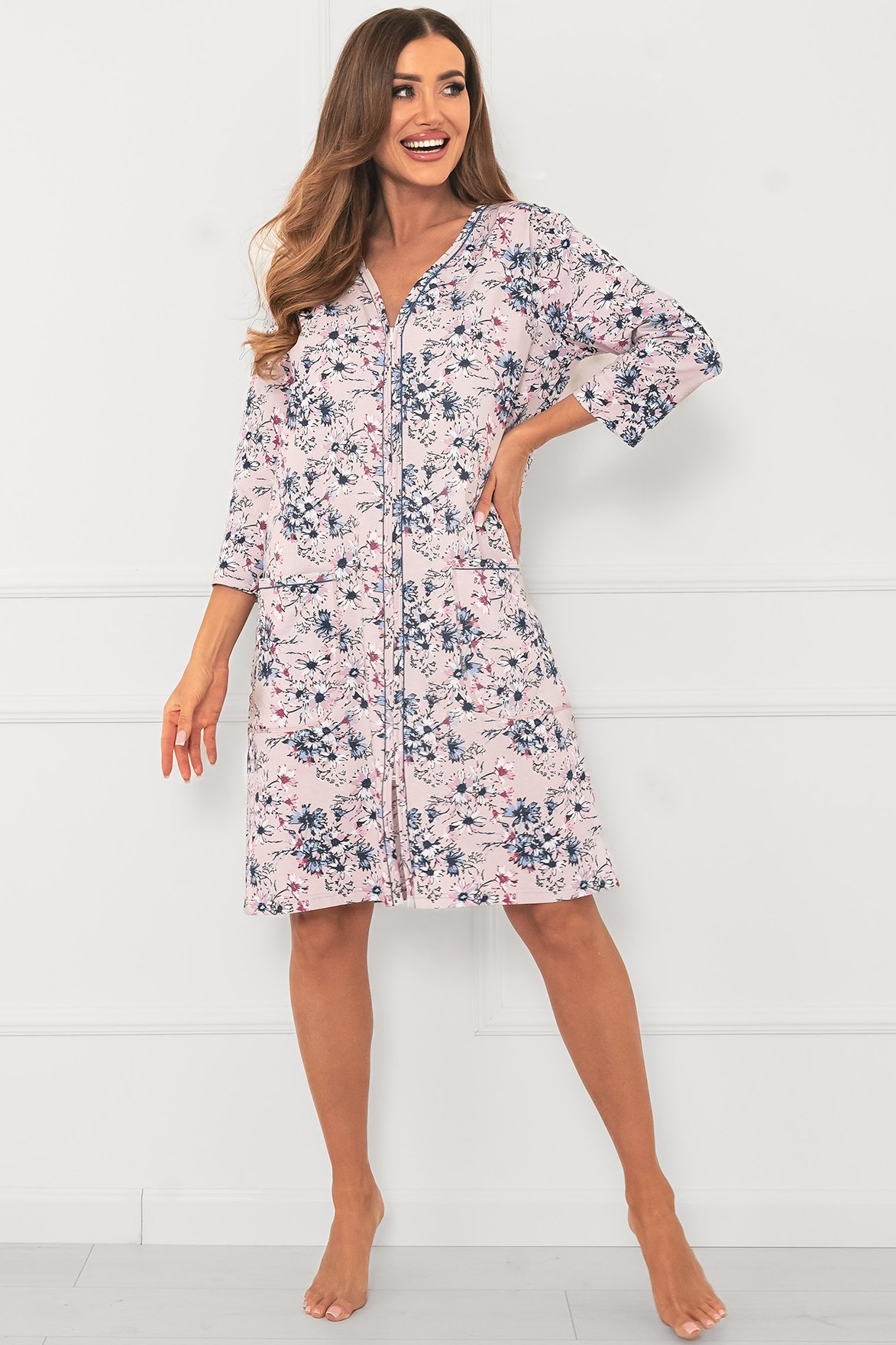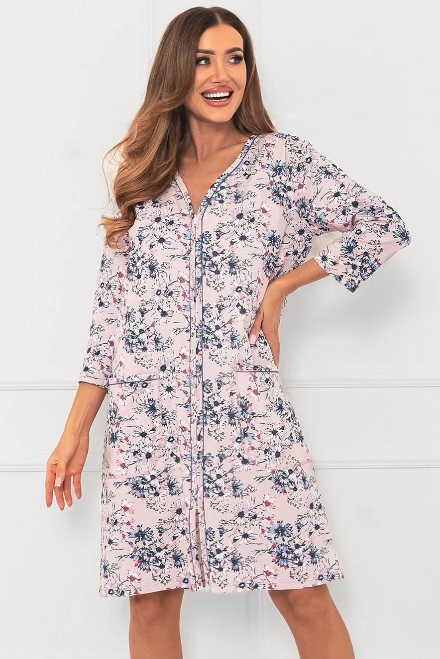 Květinový vzor v jemných pastelových odstínech dodává modelu svěží a ženský vzhled. Praktické zapínání na zip usnadňuje oblékání, výstřih do tvaru písmene „V“ s kontrastní lemovkou podtrhuje elegantní charakter. Rukávy ve 3/4 délce poskytují komfort v každém ročním období a kapsy vpředu zvyšují praktičnost. Díky délce ke kolenům je tento model pohodlný a neomezuje v pohybu.