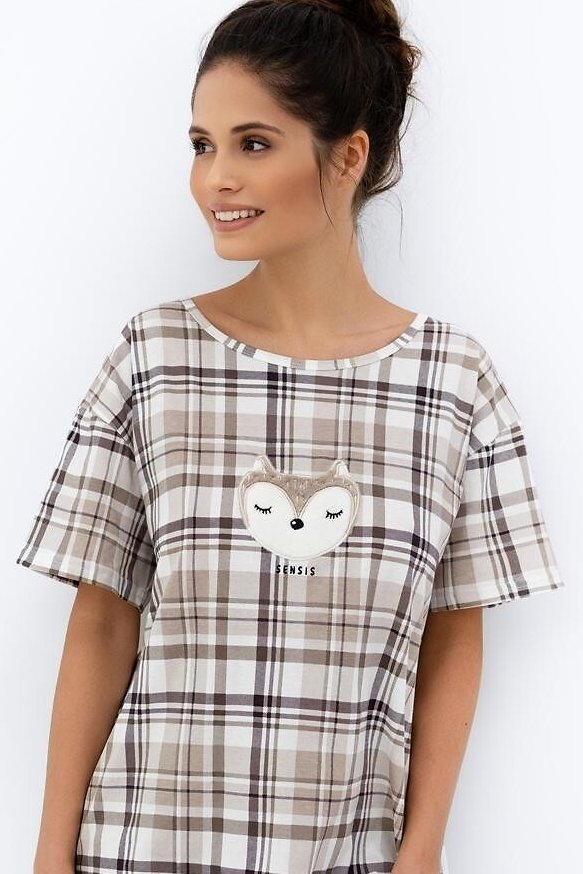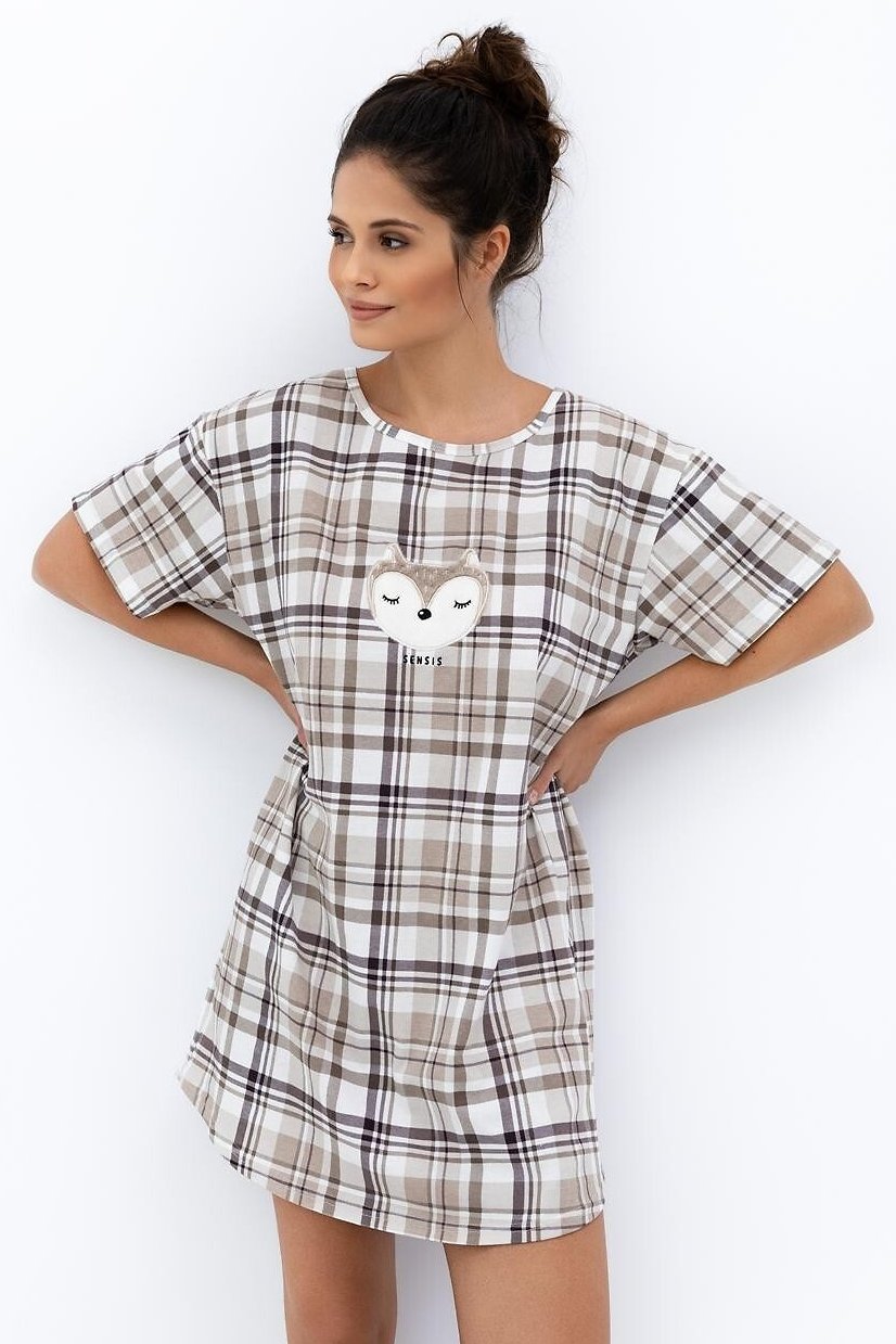 Dámská noční košile Adley je dokonalým spojením pohodlí a ležérní elegance. Vyrobená z měkké bavlny s nadčasovým kostkovaným vzorem. Krátké rukávy a klasický kulatý výstřih dodávají košili ležérní charakter, jemná aplikace na hrudi působí romanticky a ženským dojmem. Volný střih neomezuje pohyb a zaručuje komfort po celou noc. Adley je ideální pro ženy, které hledají kombinaci kvality, přirozené krásy a útulného stylu.