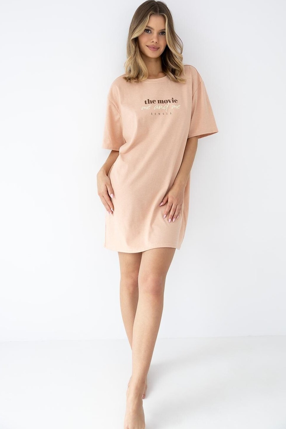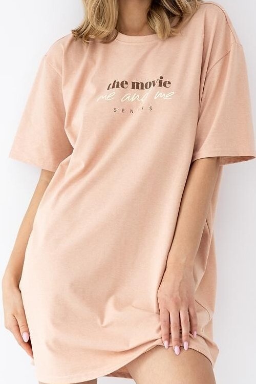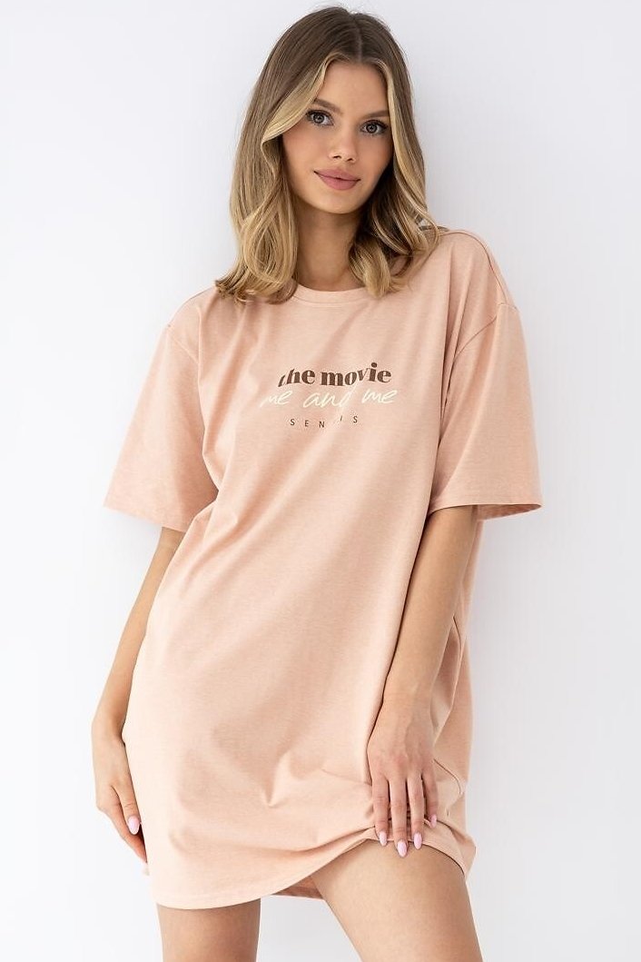 Dámská noční košile Anika zaujme svým minimalistickým stylem a výjimečným komfortem. Vyrobená z měkké, příjemné látky, která kombinuje přírodní bavlnu s elastickými vlákny, zaručuje pohodlí při spánku i domácím odpočinku. Krátké rukávy a kulatý výstřih dodávají modelu lehkost, decentní grafika na přední straně působí hravě a ženským dojmem. Díky univerzální velikosti se košile pohodlně přizpůsobí postavě a poskytne volnost pohybu. Stylová, měkká a praktická — ideální pro ženy, které chtějí spojit jednoduchost s moderní elegancí.