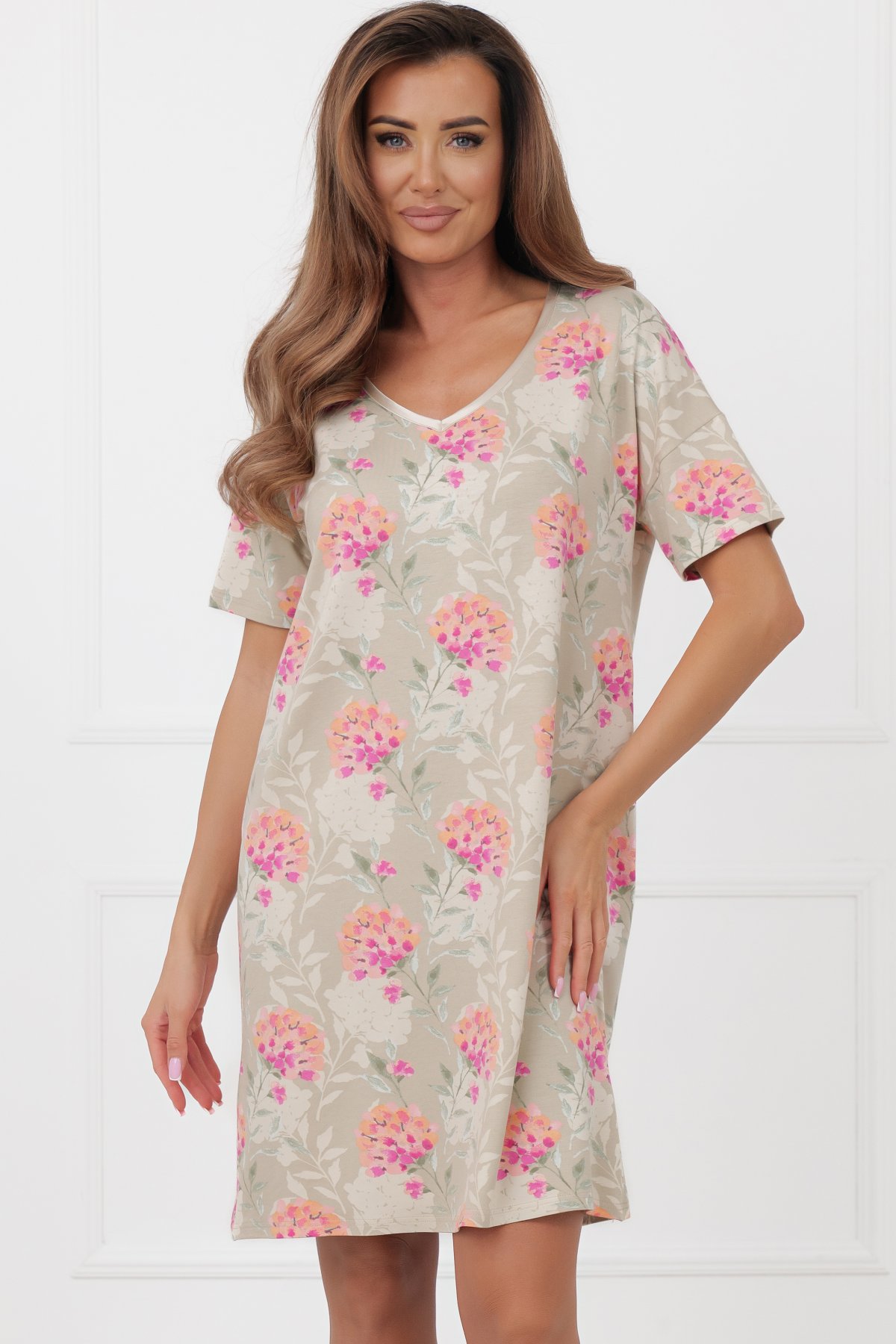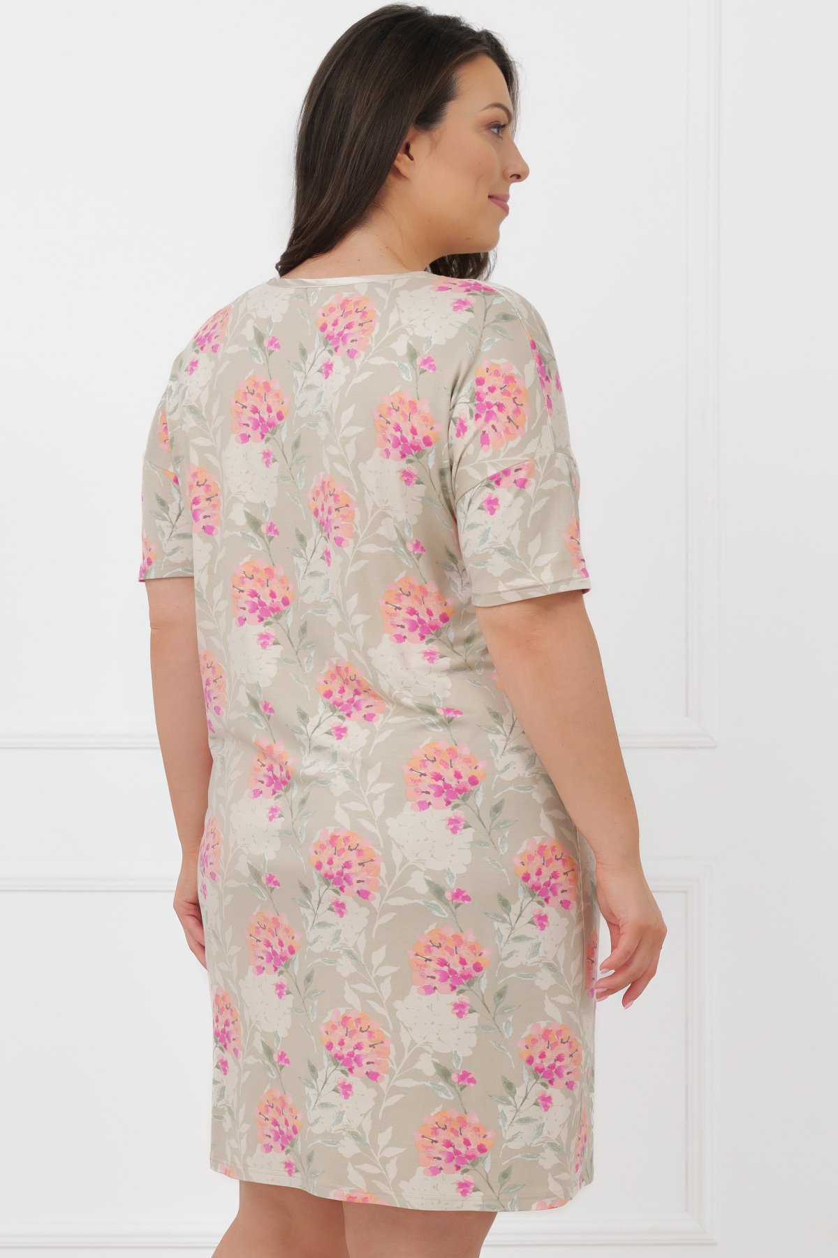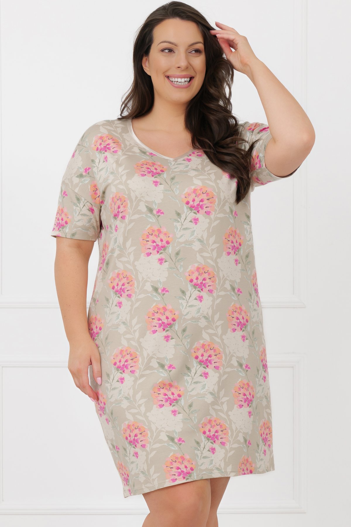 Noční košile Harmonia je ženský a elegantní model, který spojuje lehkost, pohodlí a jemnou romantiku. Zdobí ji decentní motiv květů hortenzie, který působí svěže a zároveň nadčasově.
