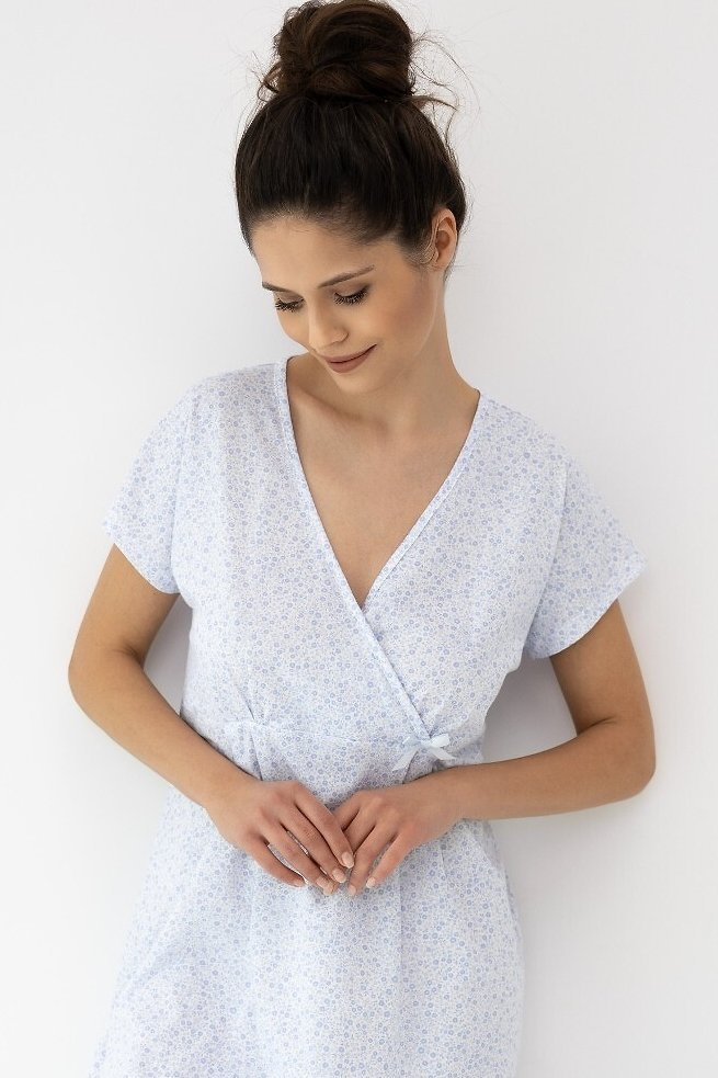Dámská noční košile Michaela je ideální pro ženy, které ocení pohodlí, funkčnost a jemný ženský styl. Vyrobena z kvalitní bavlny s romantickým květinovým potiskem, je příjemná k pokožce a zajišťuje volnost pohybu po celou noc. Překládaný výstřih do tvaru „V“ nejen působí elegantně, ale také usnadňuje kojení, díky čemuž je model praktický i pro čerstvé maminky.